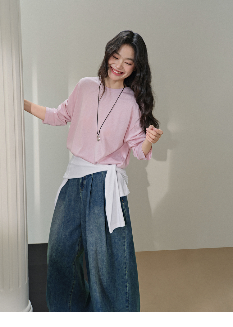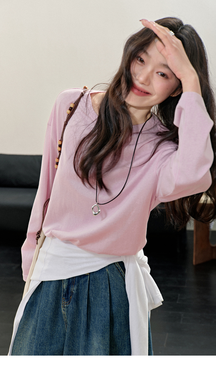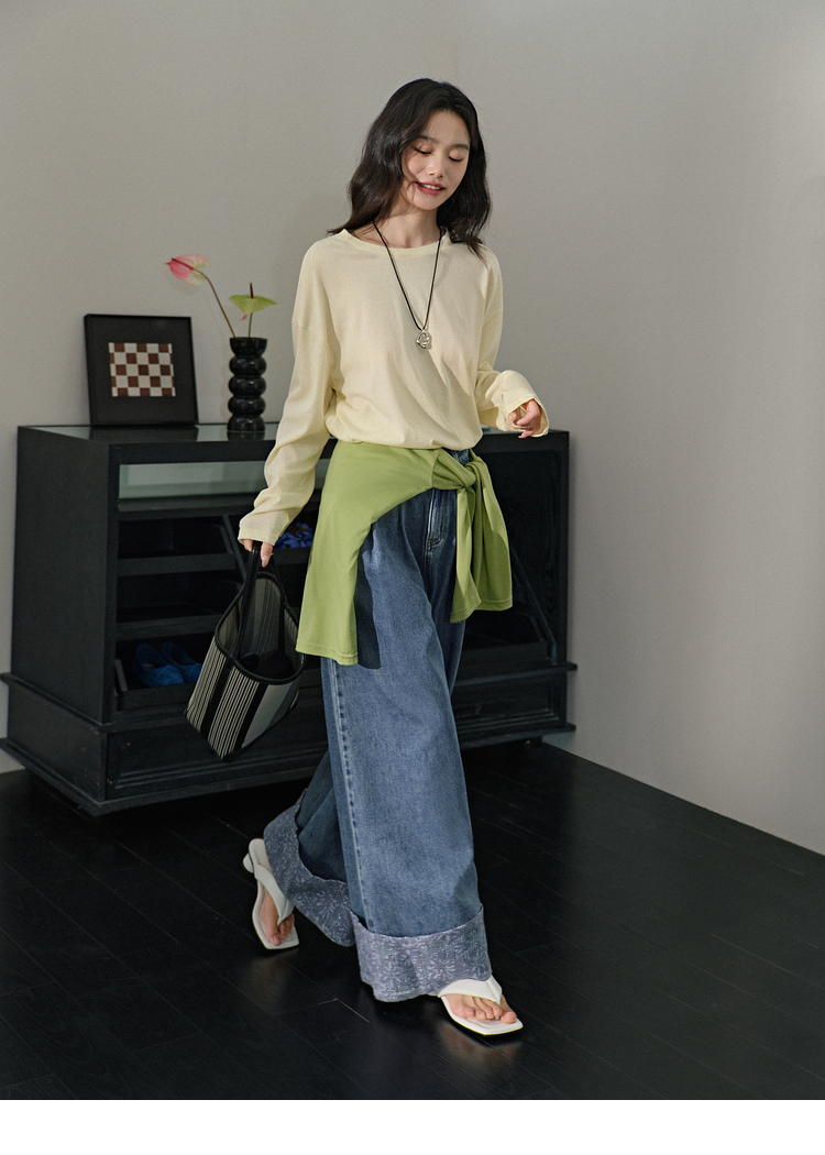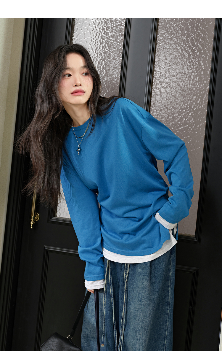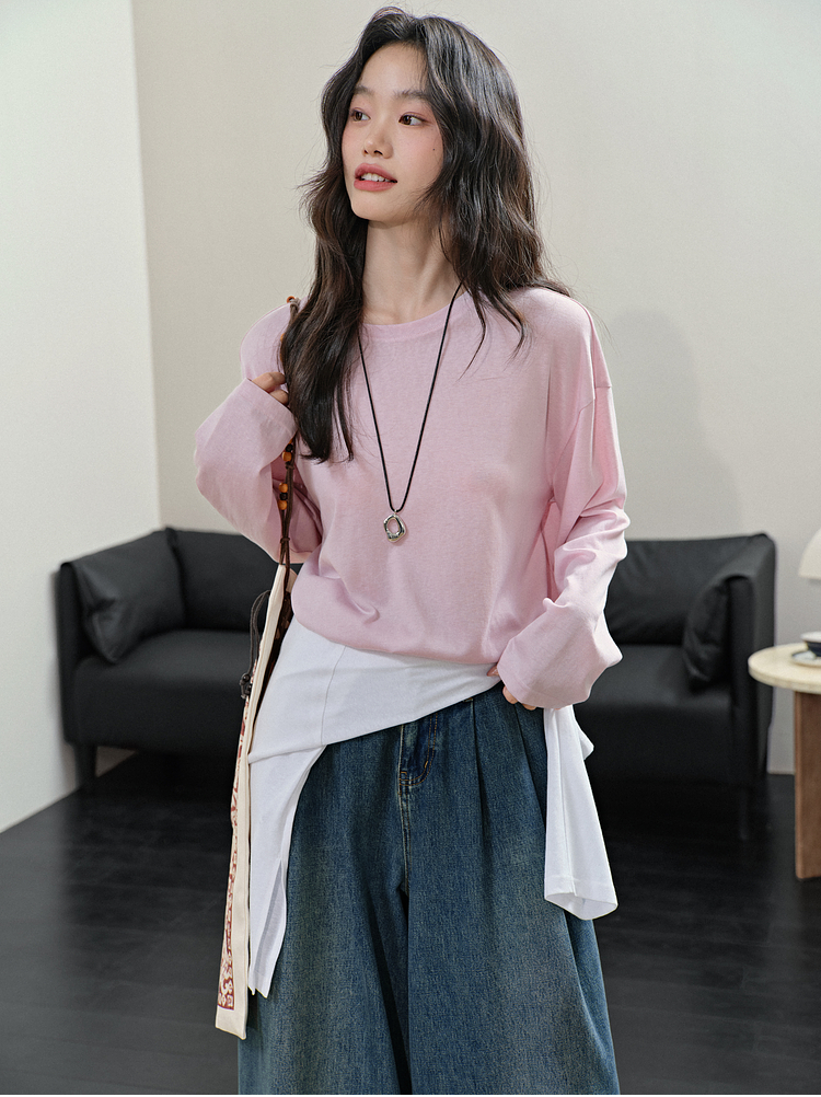 Широкая цветовая тонкая футболка с длинными рукавами для женщин 25 весна новая базовая рубашка желтая топ Ранний лето.