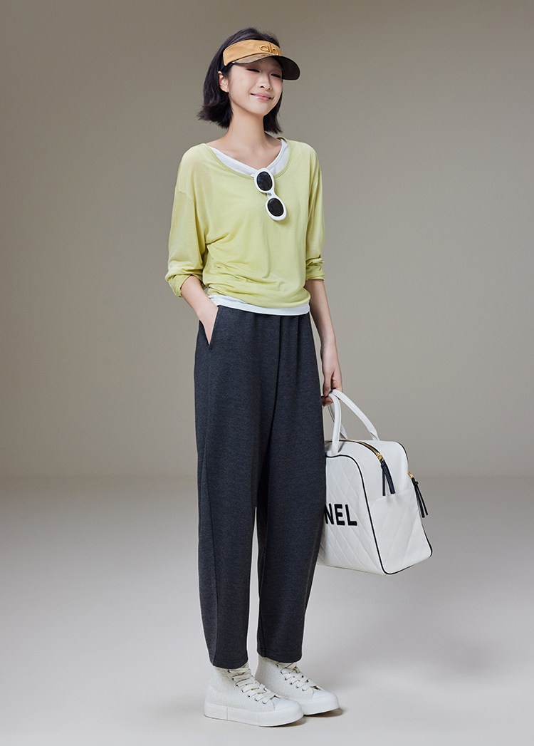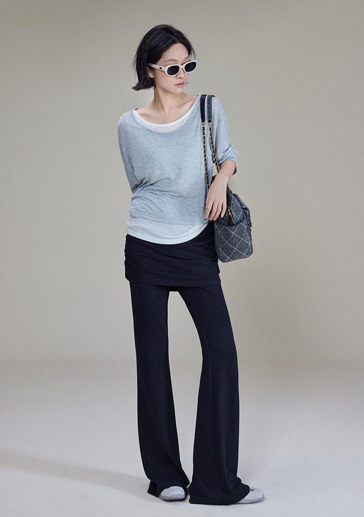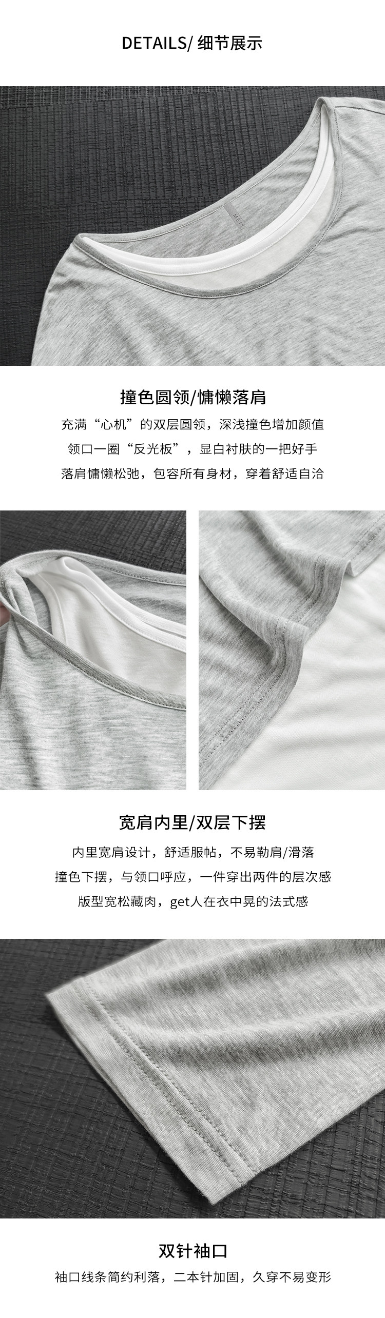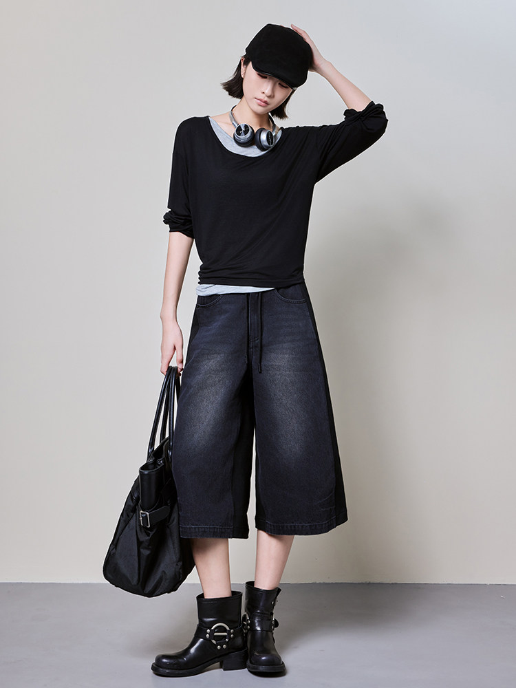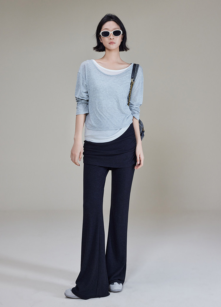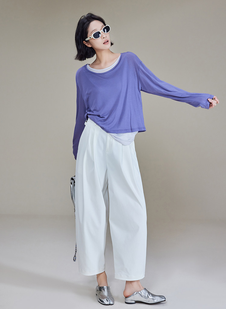 美洋 Meiyang [Spot] Футболка с молоком с двойной кожей Lanjing Tianshi | Контрастные цветные фальшивые двухслойные двойные круглые рукава с длинными рукавами