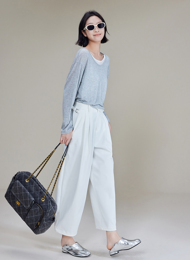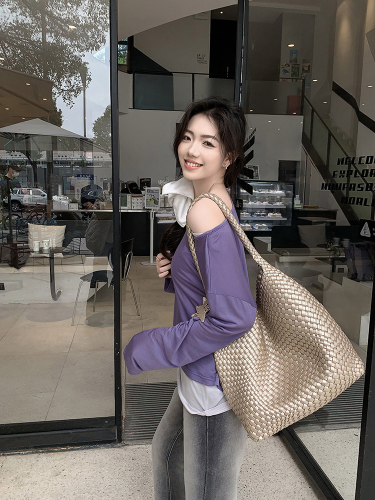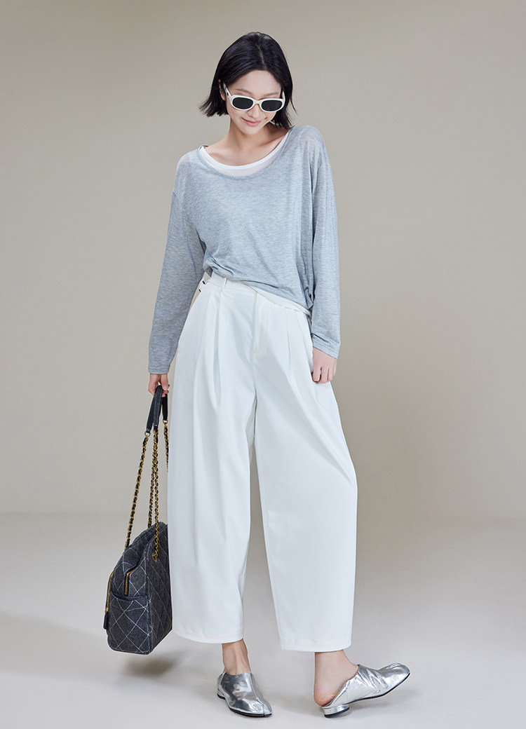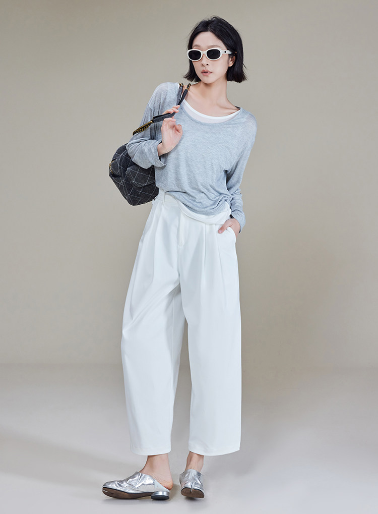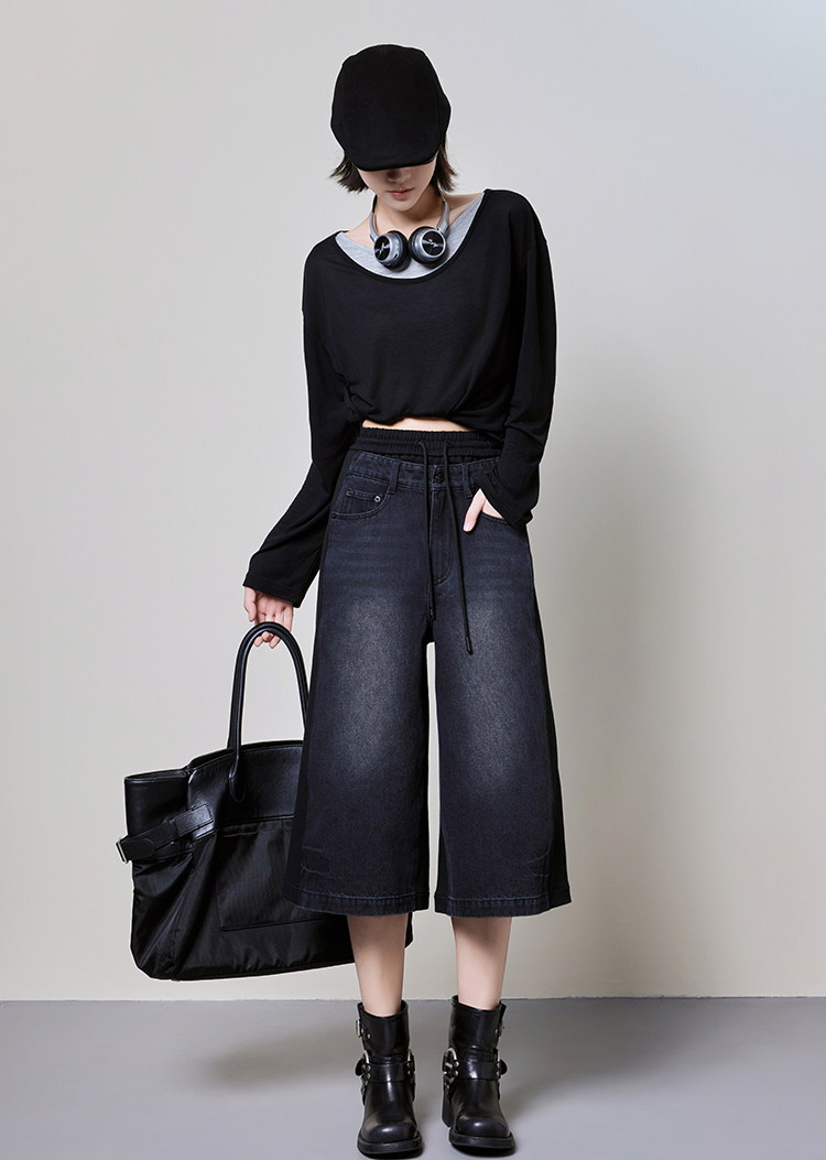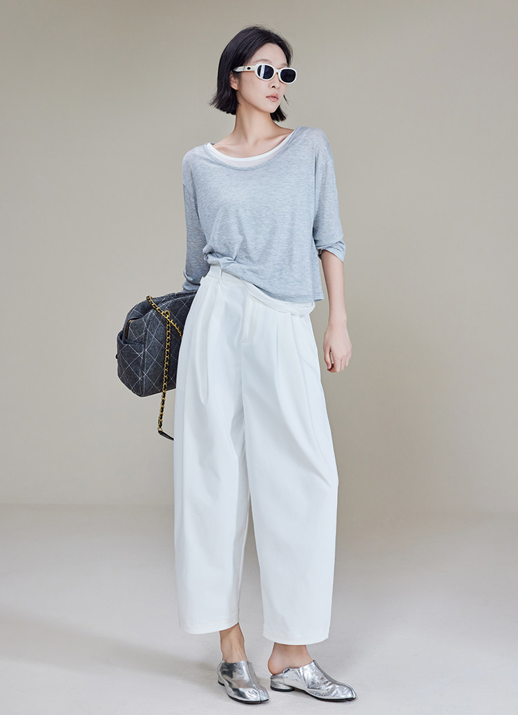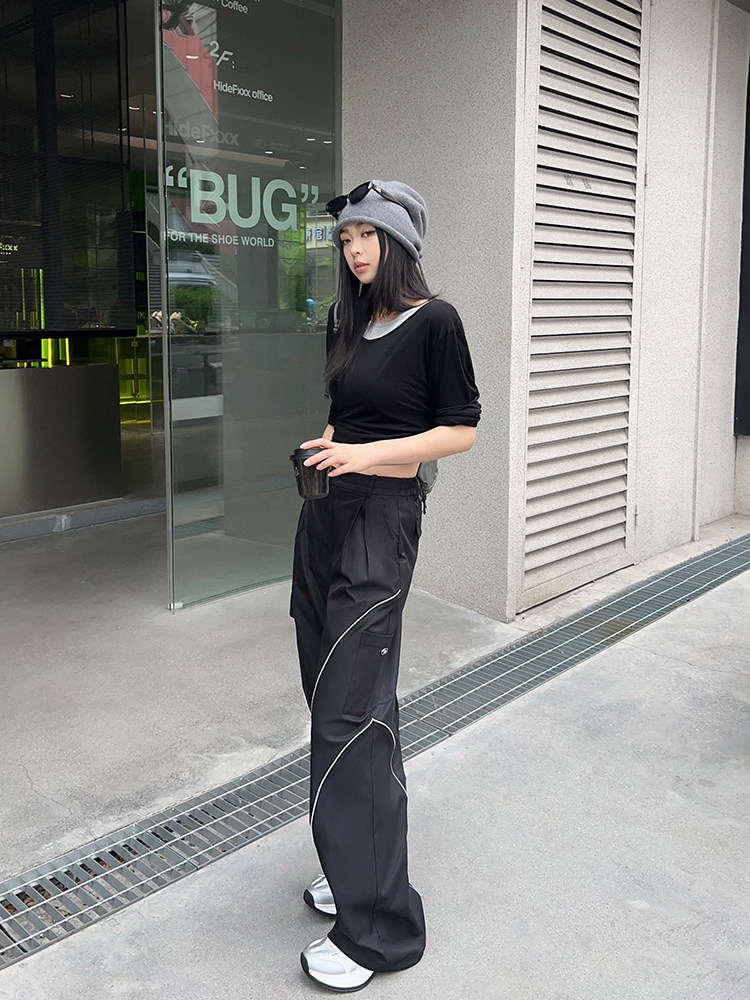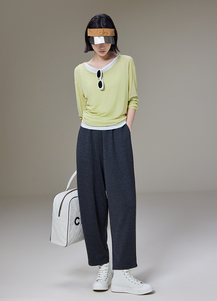 美洋 Meiyang [Spot] Футболка с молоком с двойной кожей Lanjing Tianshi | Контрастные цветные фальшивые двухслойные двойные круглые рукава с длинными рукавами