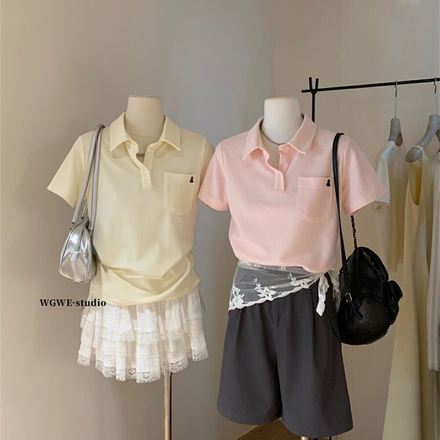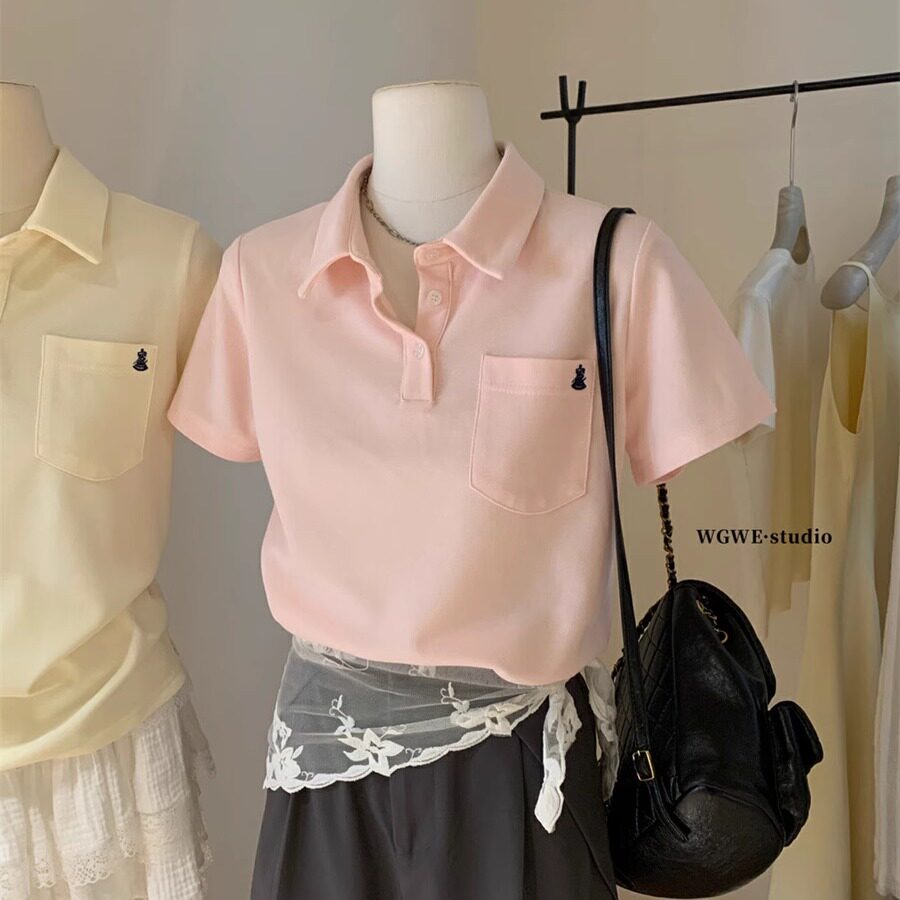 Летняя однотонная футболка для отдыха, с вышивкой