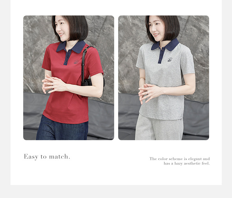Футболка ПОЛО с короткими рукавами и цветными блоками, маленькая рубашка с принтом, рубашка с отворотом, новинка 2025 года, летняя женская новинка с половиной рукавов