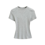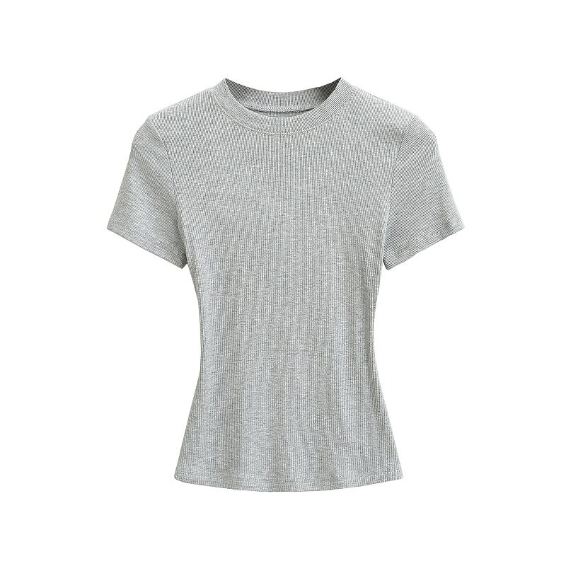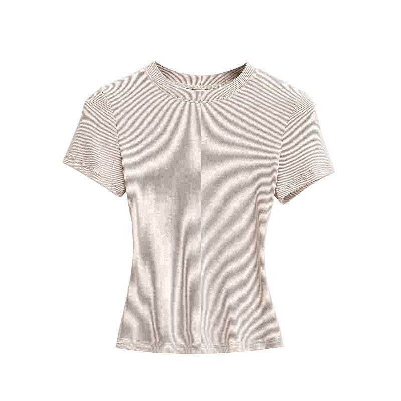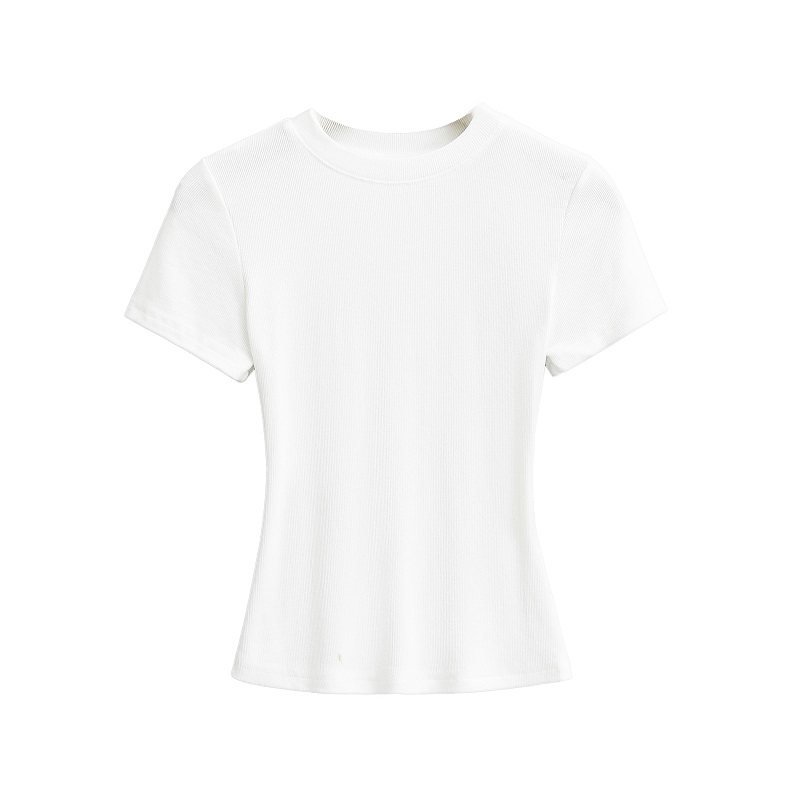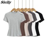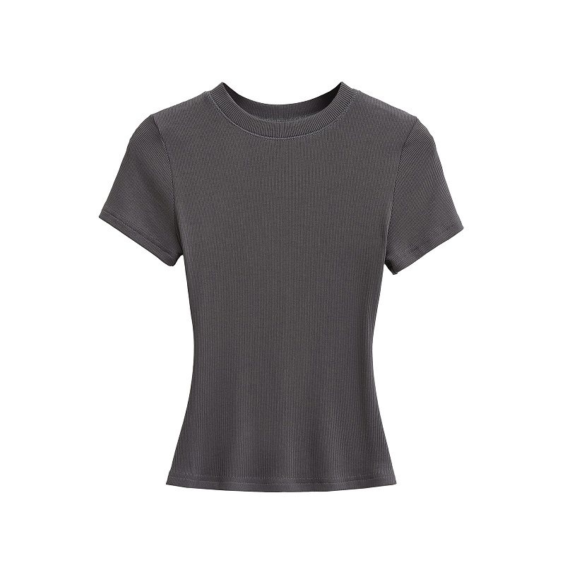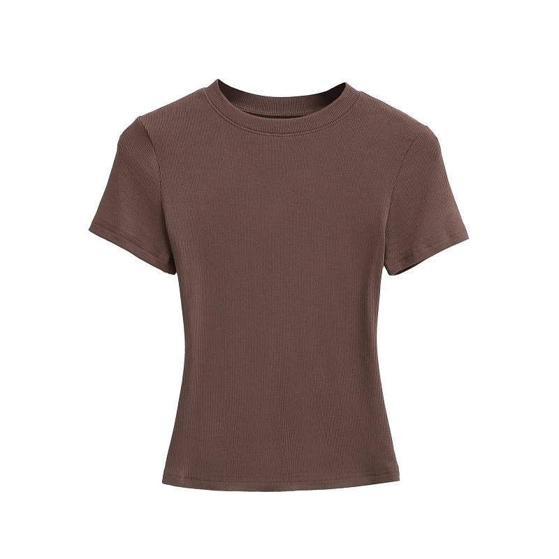 Базовая летняя футболка с коротким рукавом с круглым воротником, эластичный спортивный короткий корсет, европейский стиль, в обтяжку