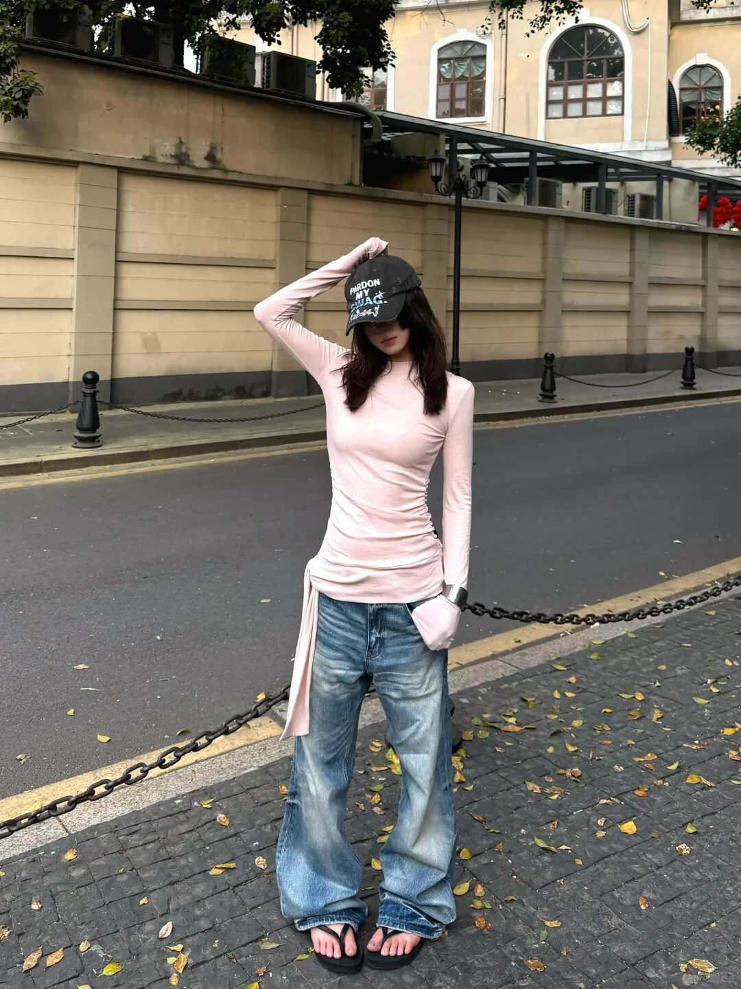 Розовый ремень, весенний сексуальный лонгслив, в американском стиле