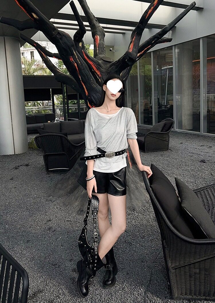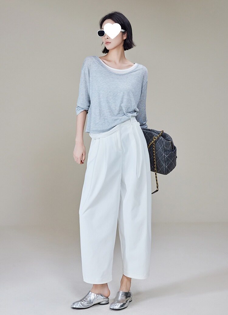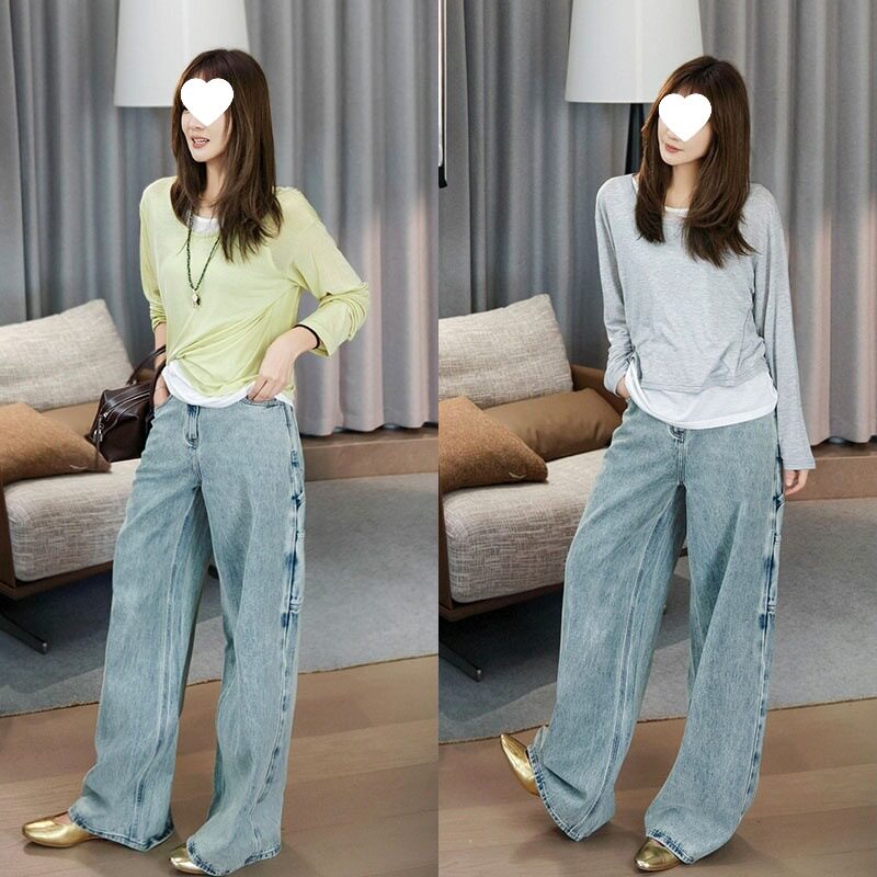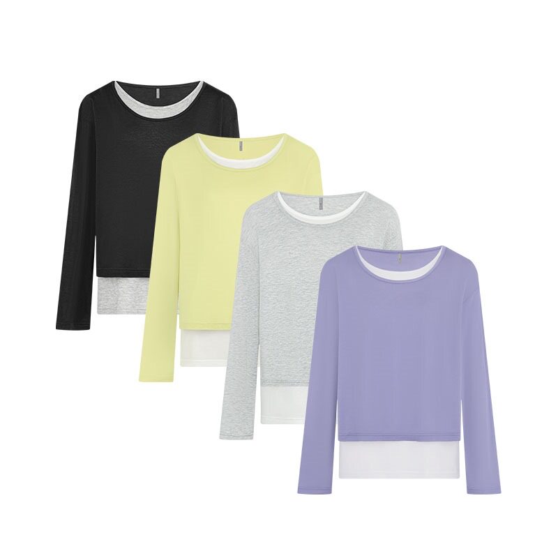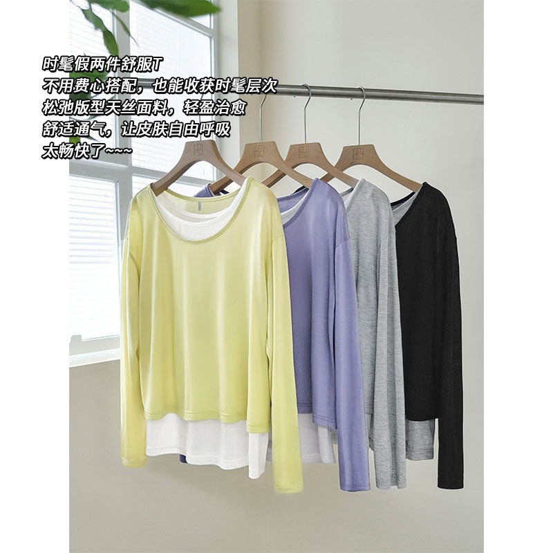 Meiyang Meiyang футболка молока с двойной кожей Lanjing Tiansi | Контрастная цветная фальшивая двухслойная двухслойная круглая шея с длинными рукавами u