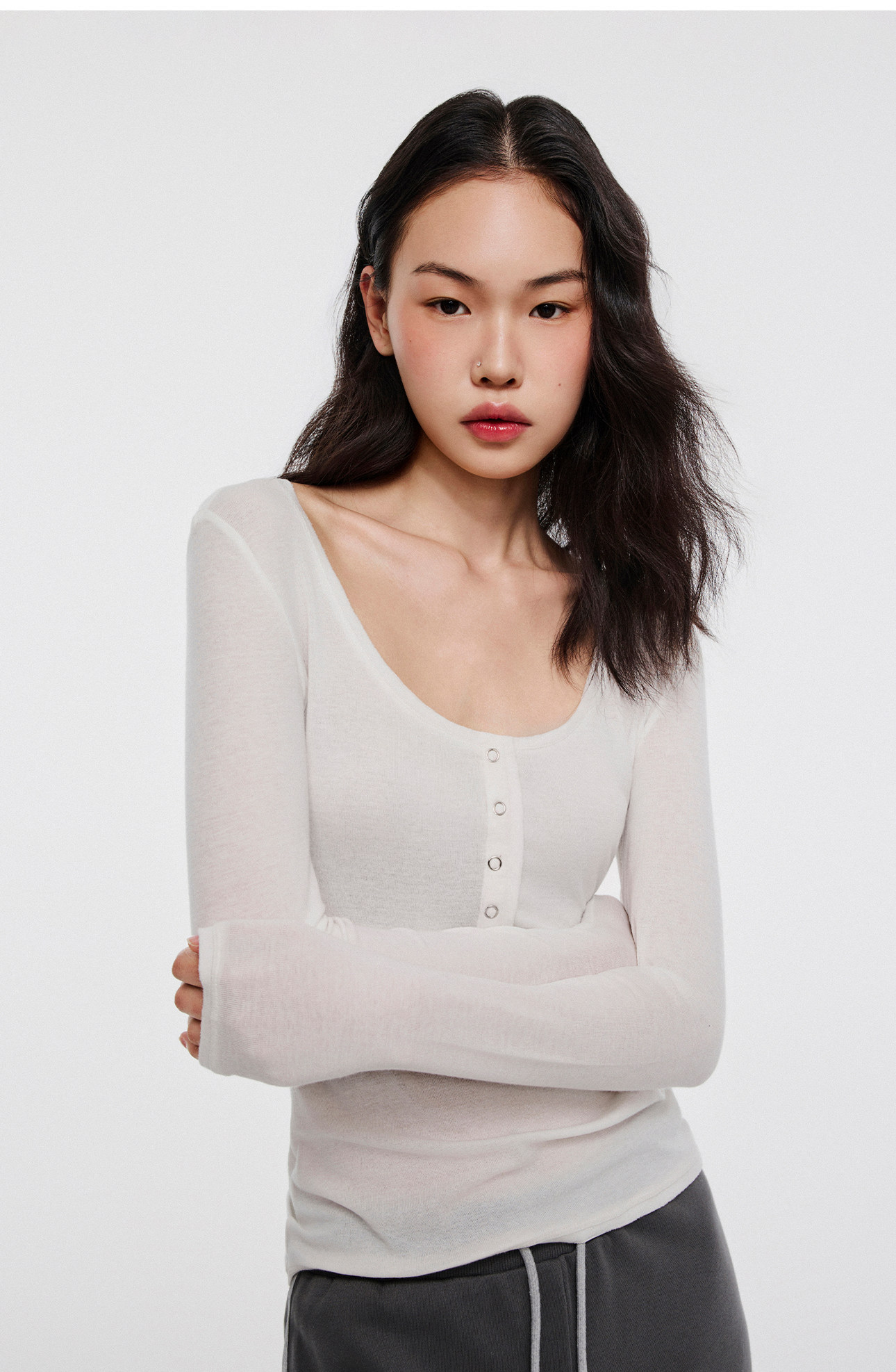 asomesome Базовый белый весенний приятный телу лонгслив с круглым воротником, облегающий крой