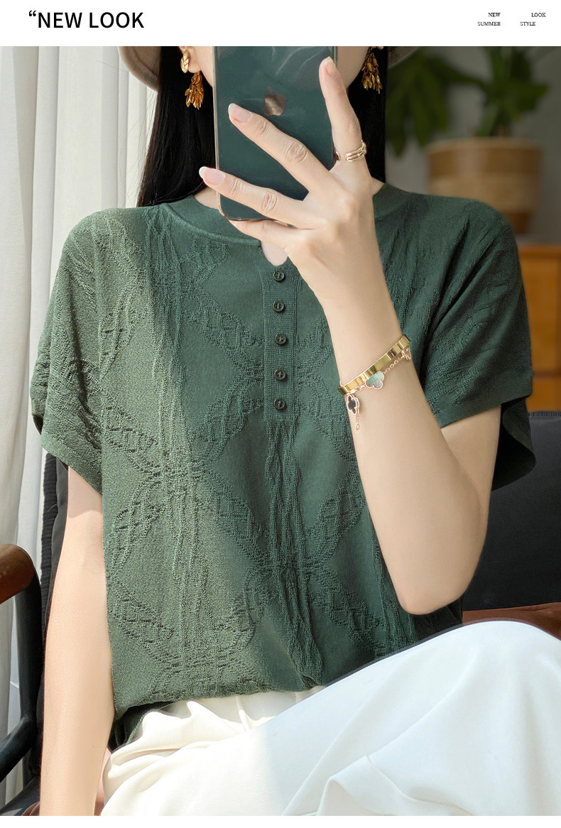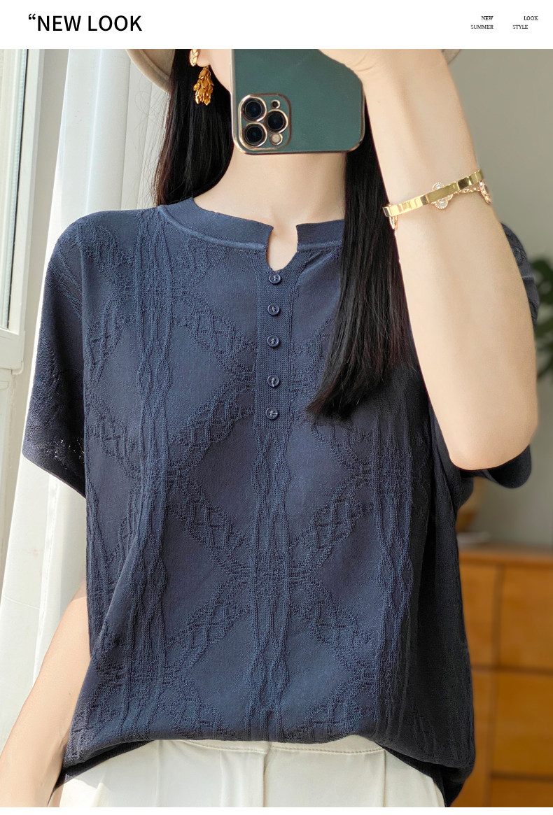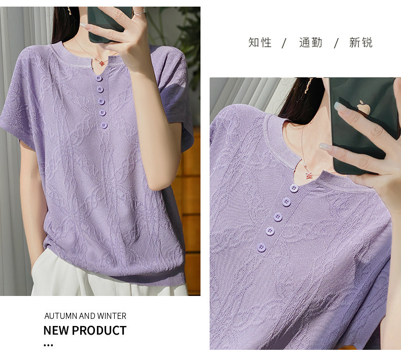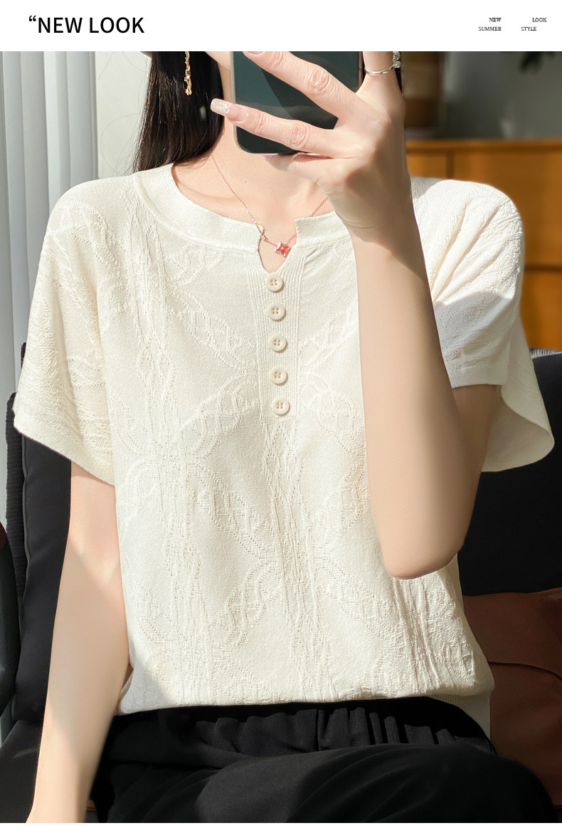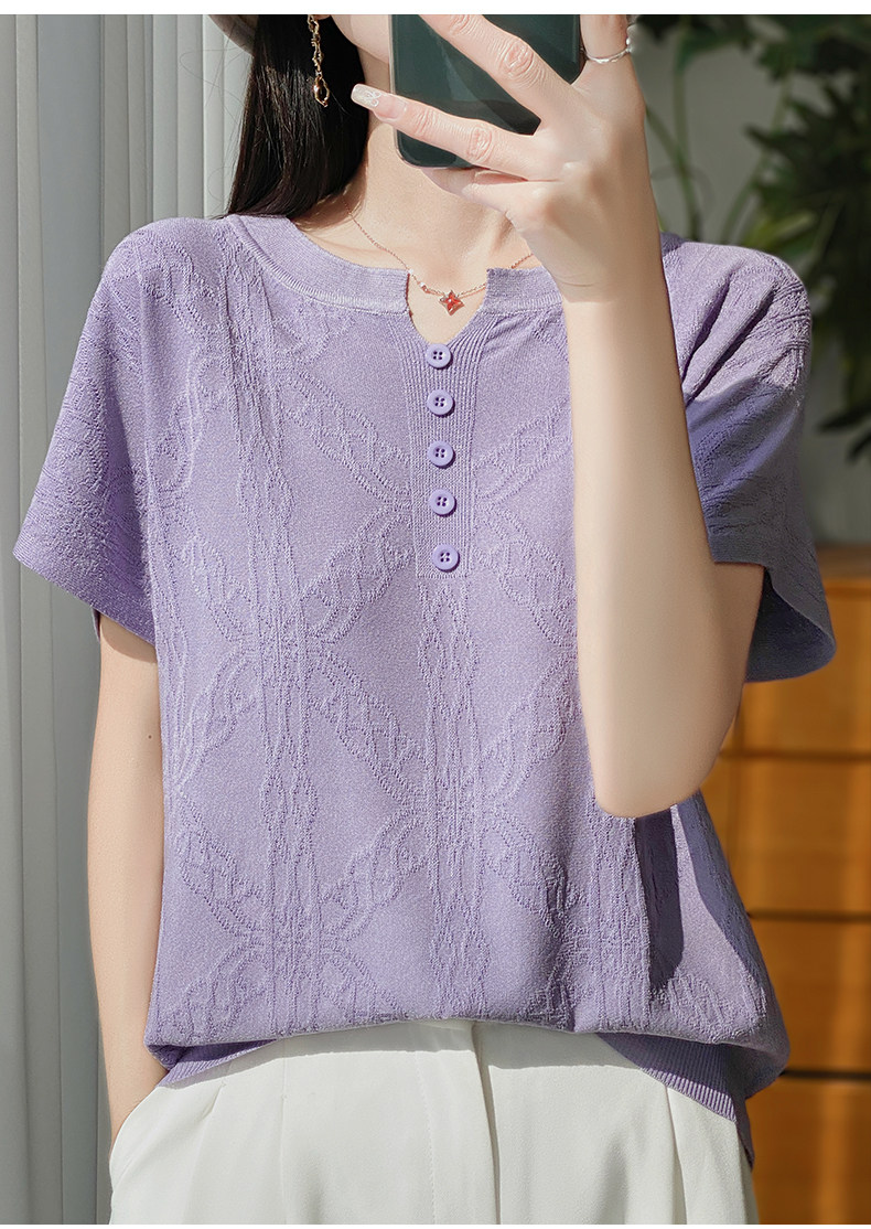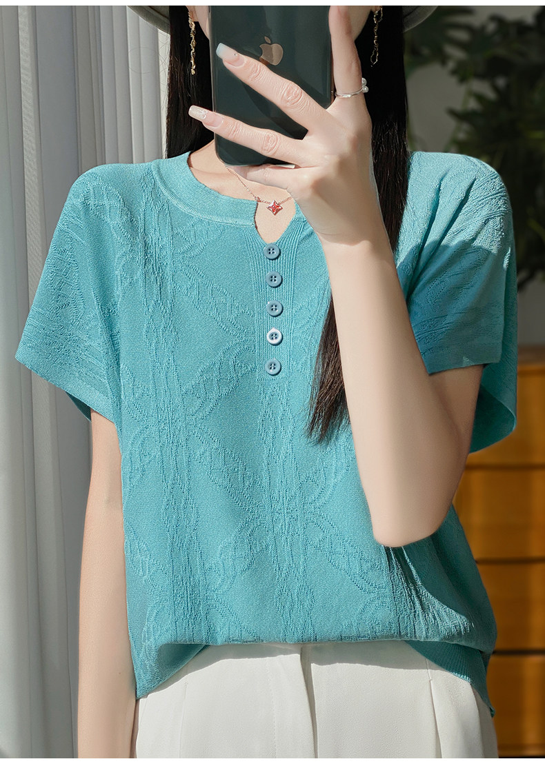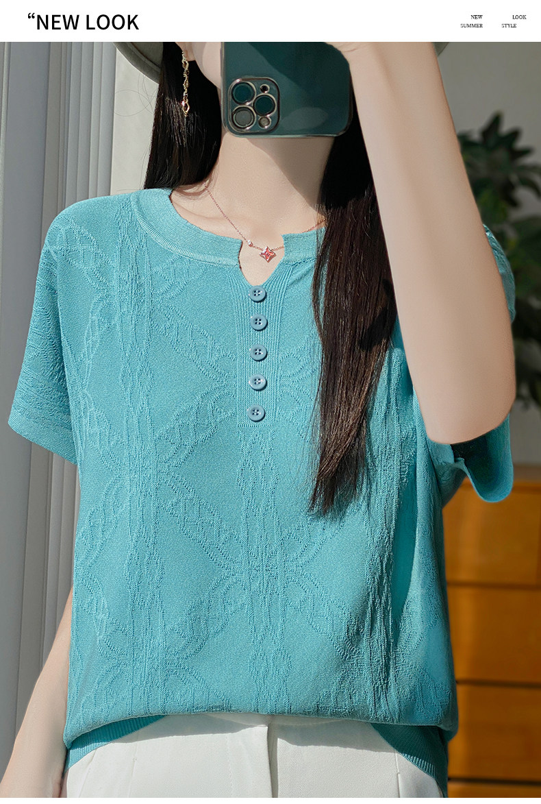 Летняя тонкая шелковая трикотажная футболка с круглым воротником, большой размер