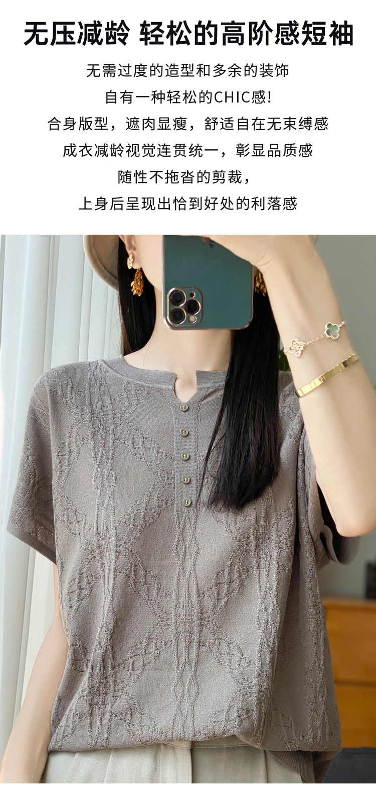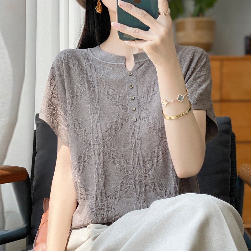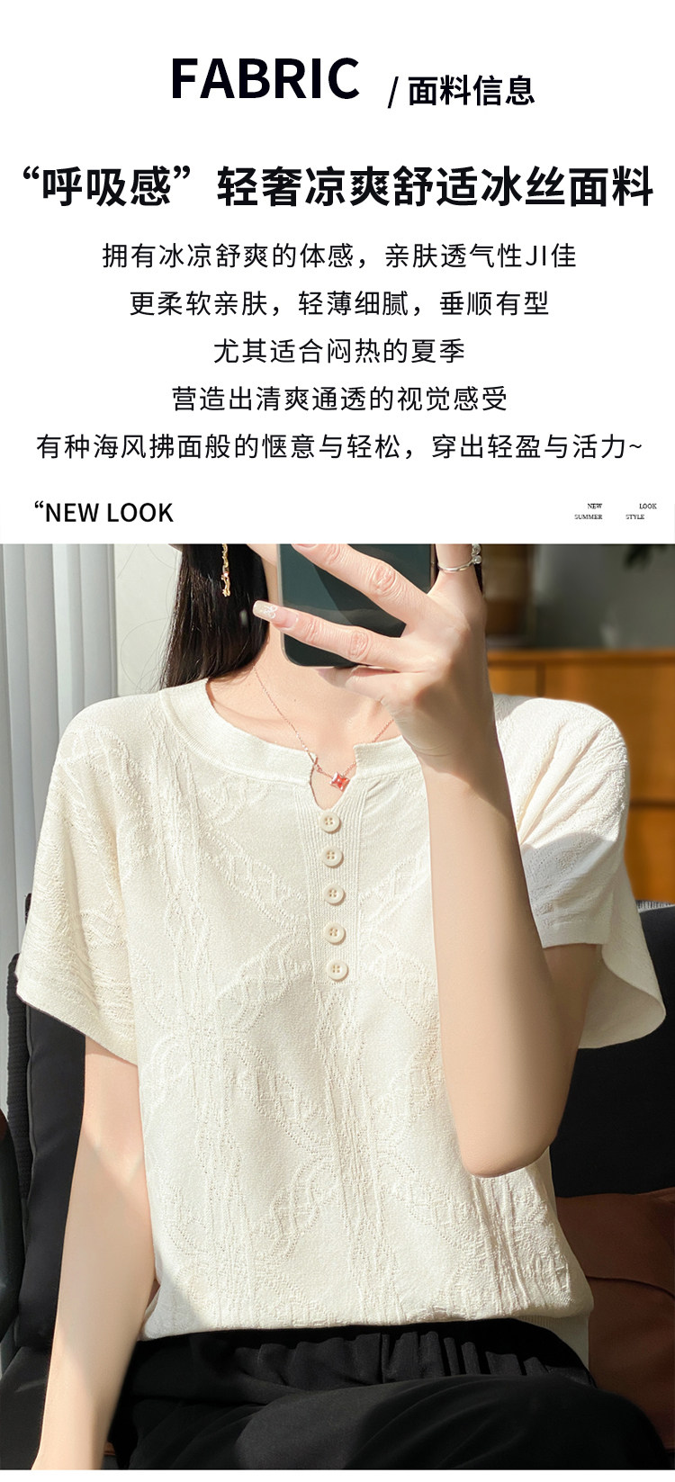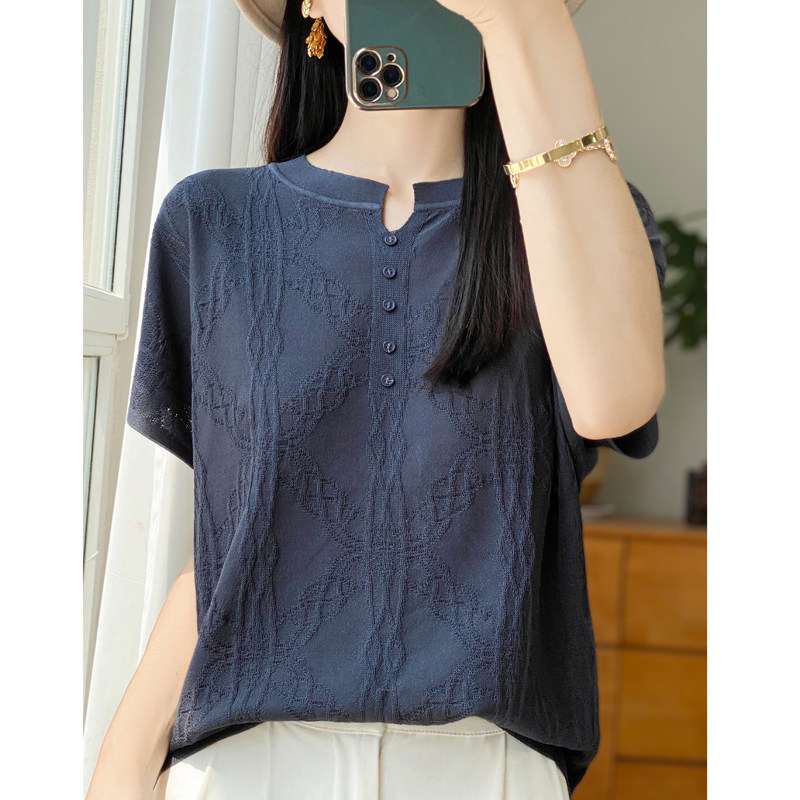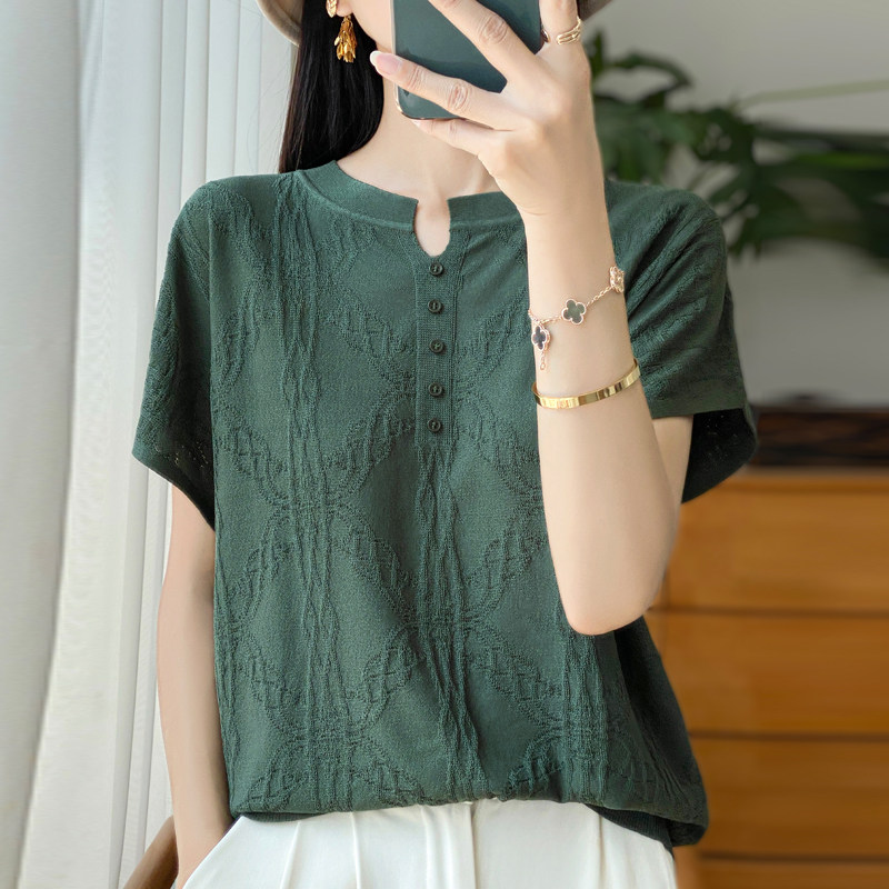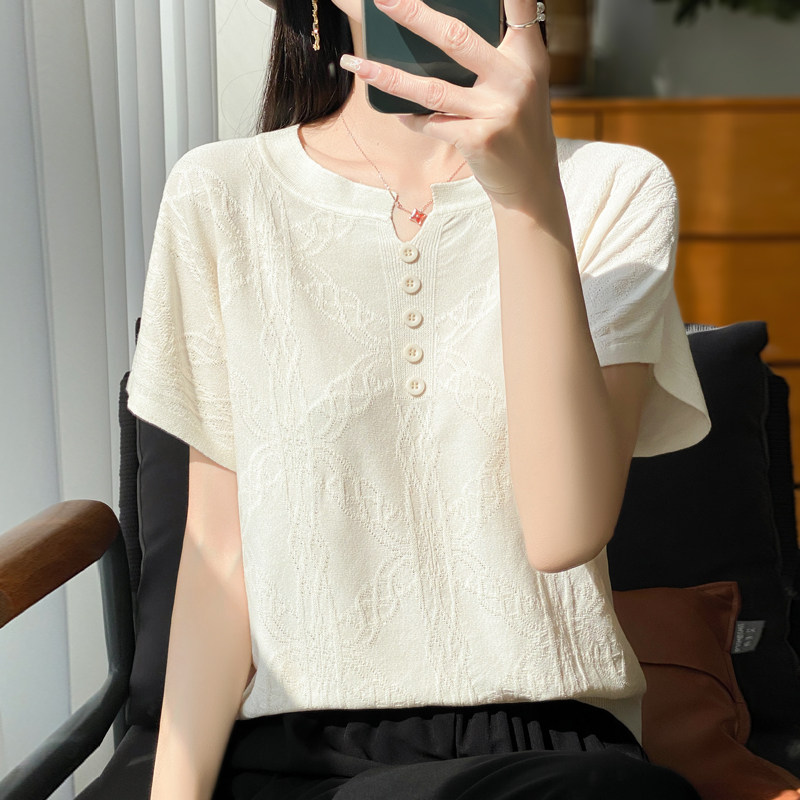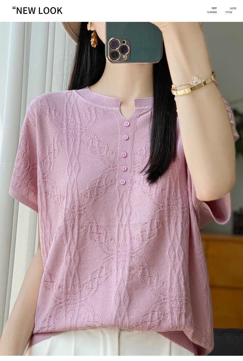 Летняя тонкая шелковая трикотажная футболка с круглым воротником, большой размер