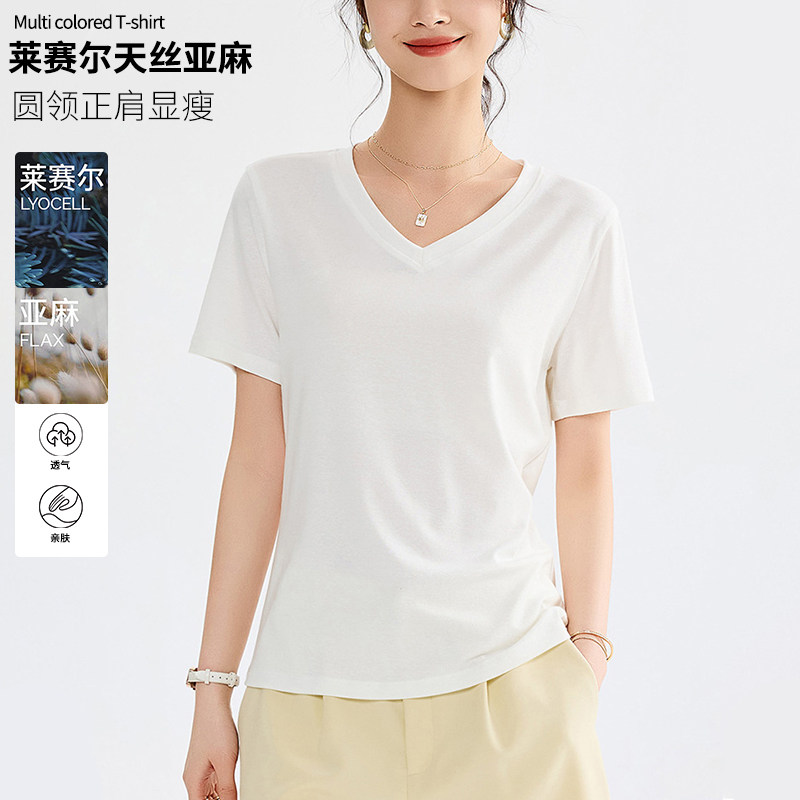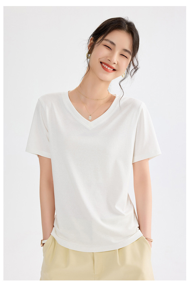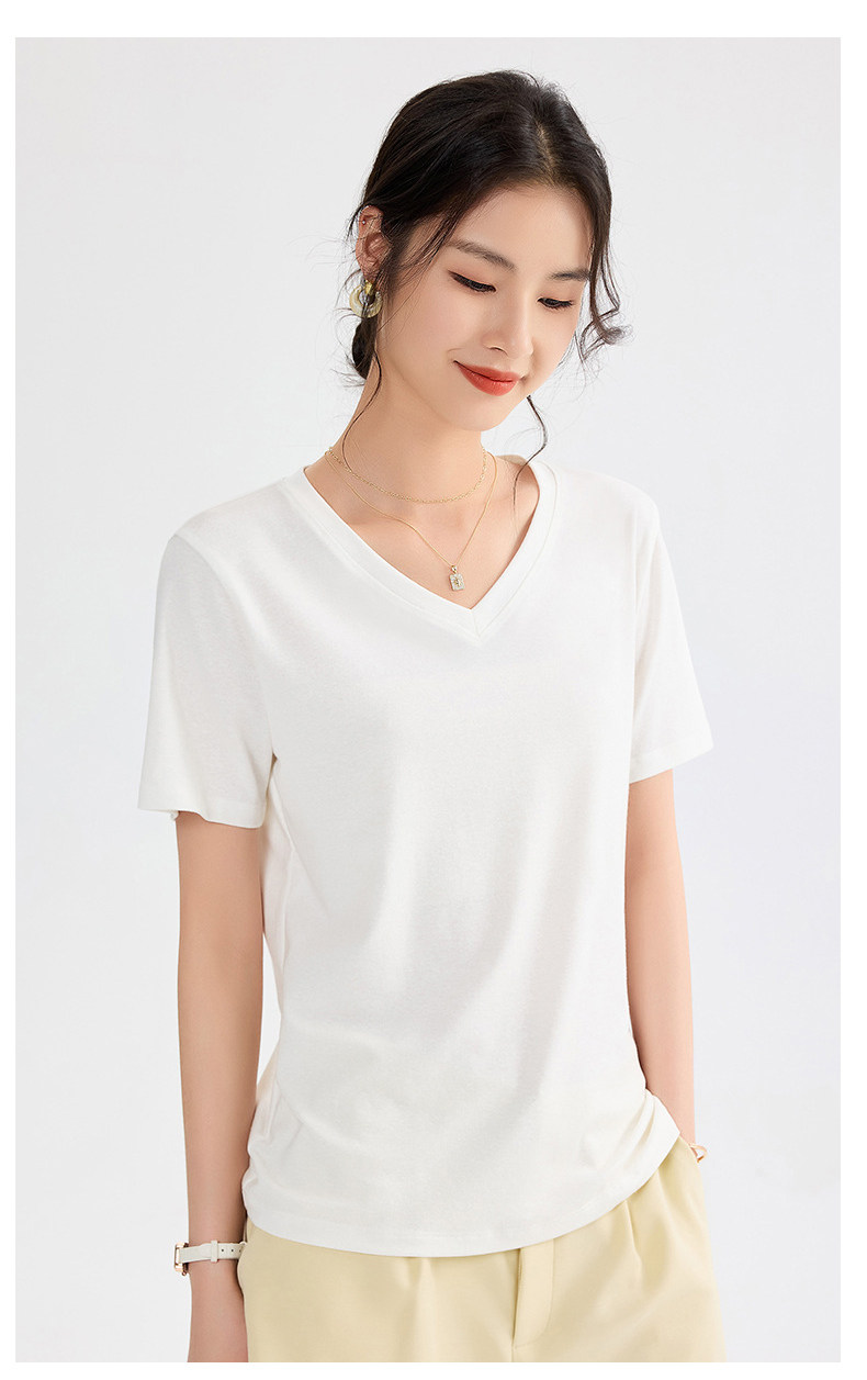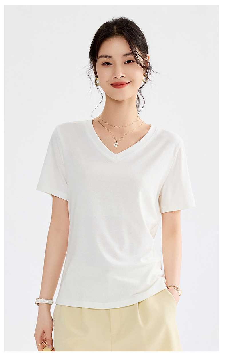 Белая летняя футболка для отдыха, V-образный вырез