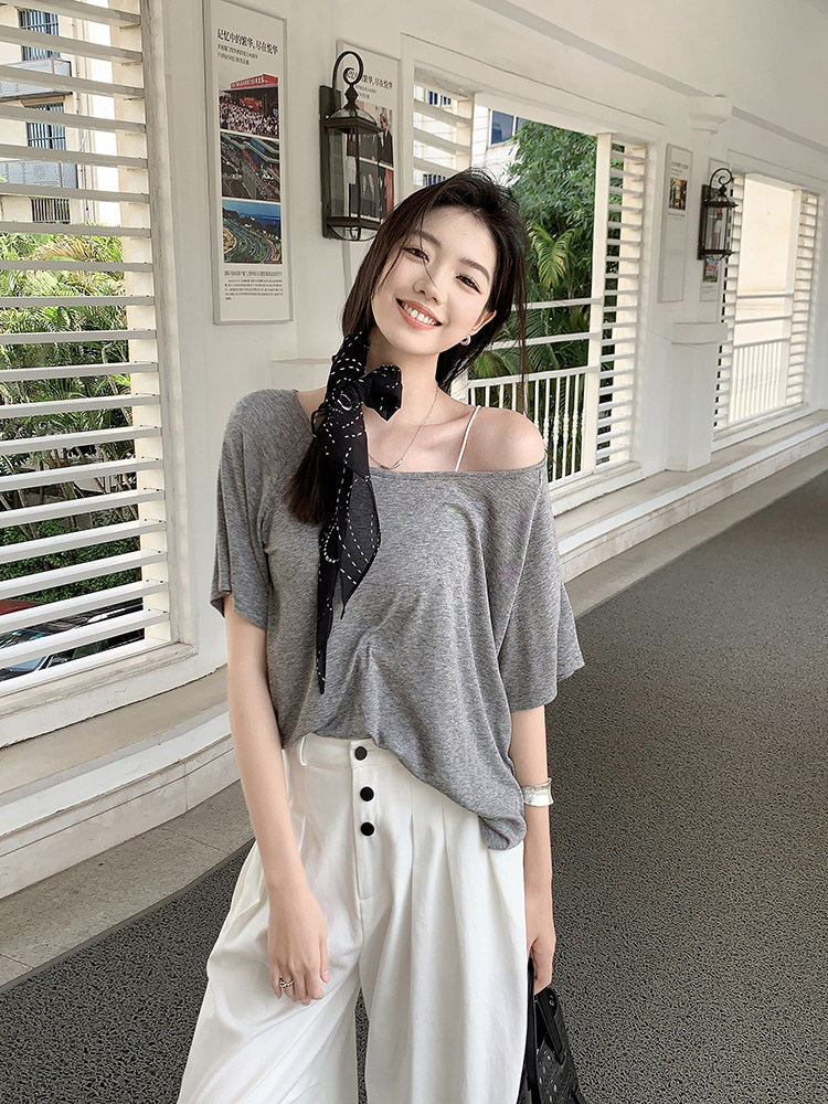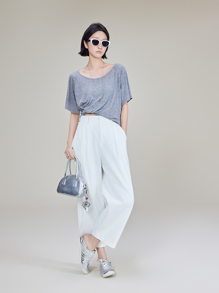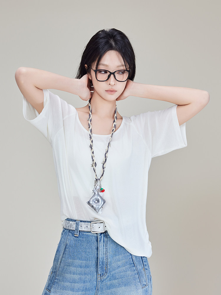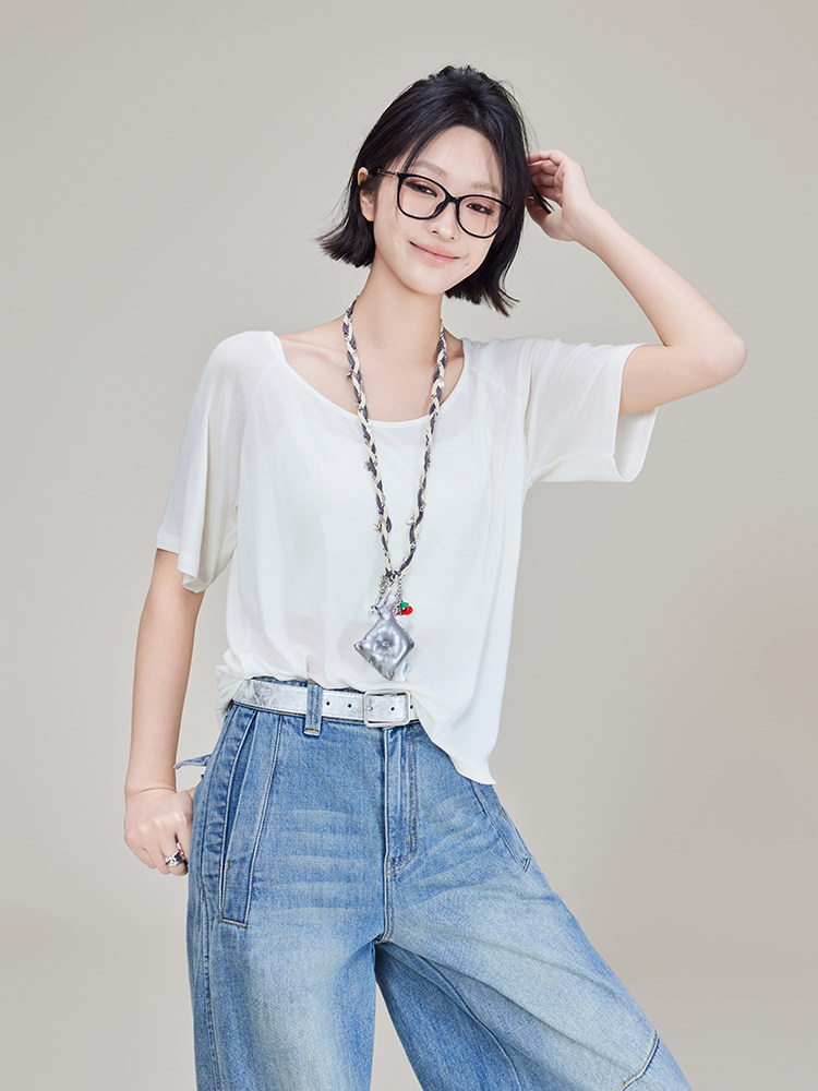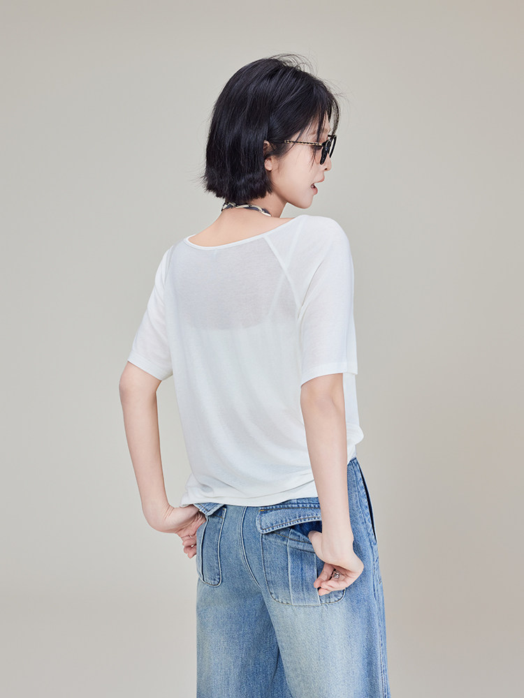 美洋 Кашемировая шерстяная футболка, оверсайз, круглый воротник