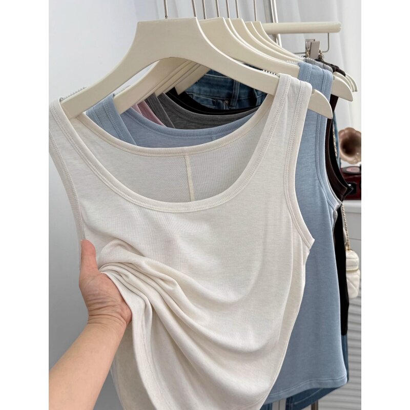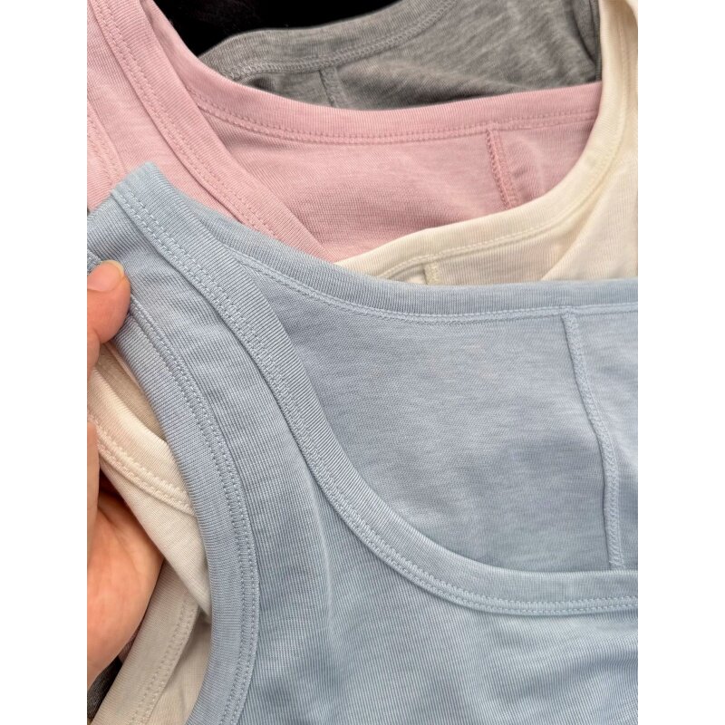 Майка топ с круглым воротником, эластичная футболка без рукавов, облегающий крой