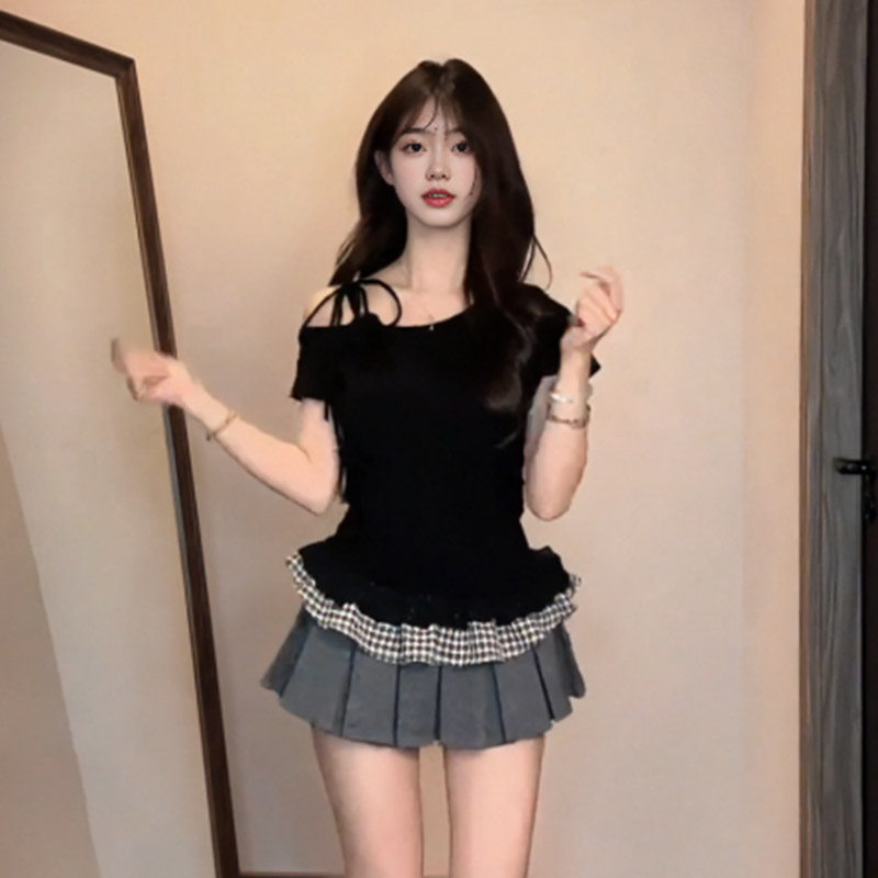 Летняя приталенная футболка с коротким рукавом, размер, в корейском стиле