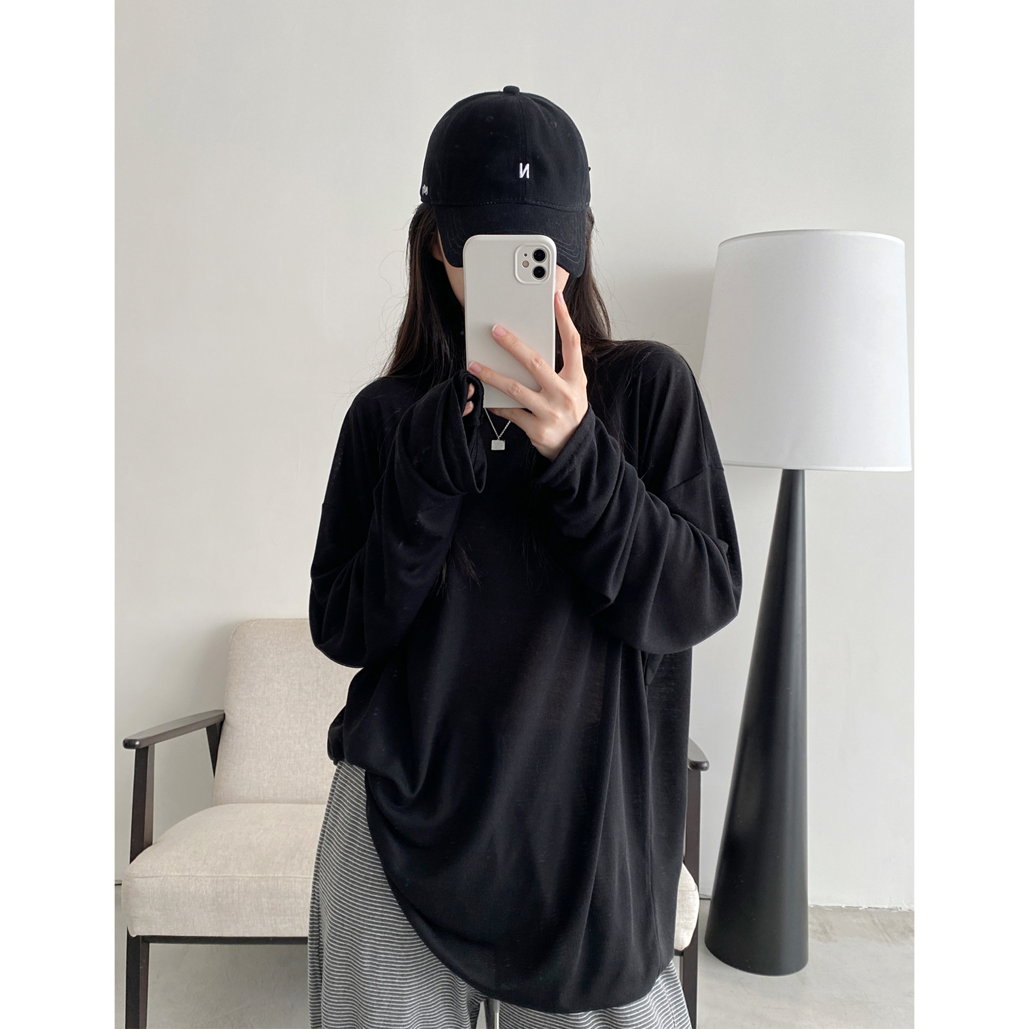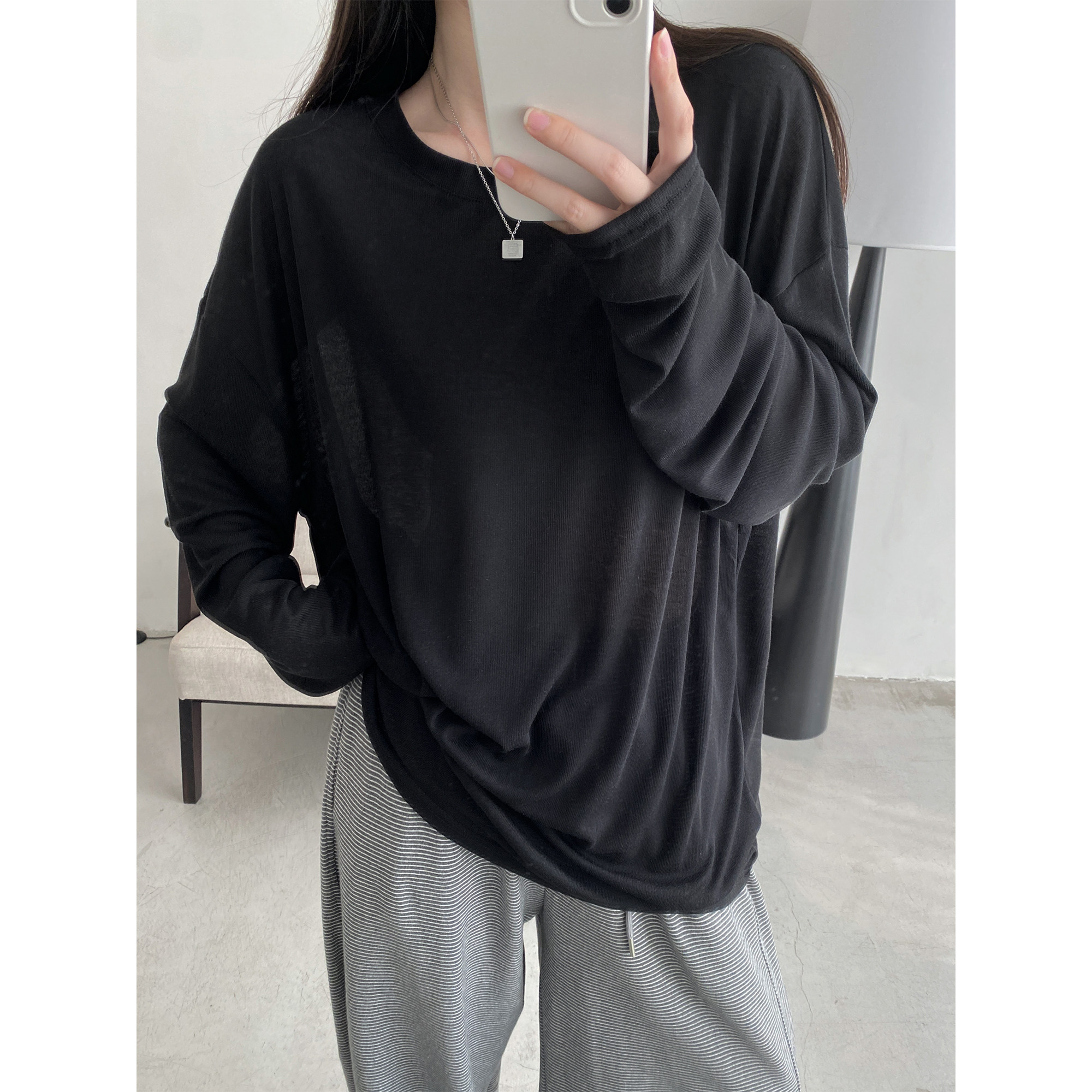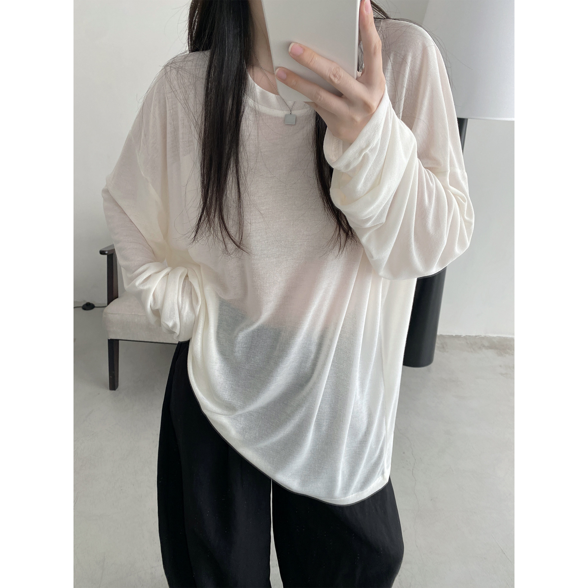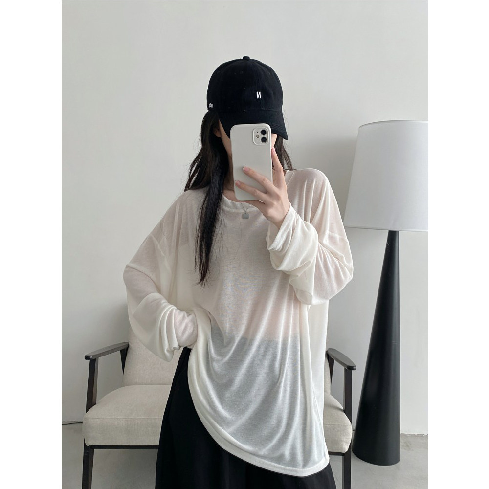 Маска для лица, мягкая футболка с круглым воротником, тонкий лонгслив, свободный крой, защита от солнца