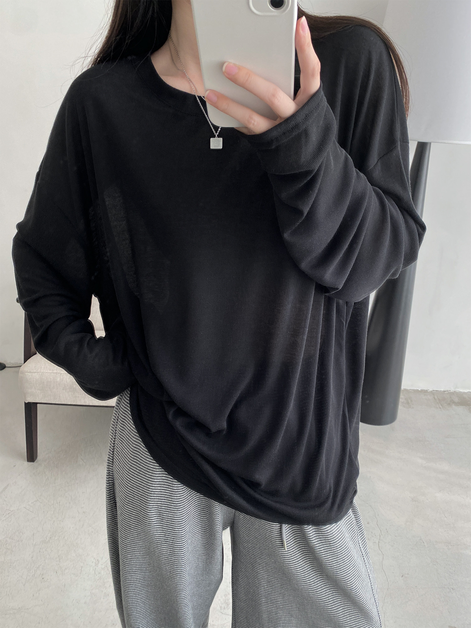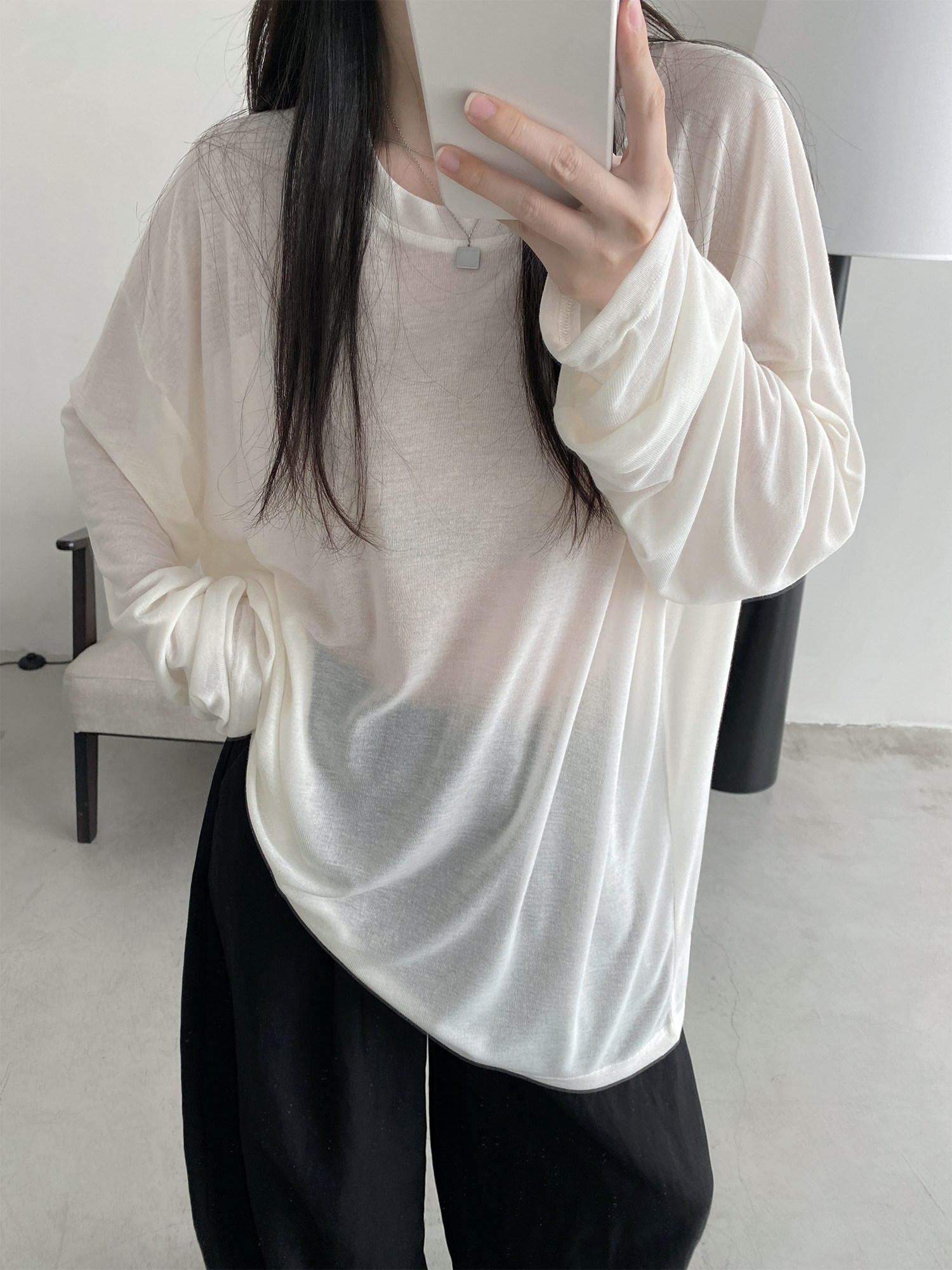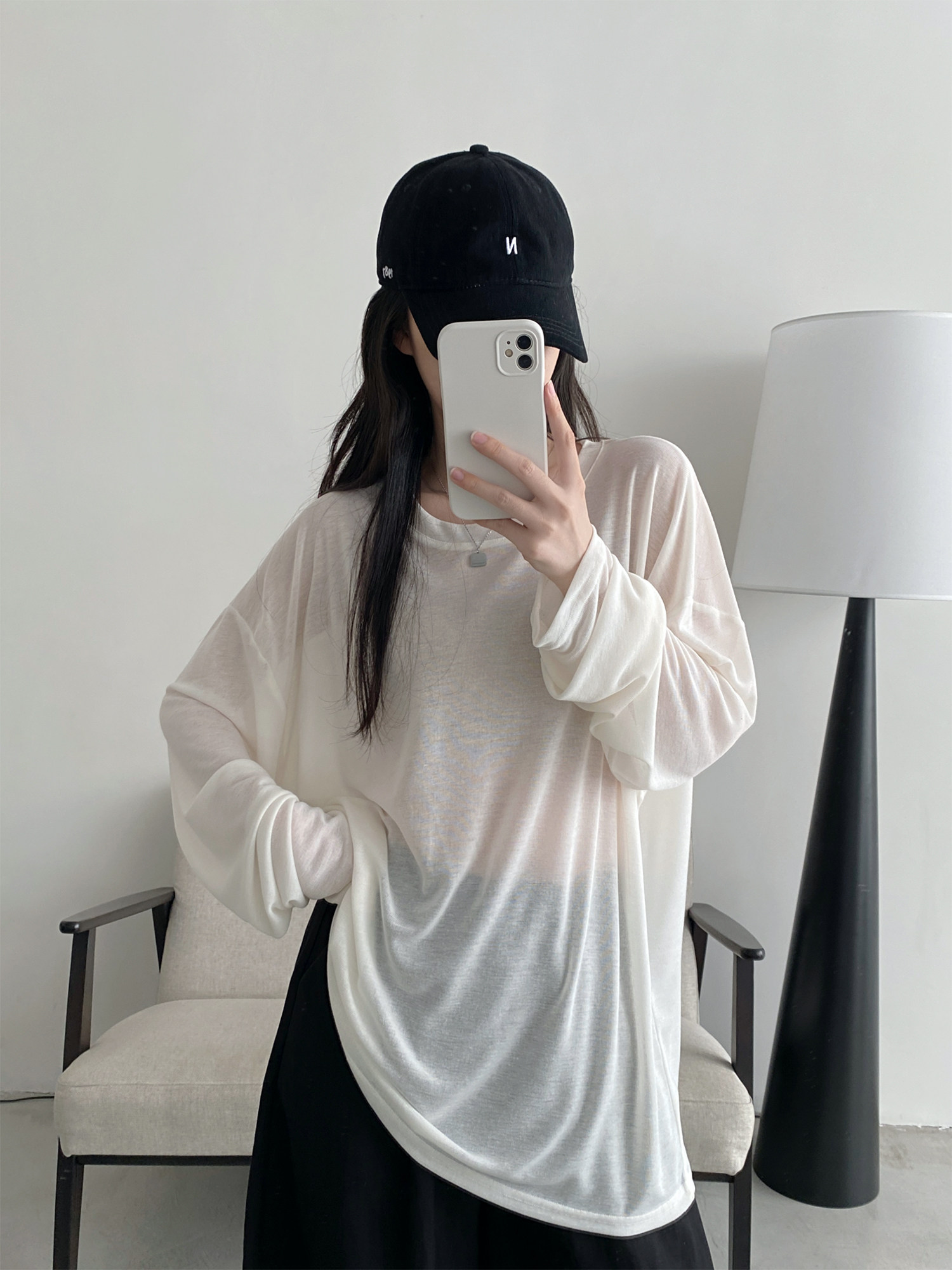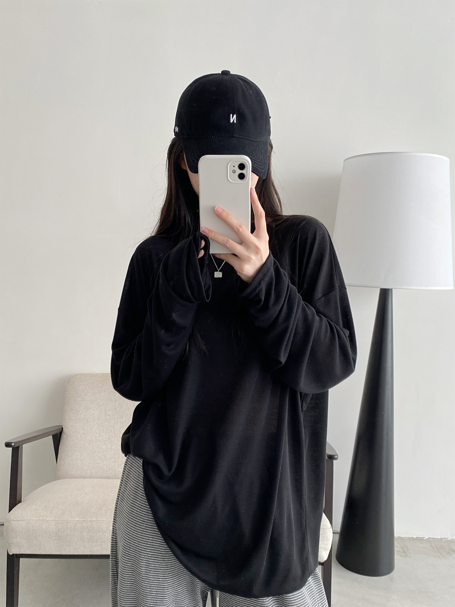 Маска для лица, мягкая футболка с круглым воротником, тонкий лонгслив, свободный крой, защита от солнца