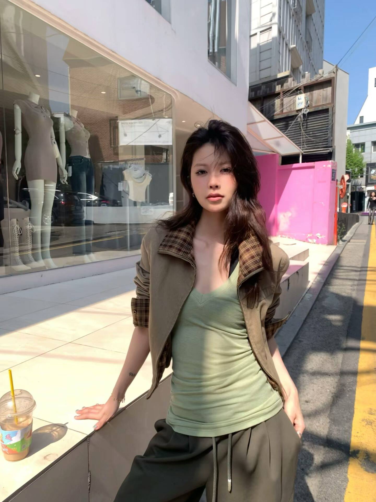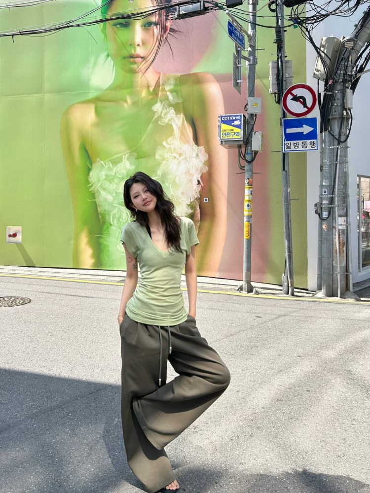 Зеленая летняя футболка с коротким рукавом, корсет, в американском стиле, V-образный вырез, облегающий крой