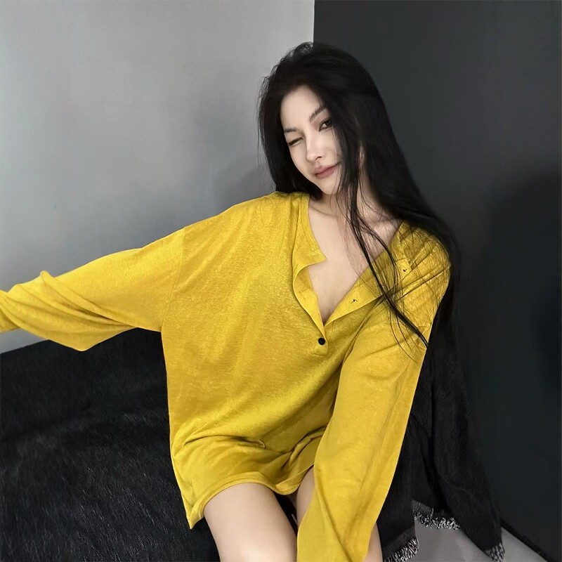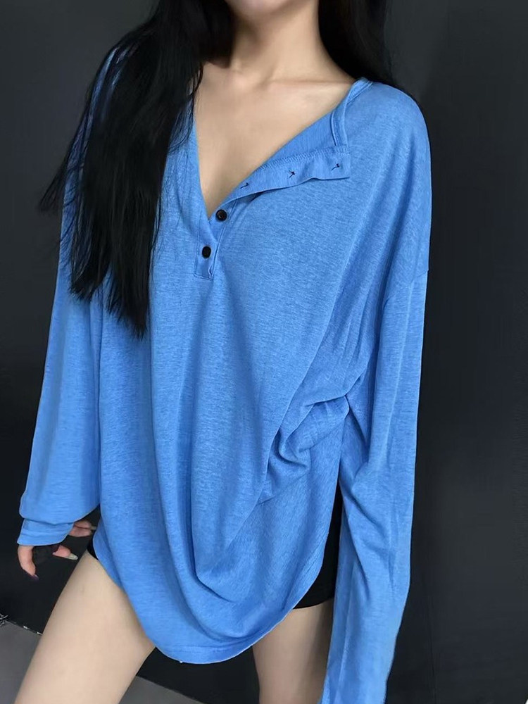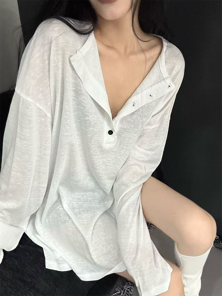 Летний тонкий лонгслив, французский стиль, оверсайз, защита от солнца, длина миди