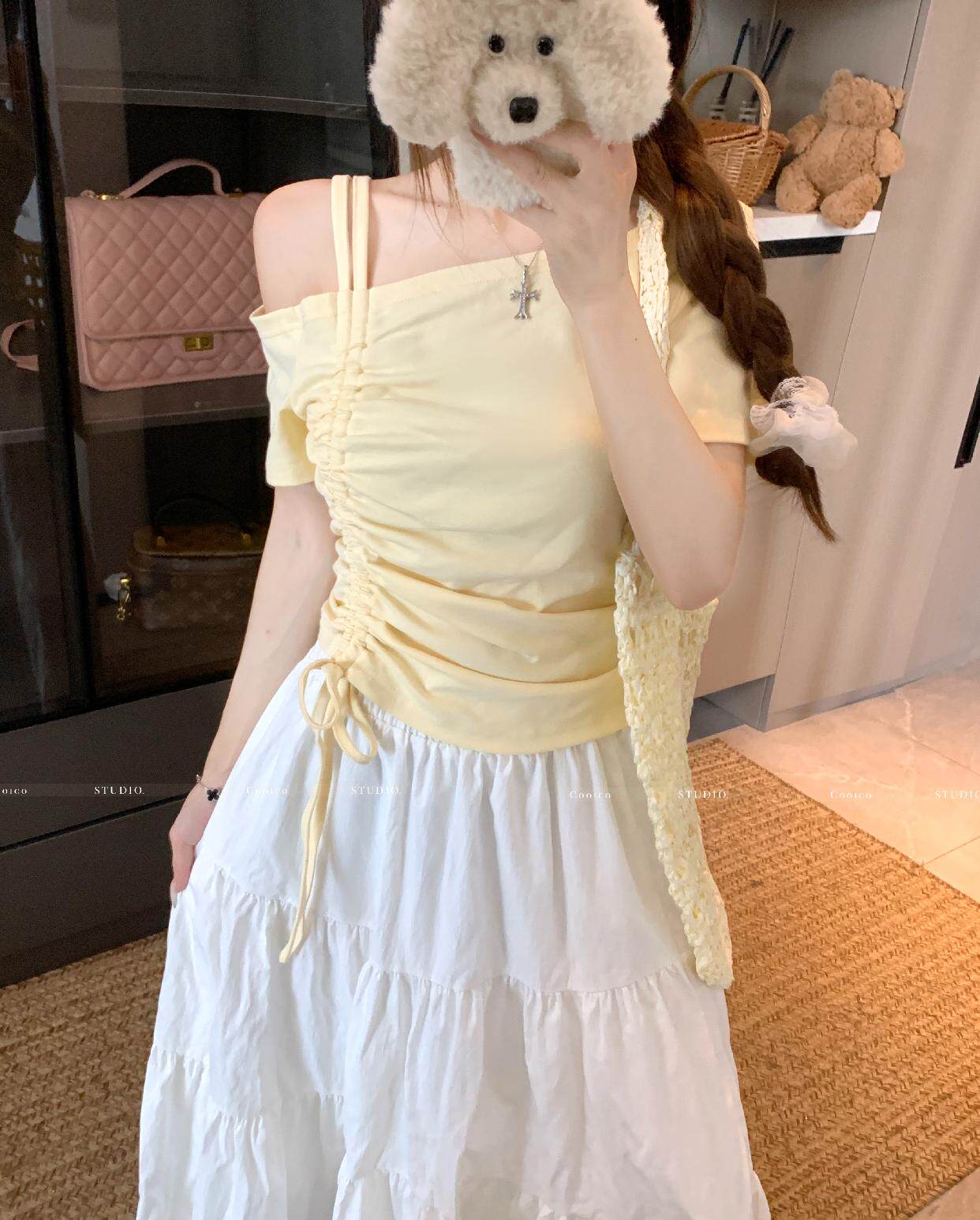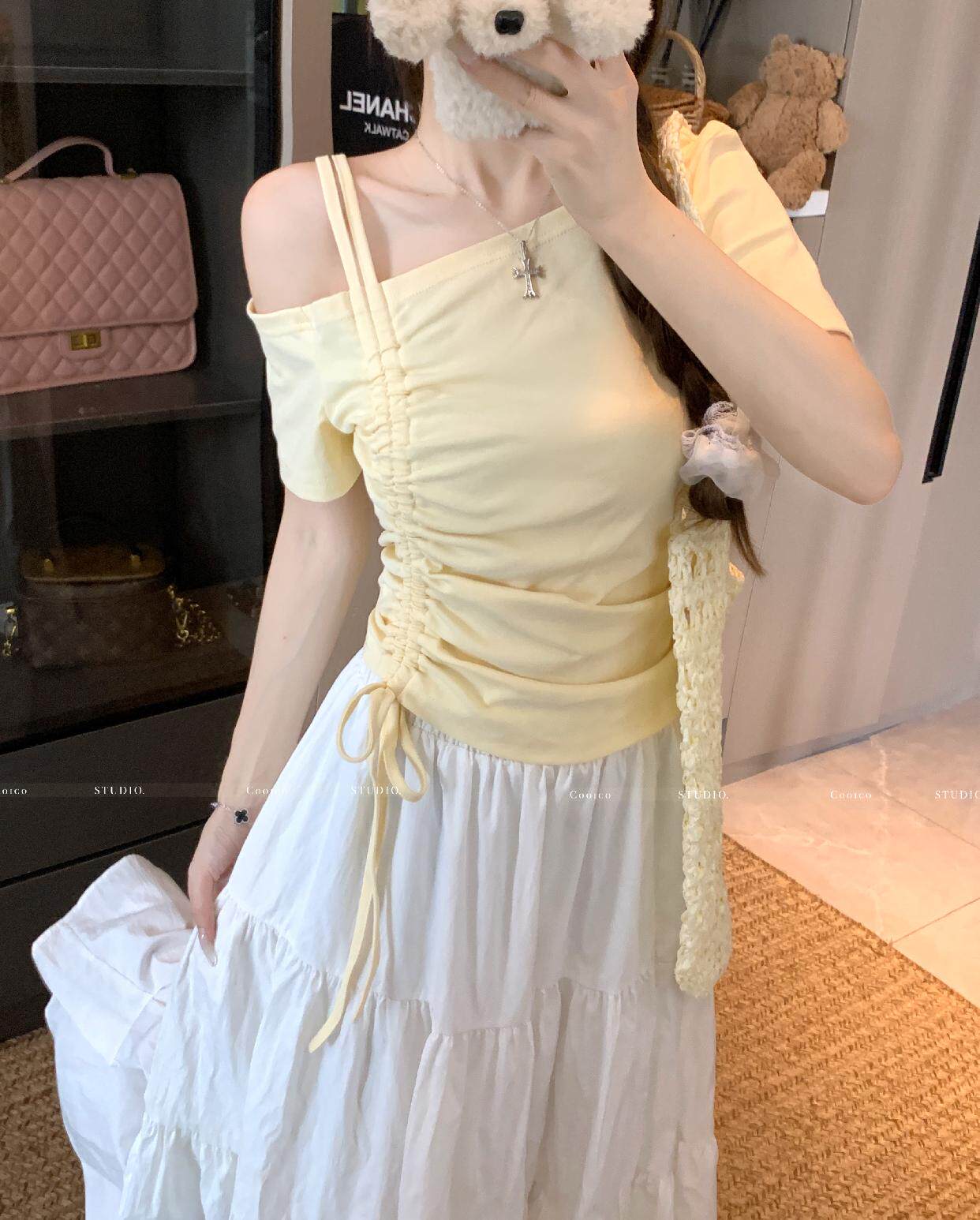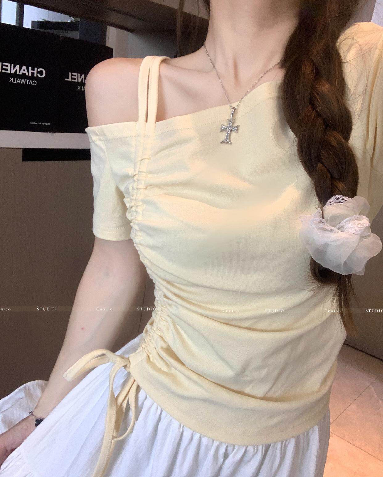 Дизайнерский летний приталенный корсет, футболка, размер, тренд сезона, на шнурках