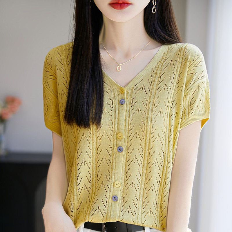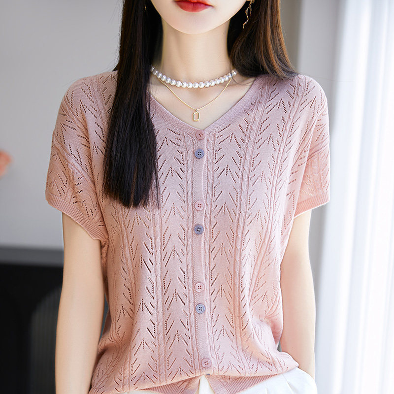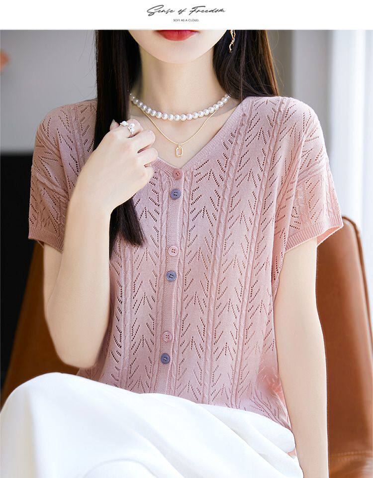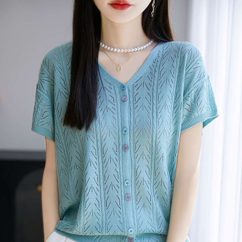 Футболка, трикотажный летний тонкий свитер, кардиган, «Холодное сердце», V-образный вырез