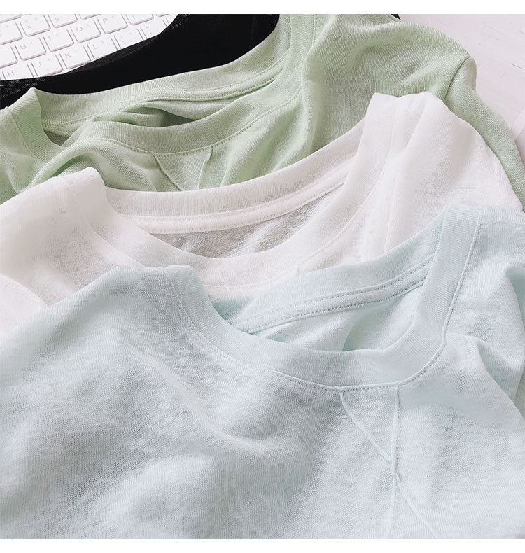 Шелковистый летний дышащий тонкий лонгслив, белый трикотажный свитер с круглым воротником, оверсайз, свободный крой, защита от солнца