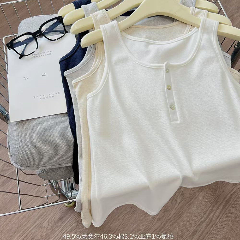 Летний топ с чашечками, комфортная дышащая футболка без рукавов, из хлопка и льна