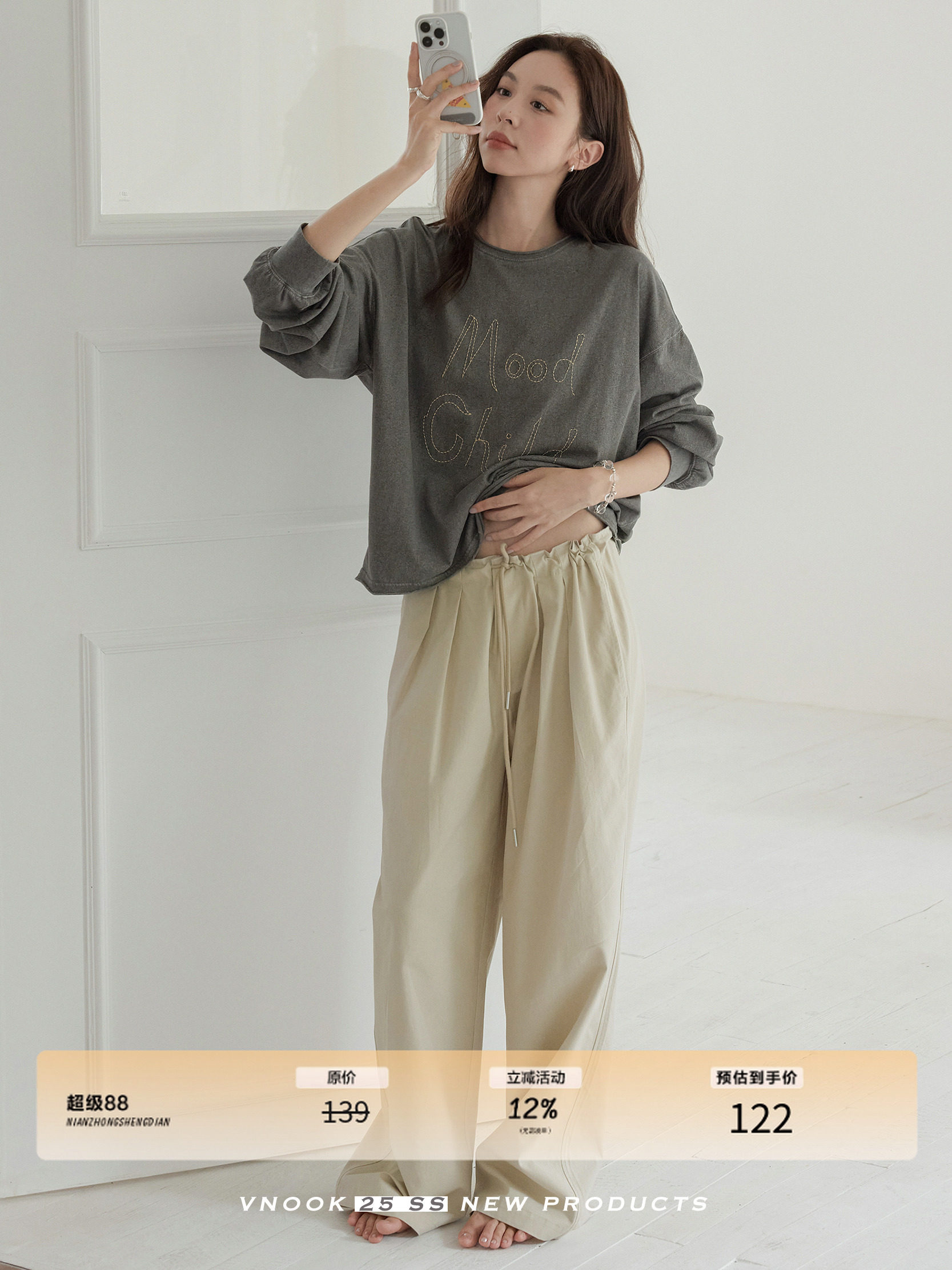 Хлопковый осенний лонгслив для отдыха, оверсайз