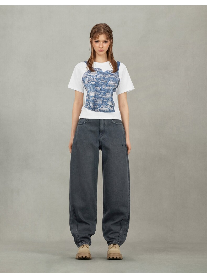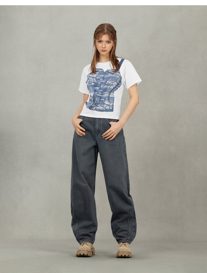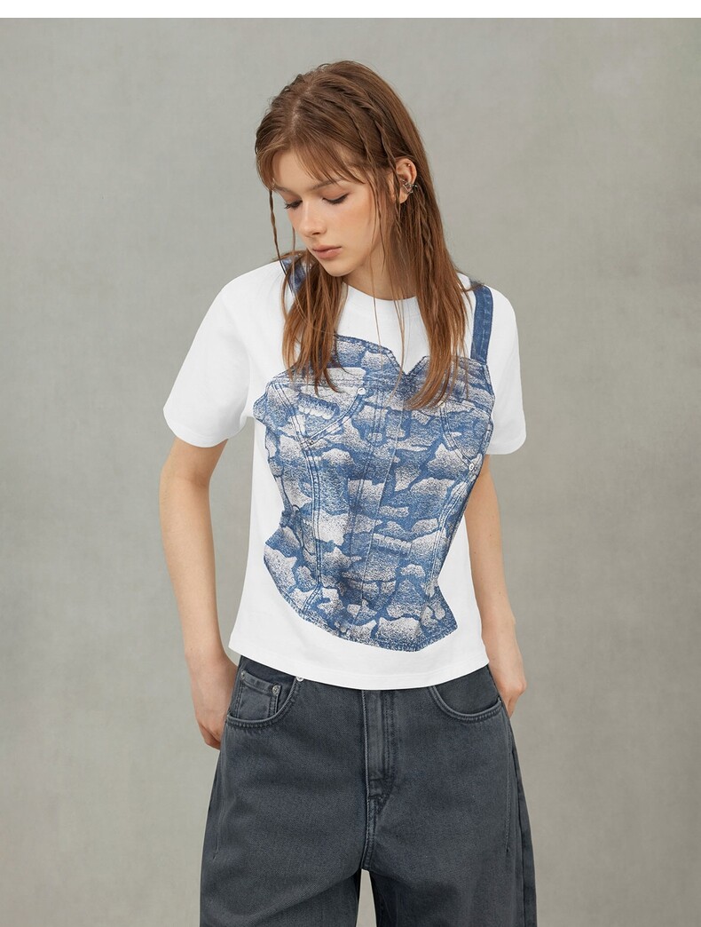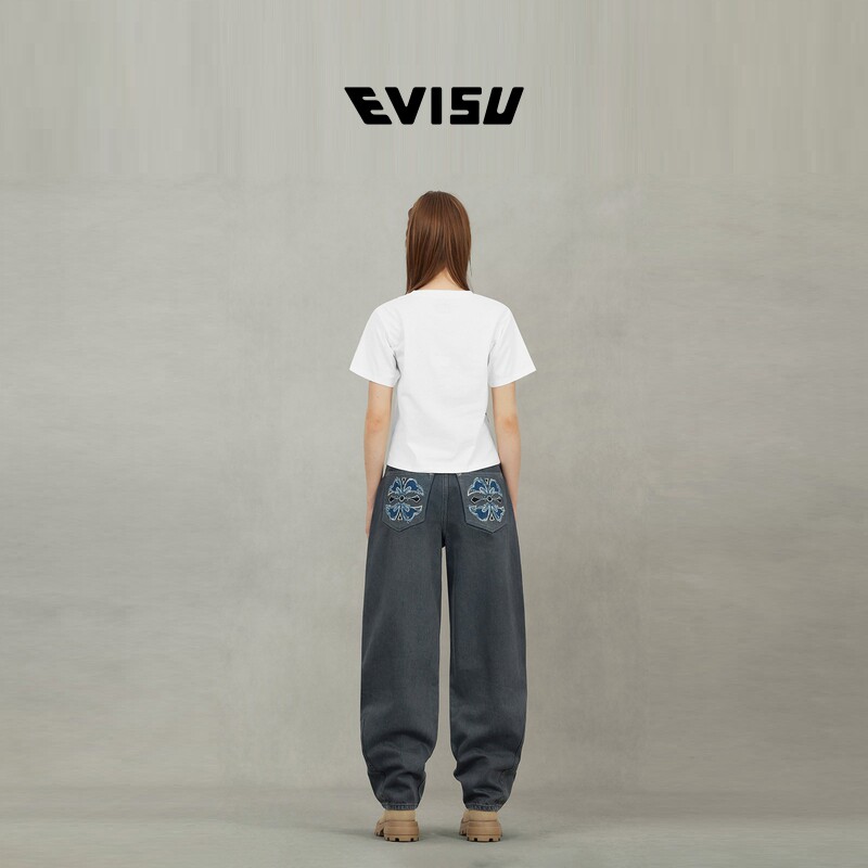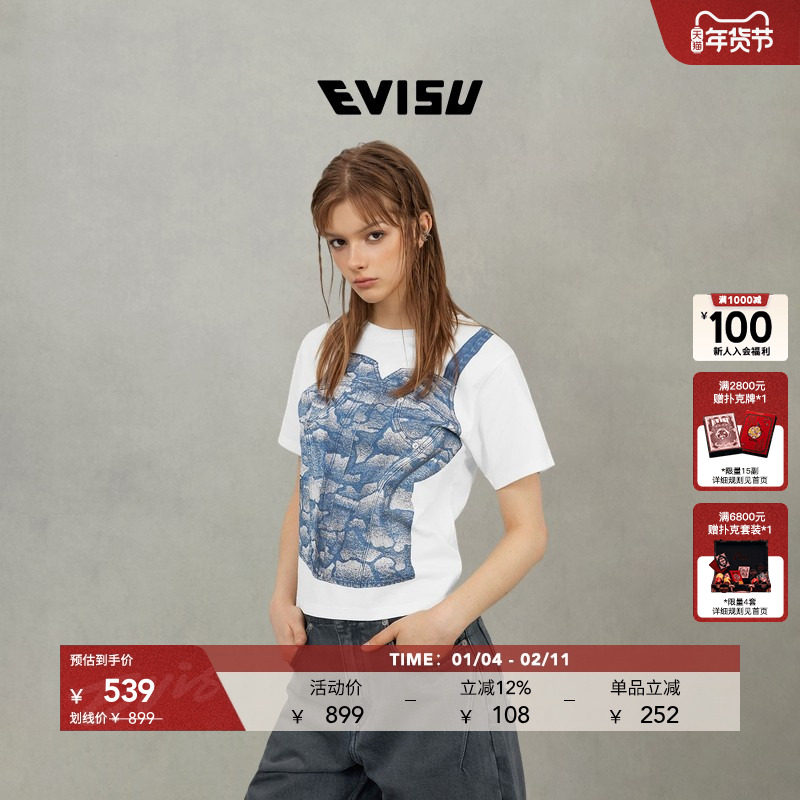 EVISU Fushen 2025, осенняя женская футболка с логотипом и короткими рукавами 2EAHTW5TS4039FFCT
