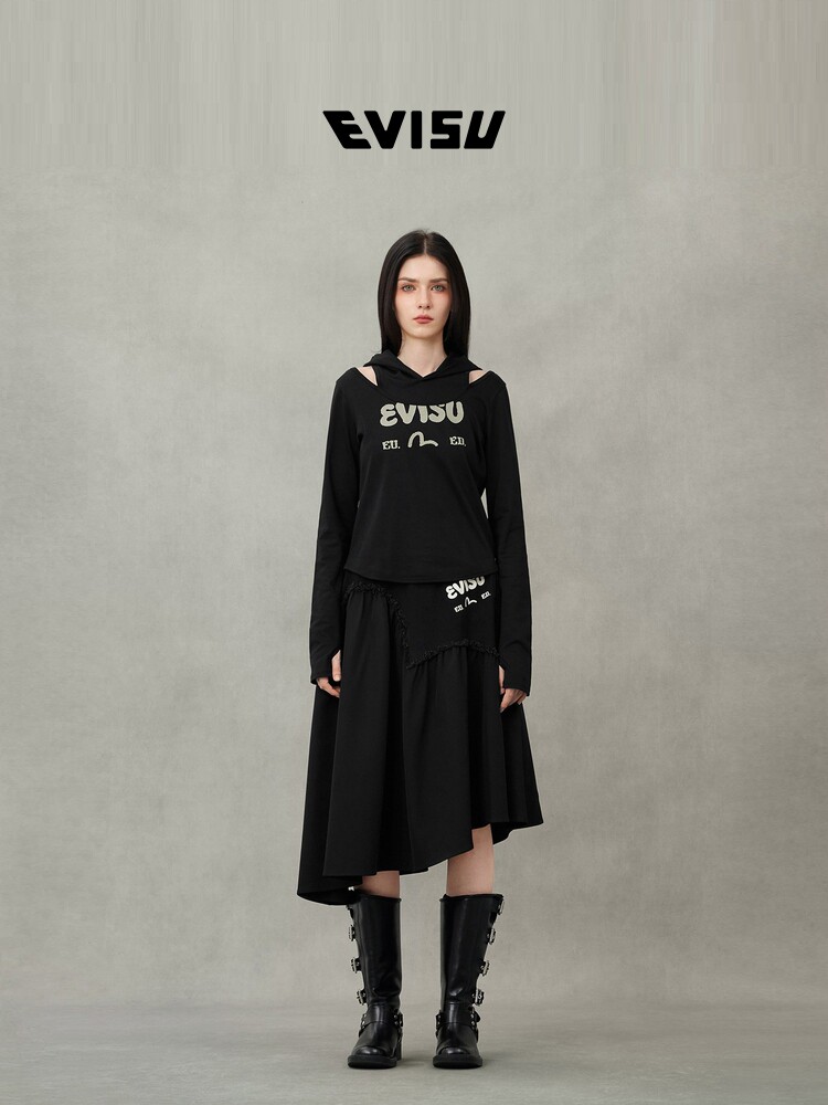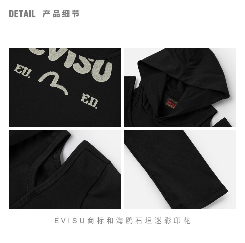 EVISU Lucky God 2025, осенний новый женский топ с камуфляжным принтом «Чайка Ишигаки» 2EAHTW5TL4062XXCT