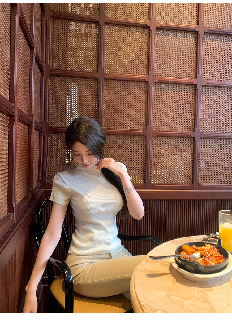 Шерстяная демисезонная эластичная трикотажная футболка, облегающий крой, короткий рукав