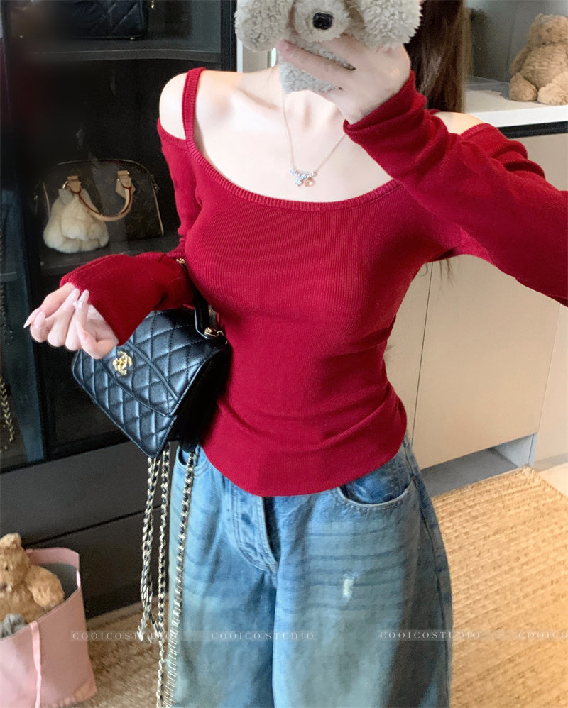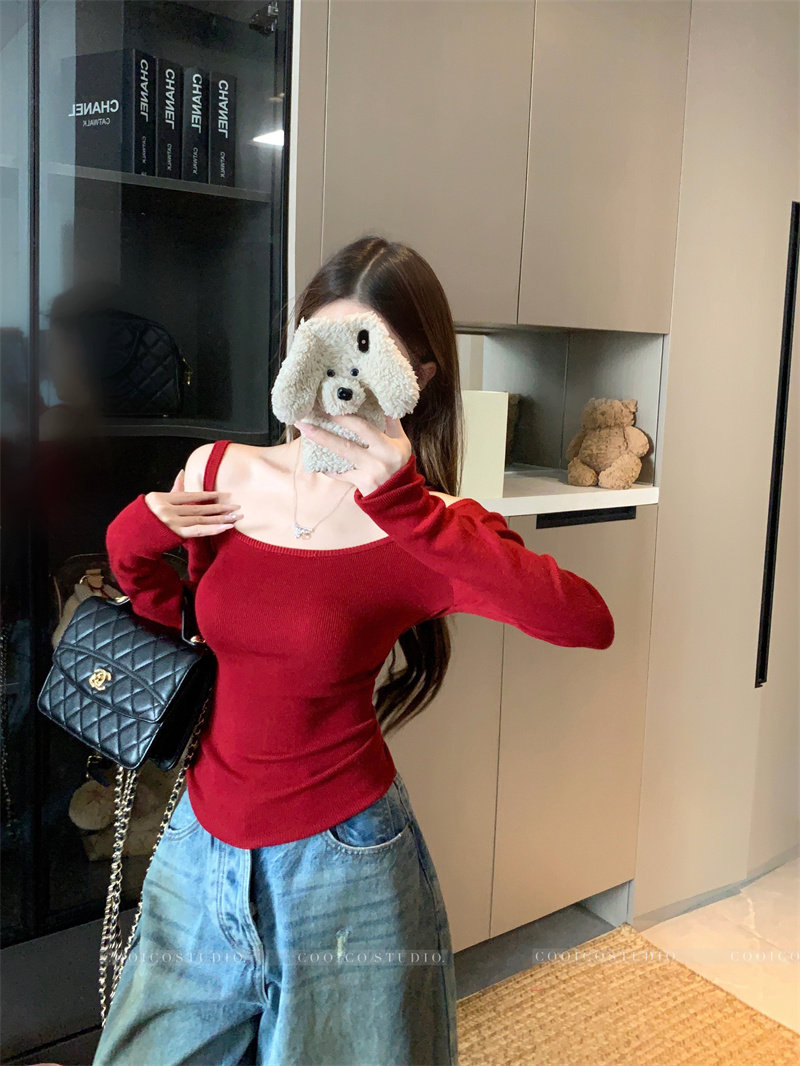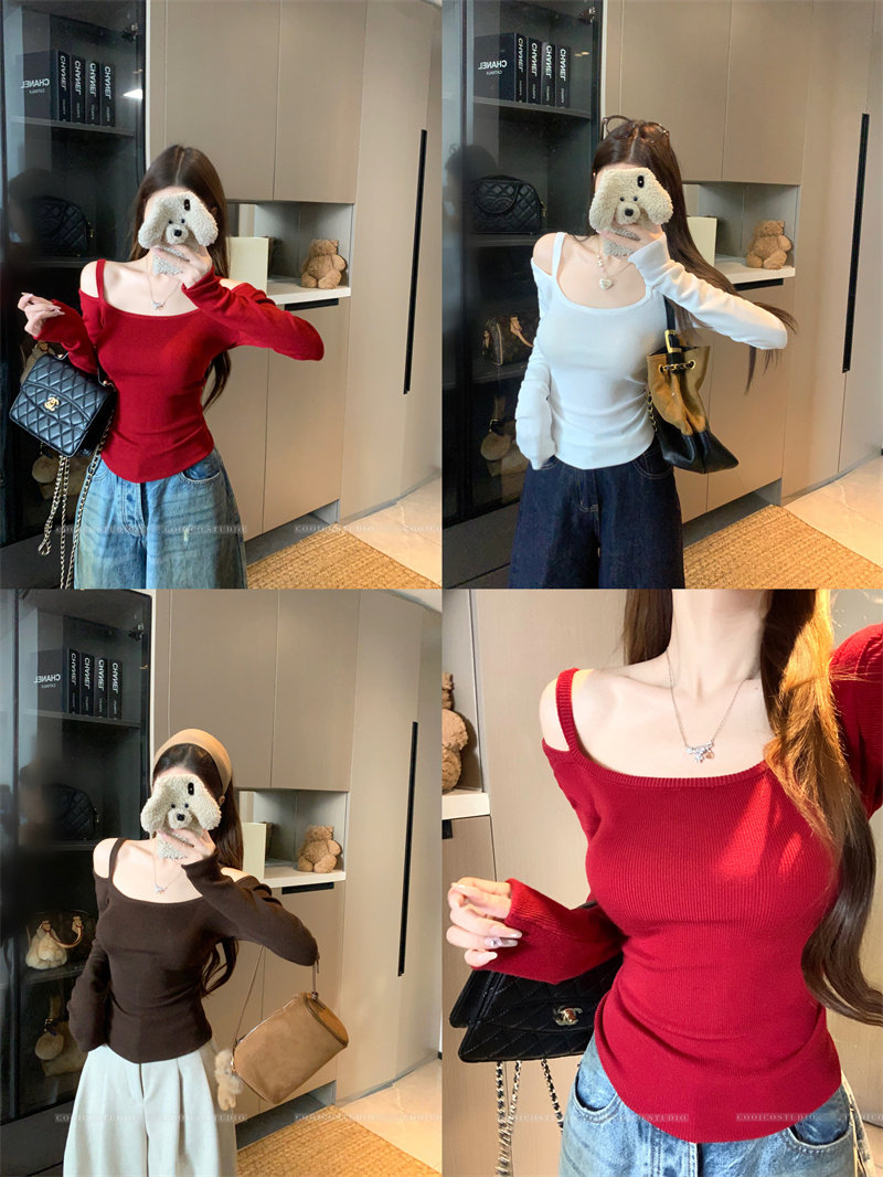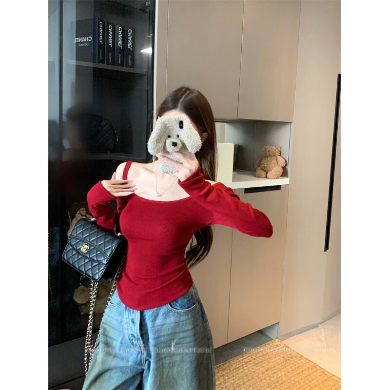 Цветной лонгслив, зимний приталенный свитер с узкими плечами, французский стиль
