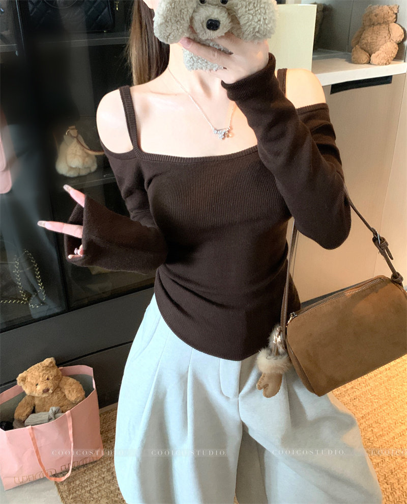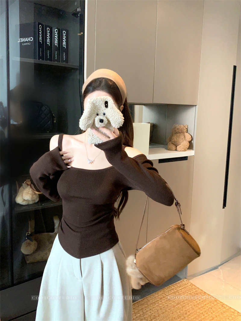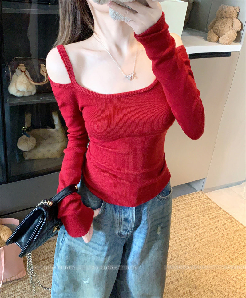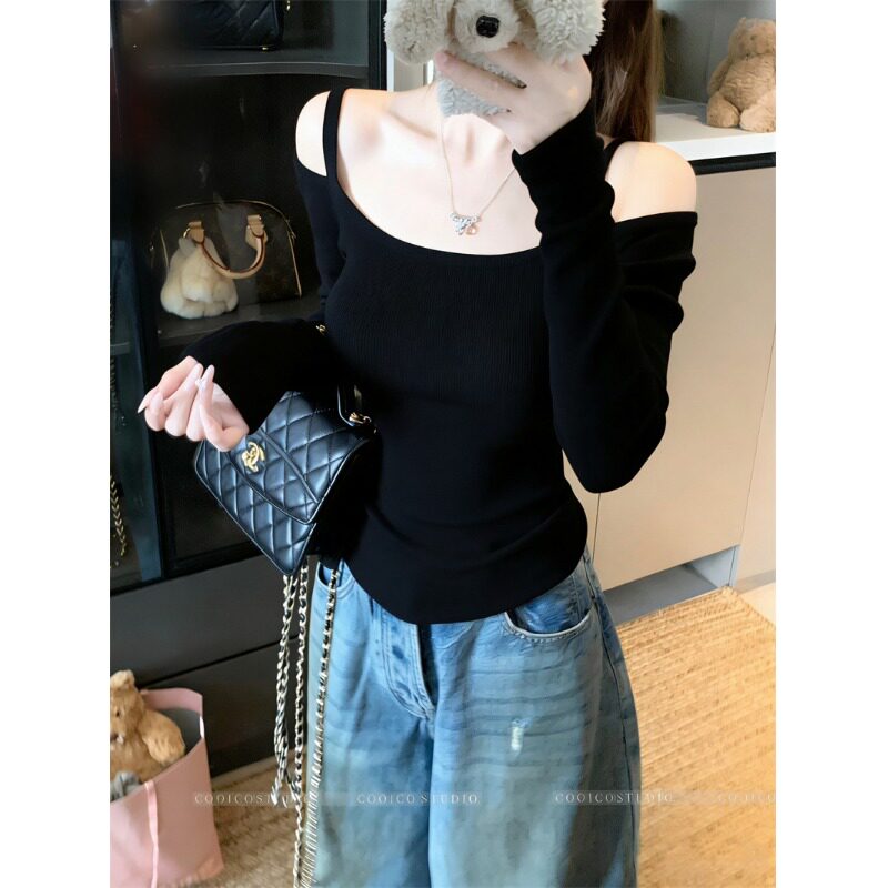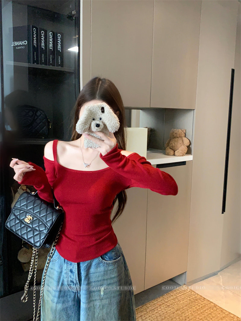 Цветной лонгслив, зимний приталенный свитер с узкими плечами, французский стиль