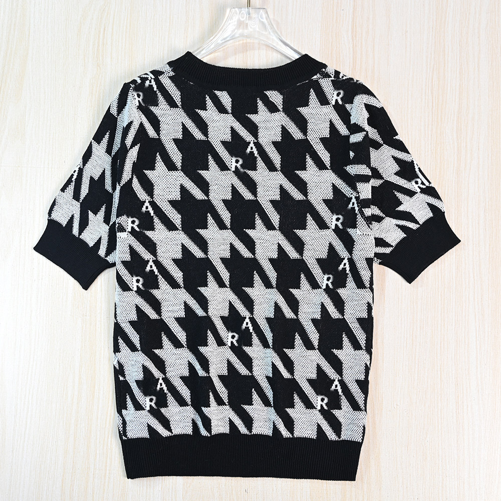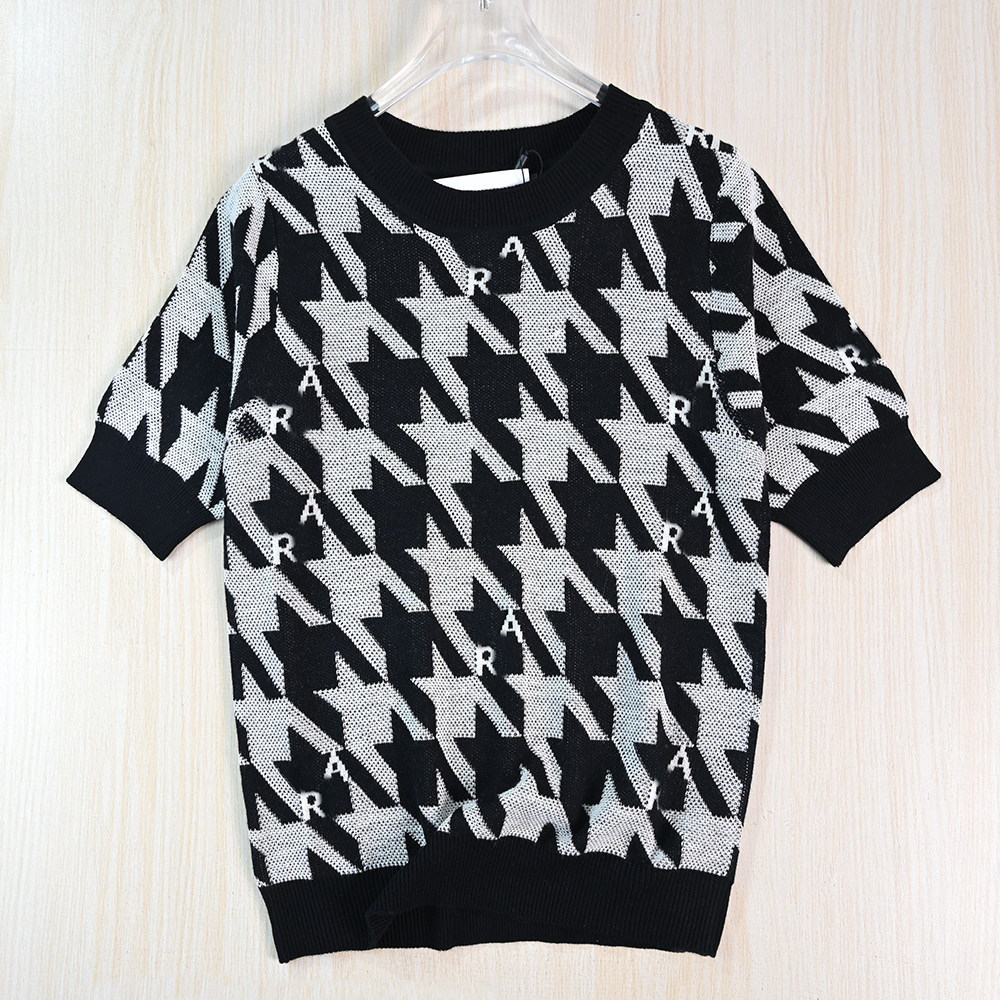 Siqi Женская одежда 2512/22 Американский стиль K-стиль контрастного цвета с буквами «гусиные лапки» и круглым вырезом, повседневный свитер с короткими рукавами