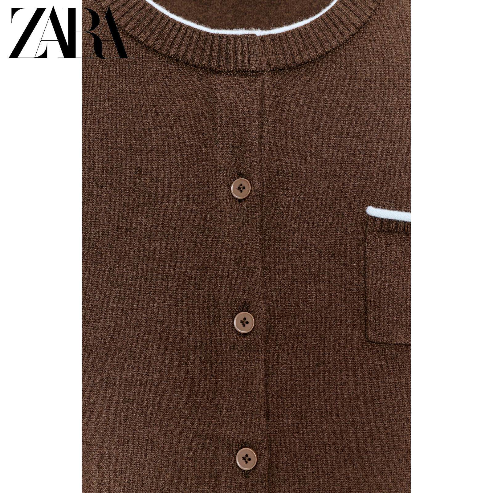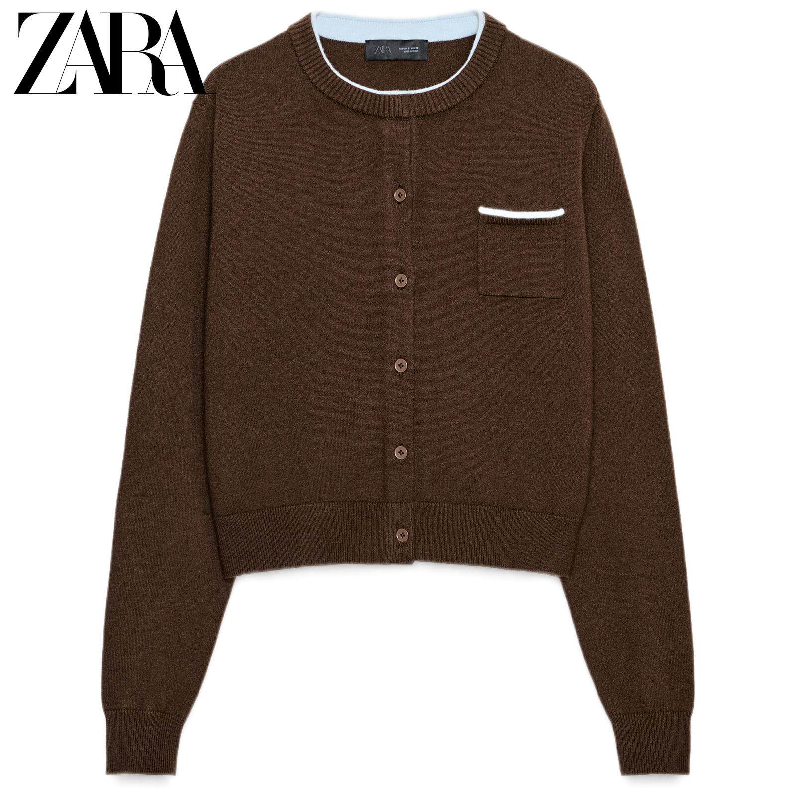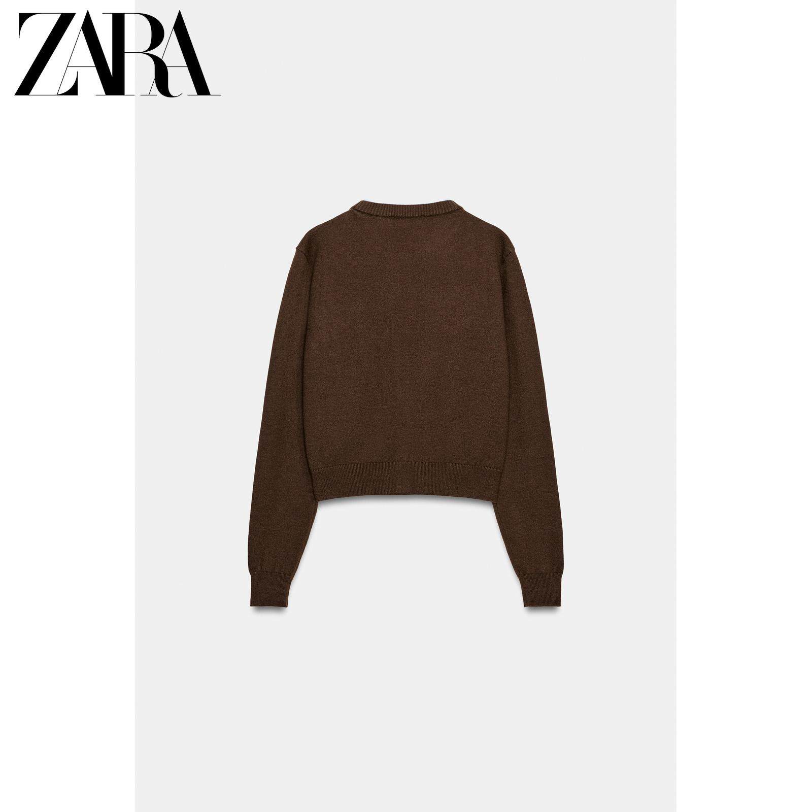 ZARA Новое поступление зимы 2025, женский свитер с длинным рукавом и круглым вырезом, нагрудным карманом 3920051 700