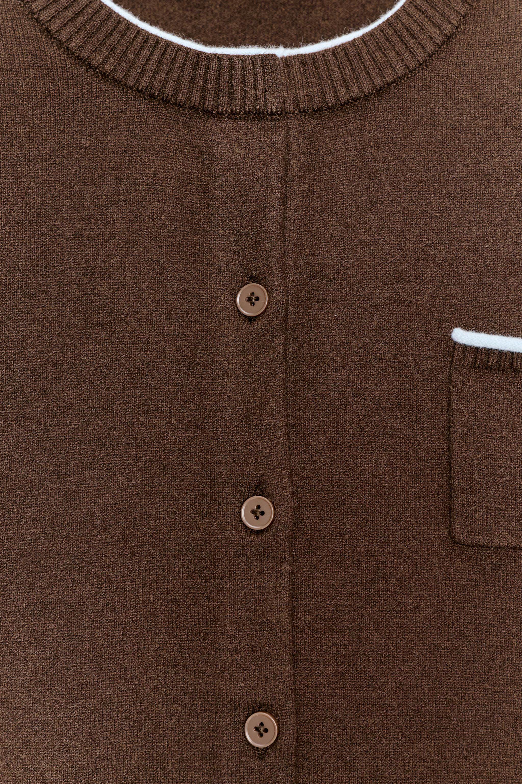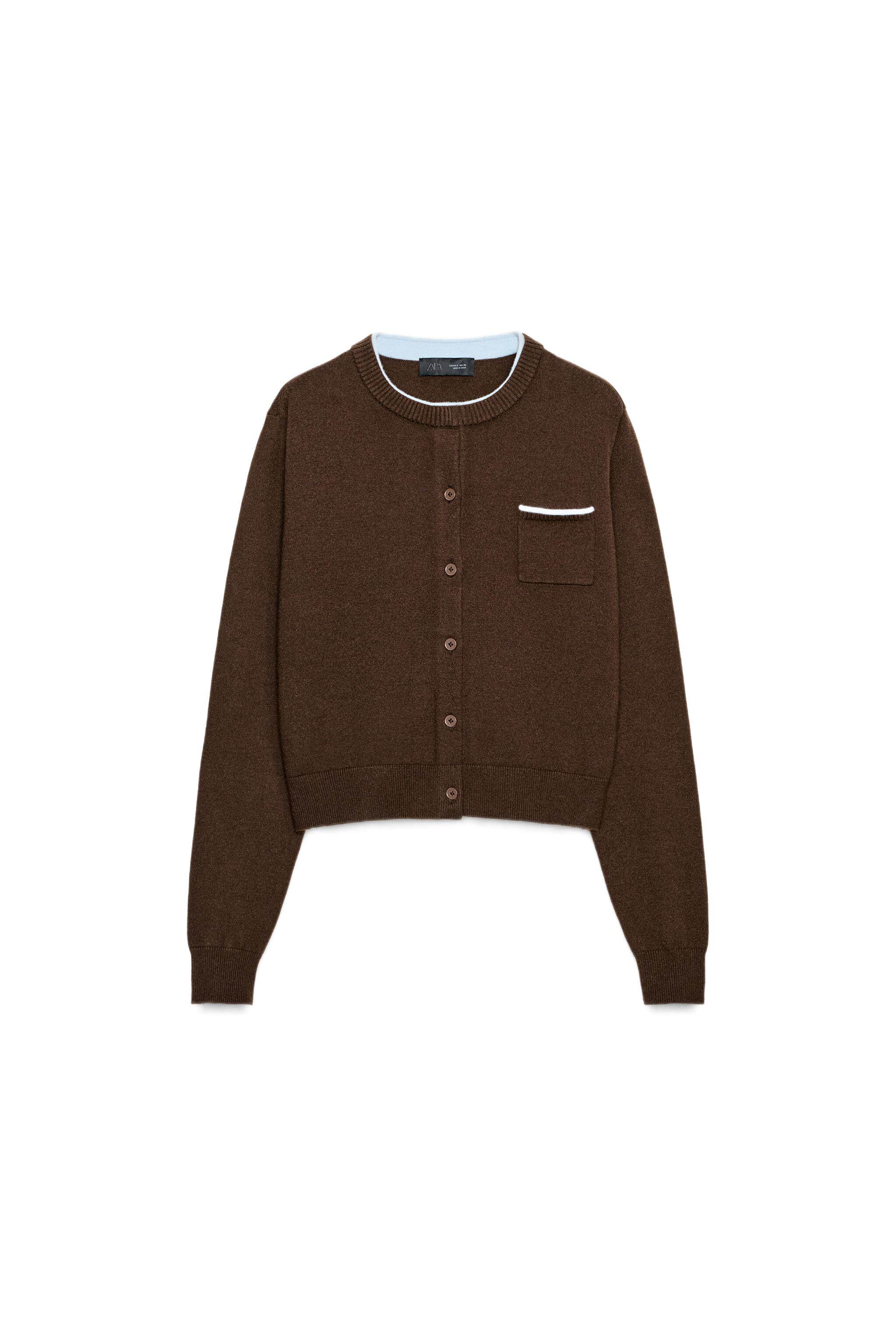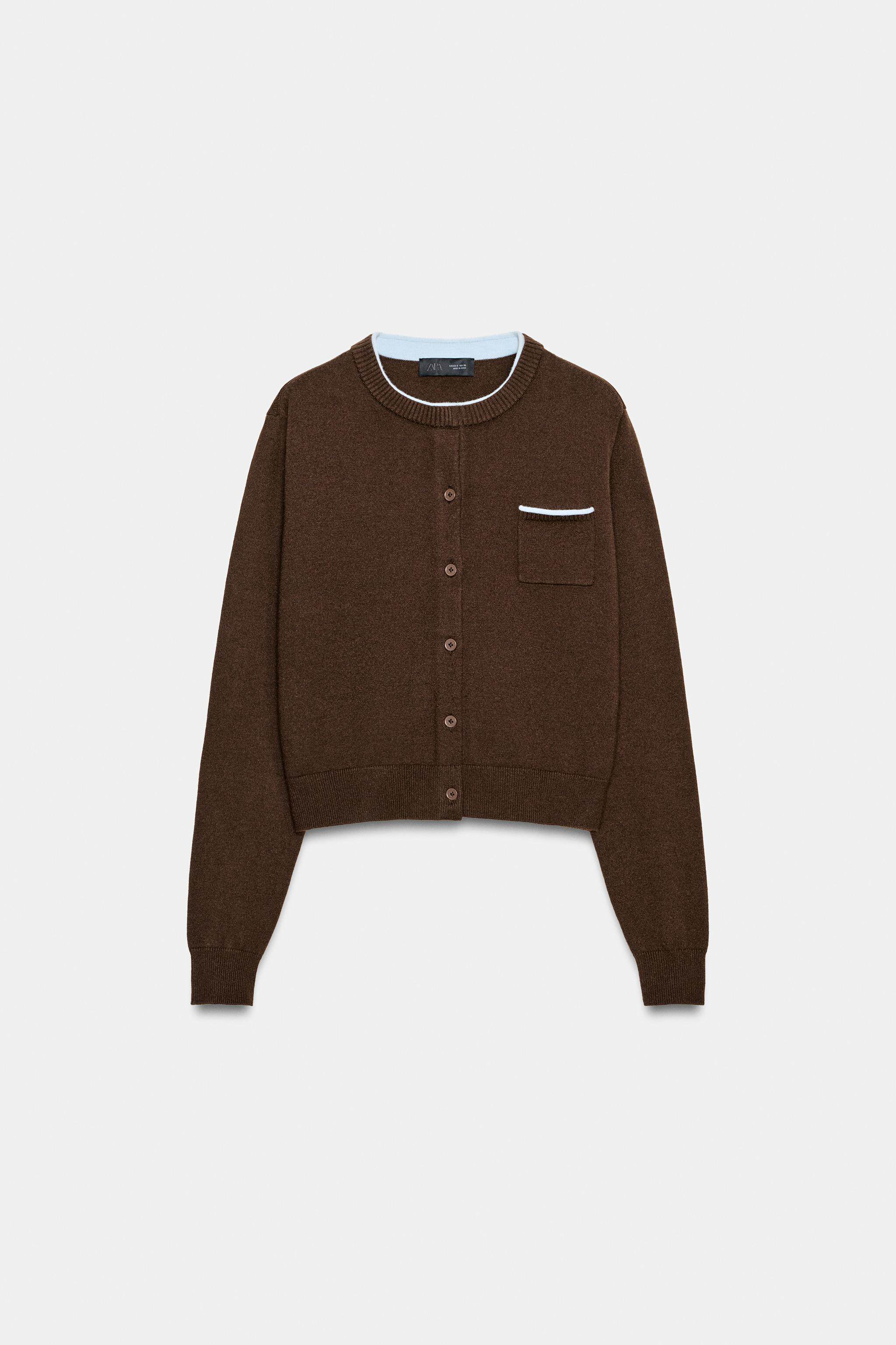ZARA Новое поступление зимы 2025, женский свитер с длинным рукавом и круглым вырезом, нагрудным карманом 3920051 700