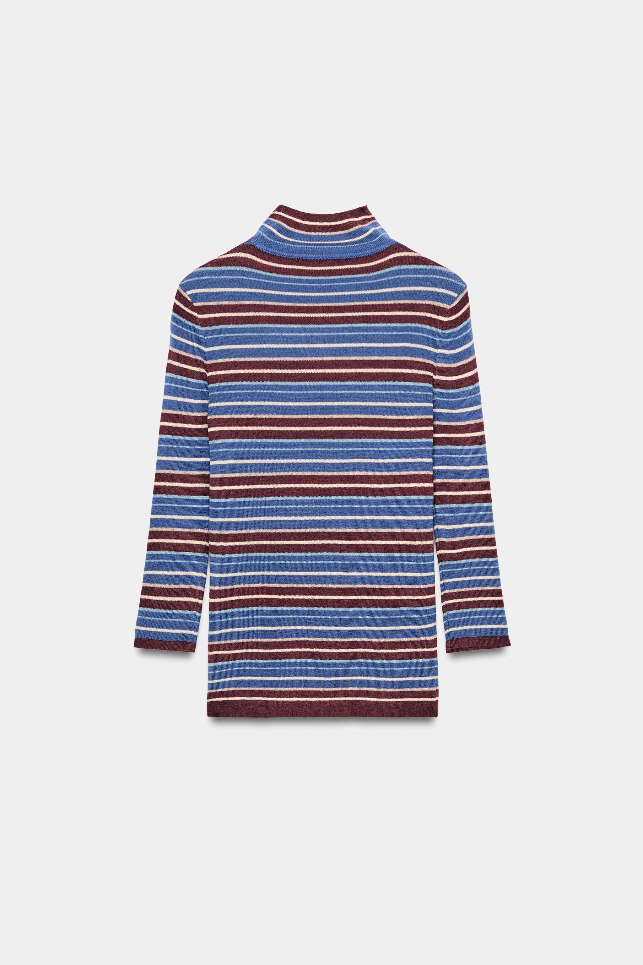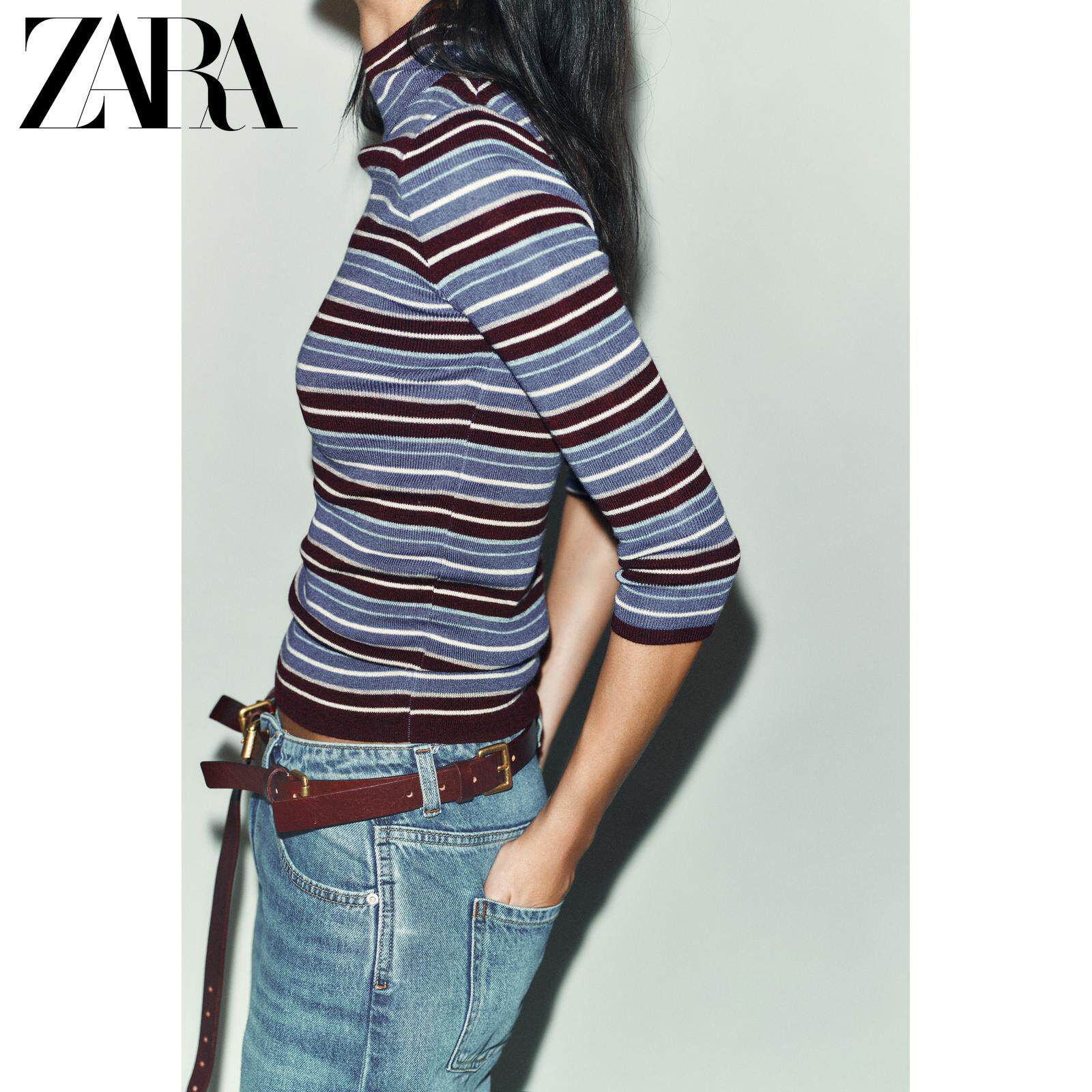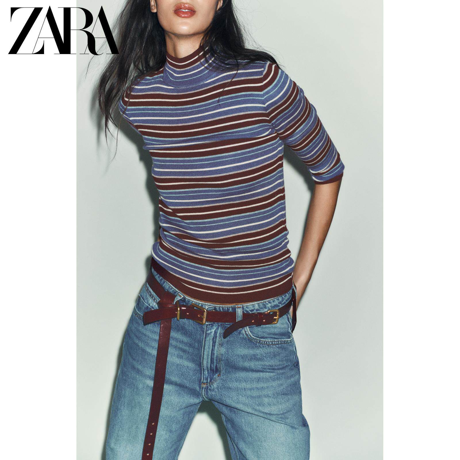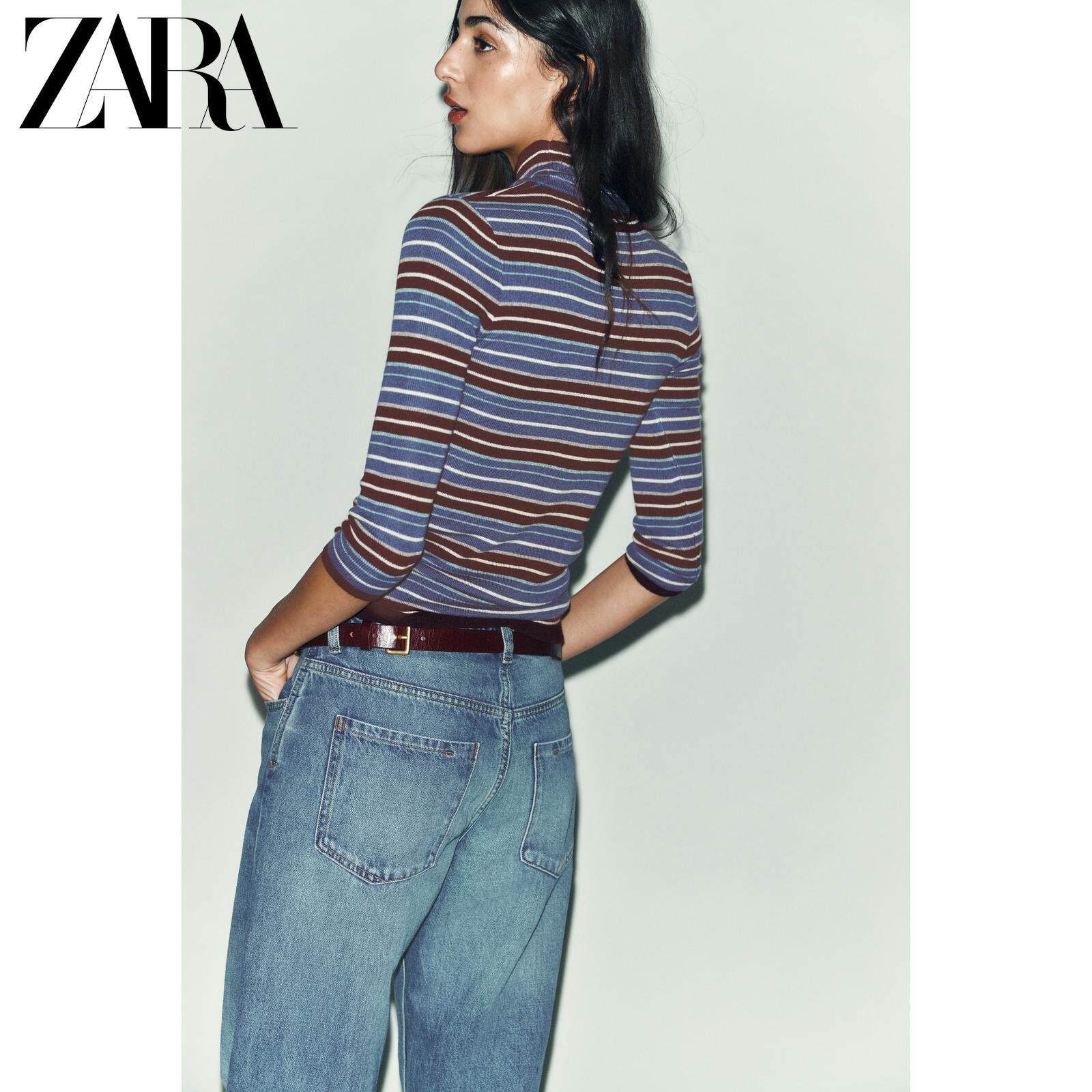 ZARA Зимние новинки 2025 года, женский свитер с длинными рукавами и воротником в разноцветную полоску 9598005 330