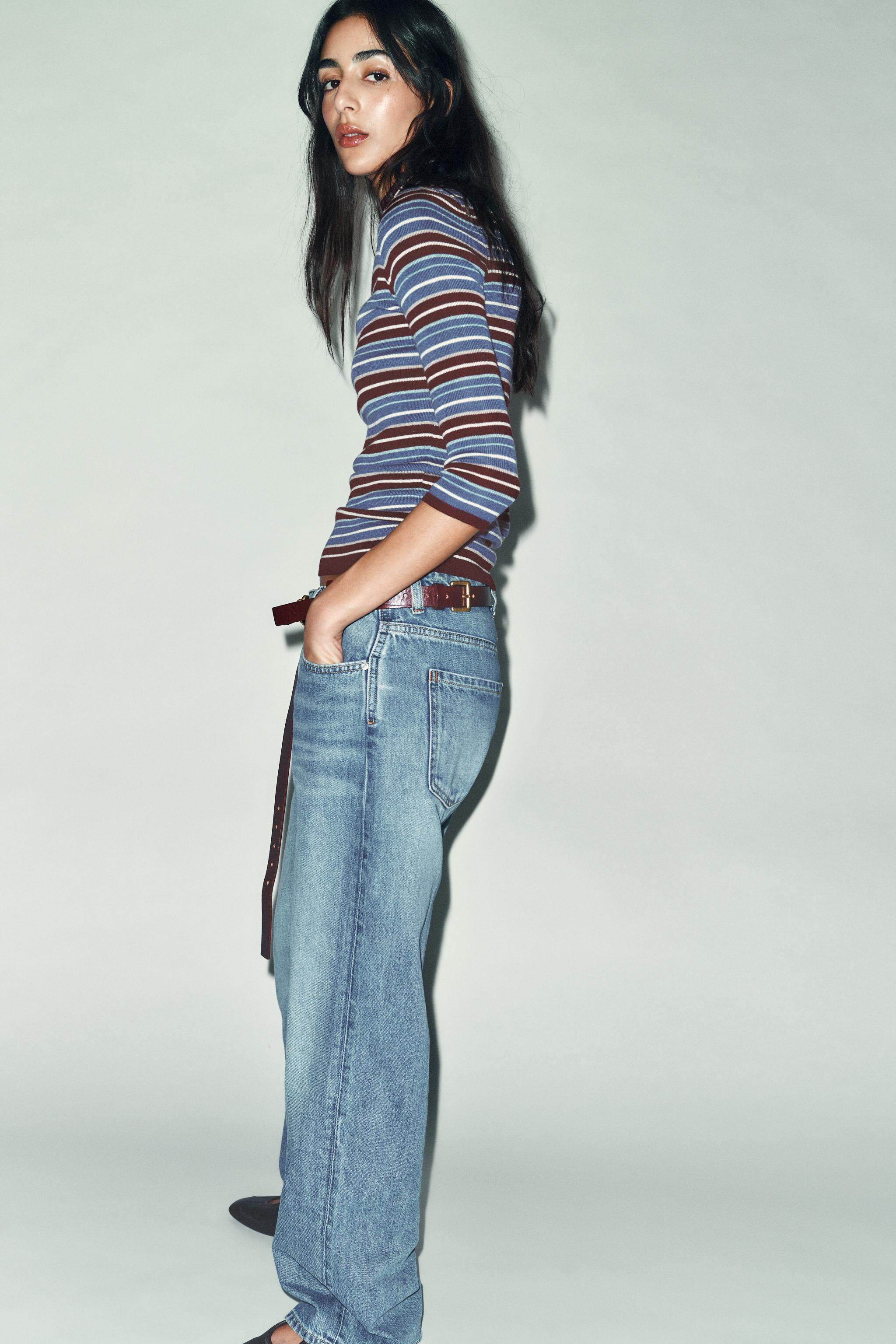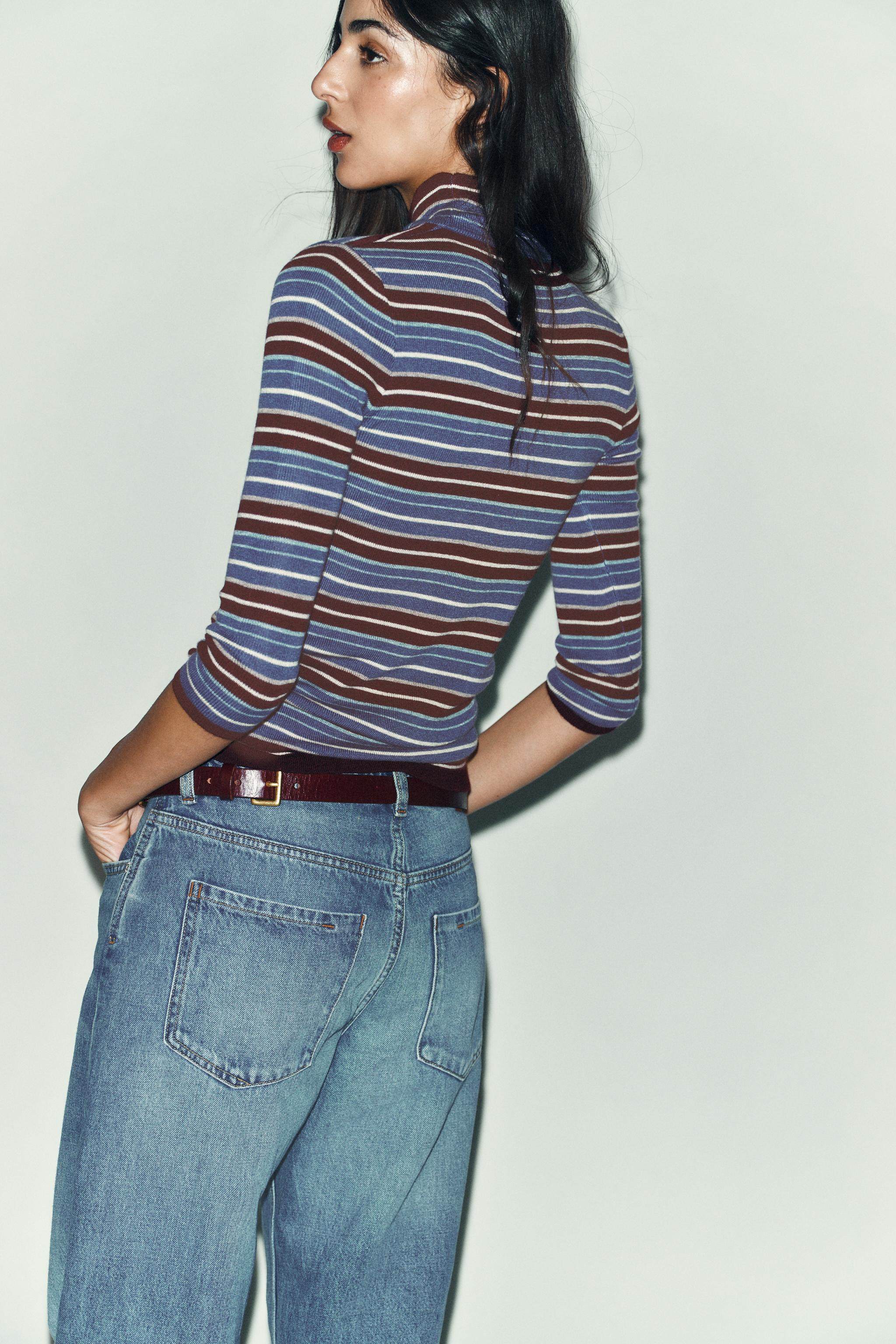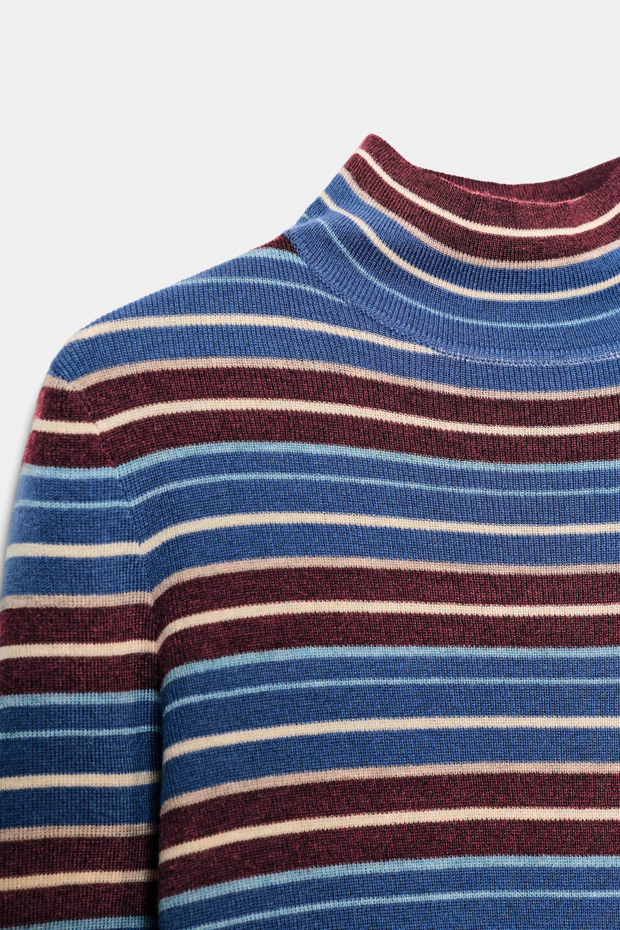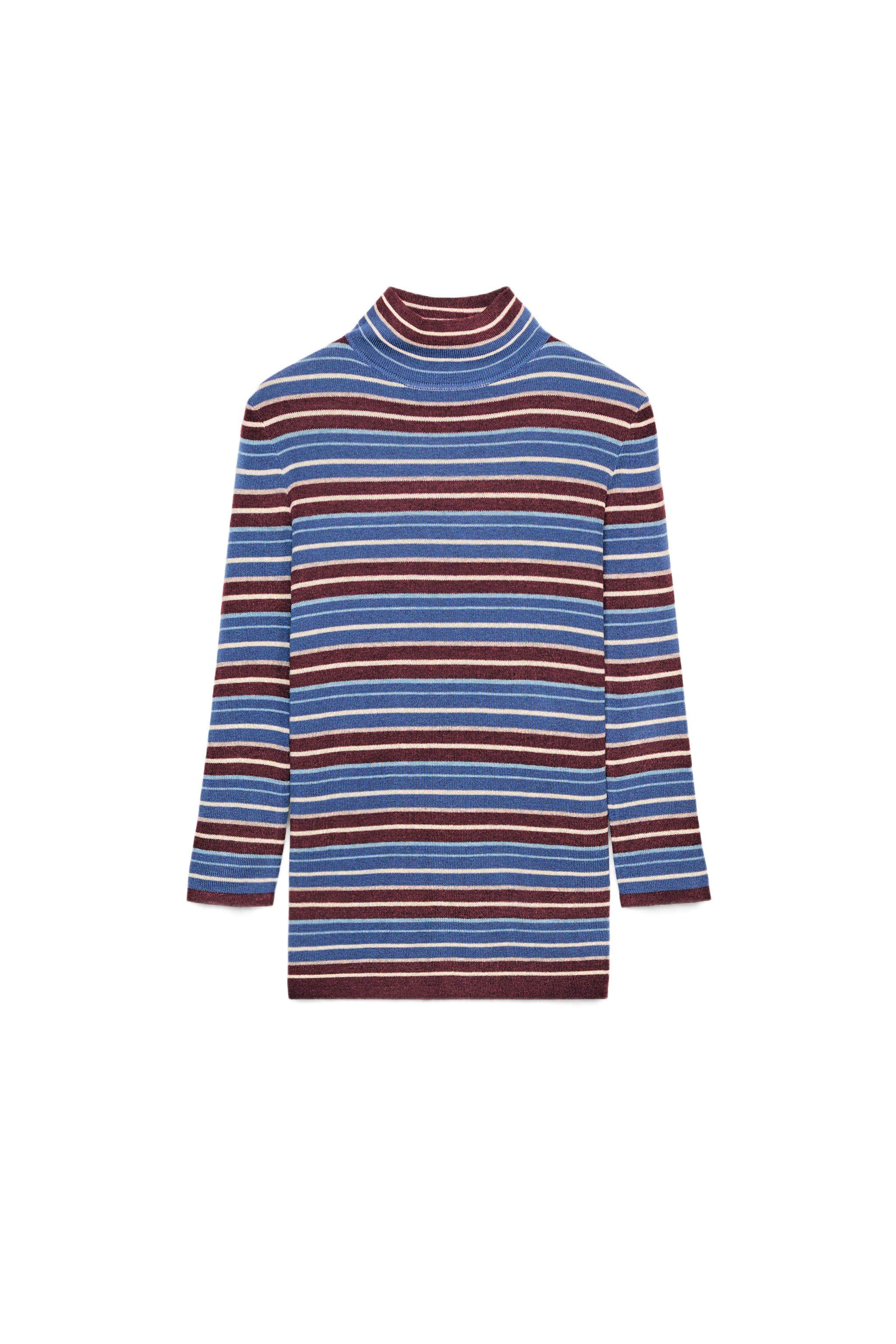 ZARA Зимние новинки 2025 года, женский свитер с длинными рукавами и воротником в разноцветную полоску 9598005 330