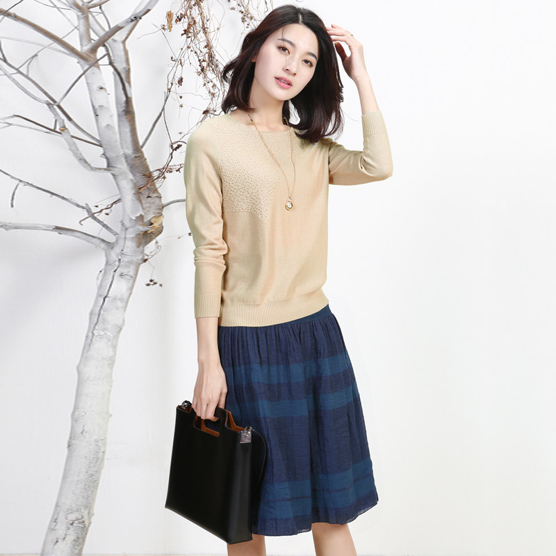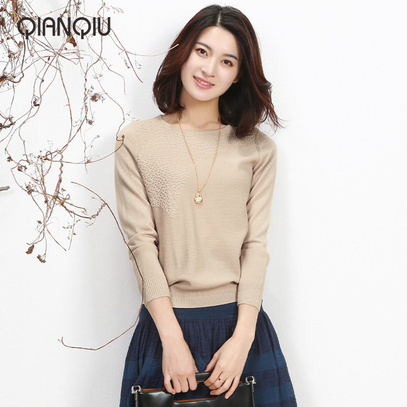 浅秋 Трикотажный осенний свитер, шерстяной элегантный свежий лонгслив с круглым воротником