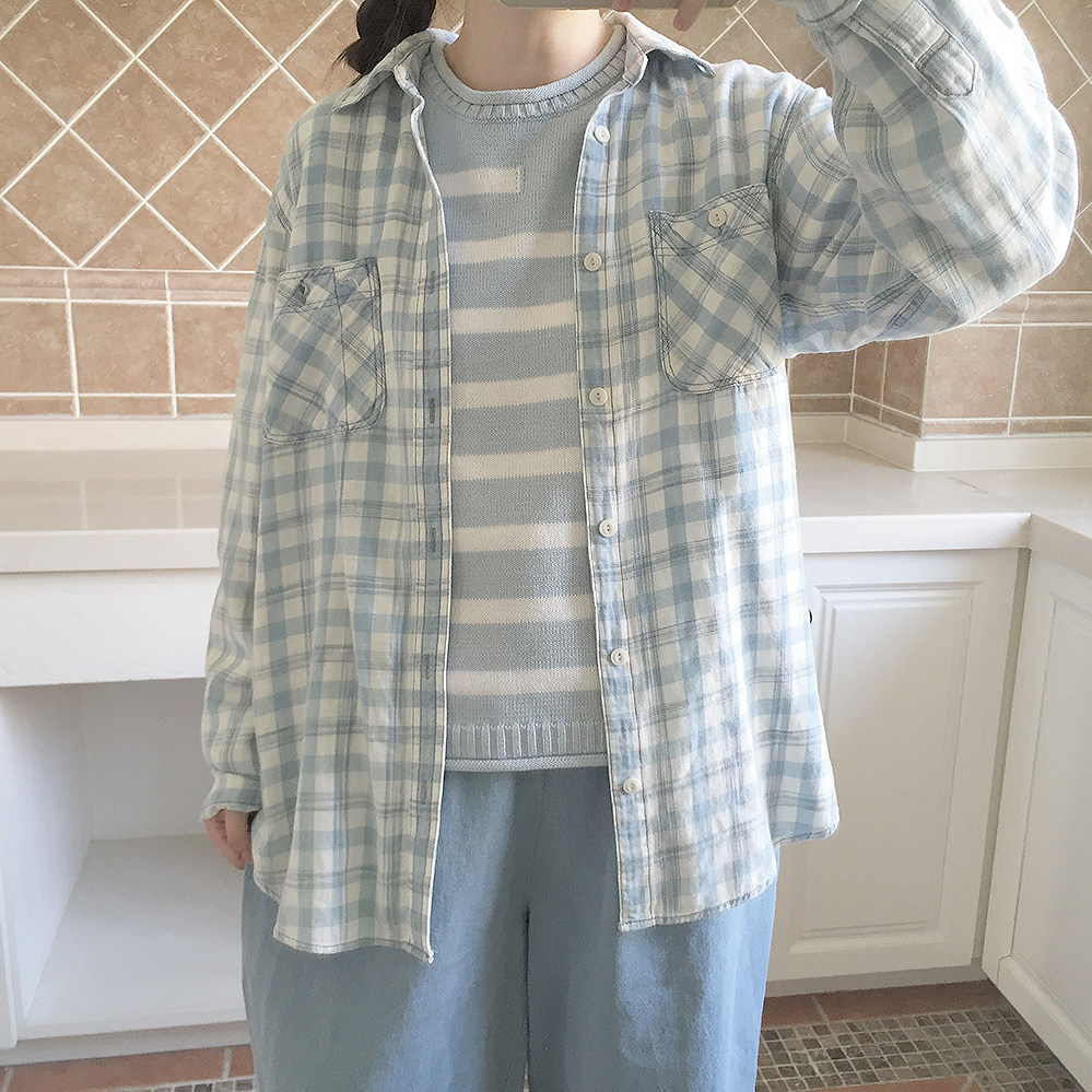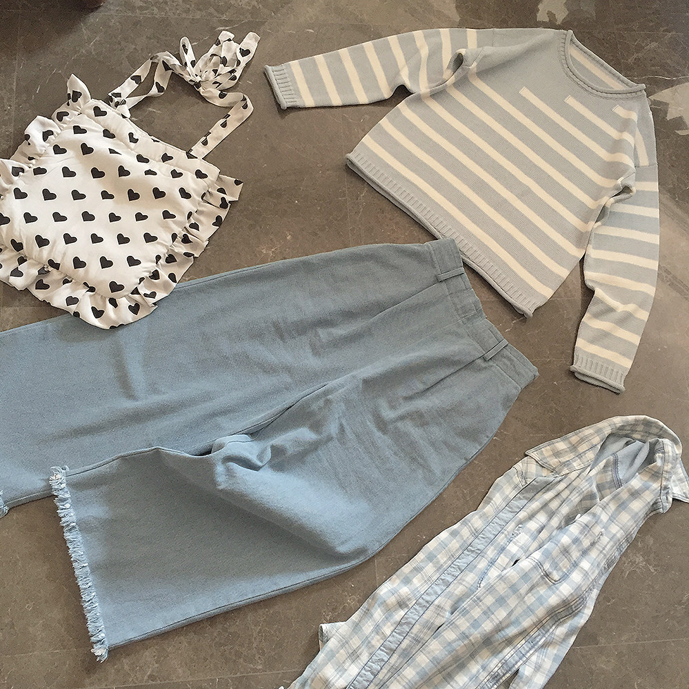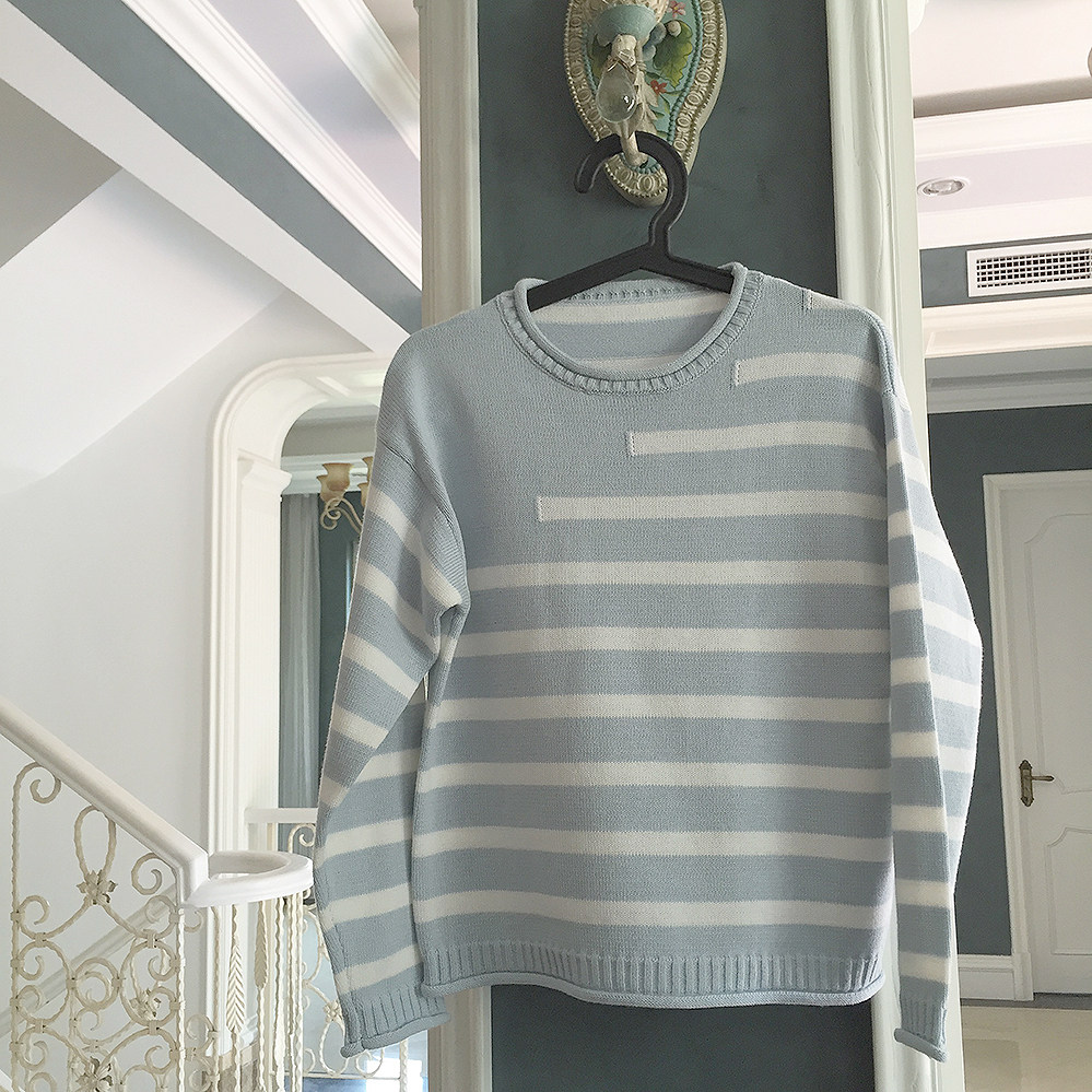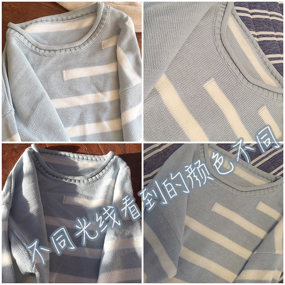 *ОК синие и белые полосы пружина и осень -тонкий свитер K