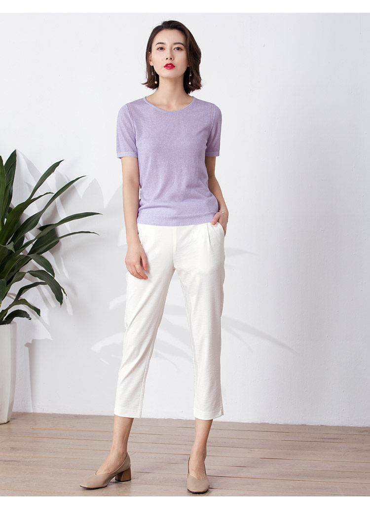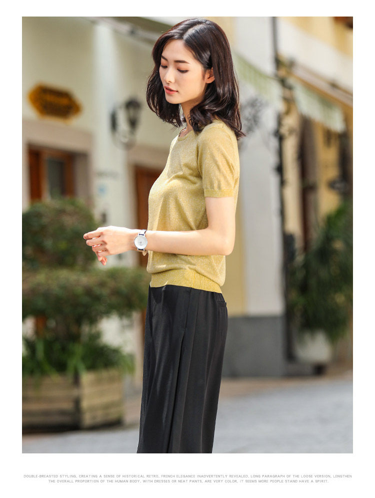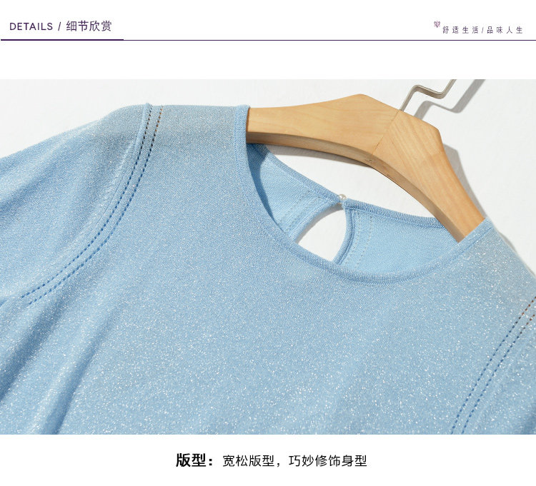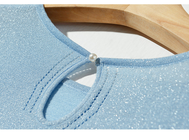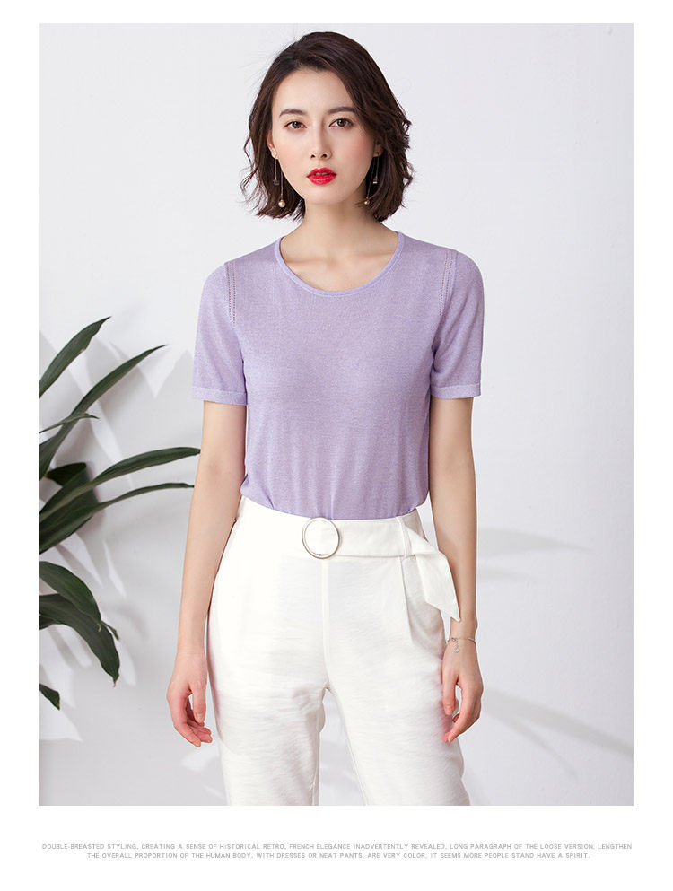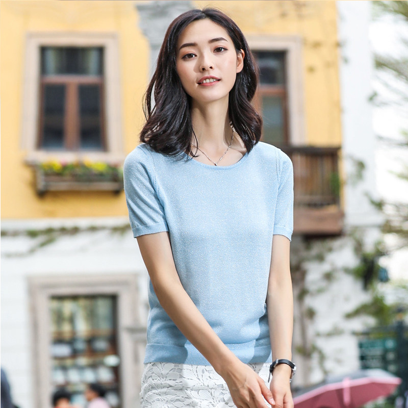 Комфортный тонкий синий трикотажный летний свитер, базовая приятная телу футболка, короткий рукав