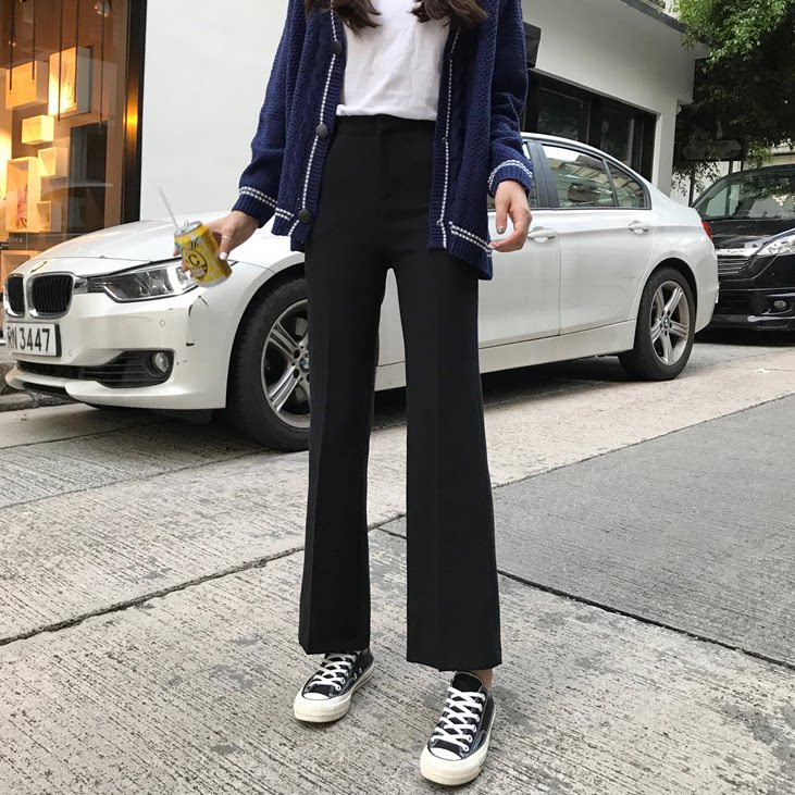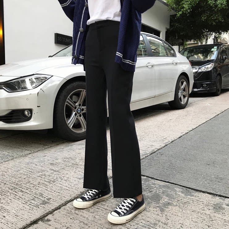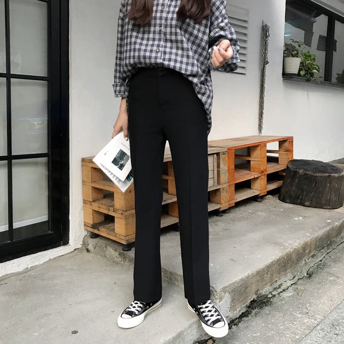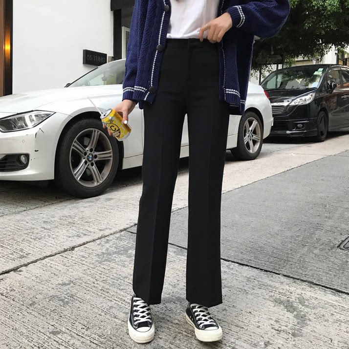 Черный костюм, весенние тонкие штаны, подходит для подростков, облегающий крой, свободный прямой крой