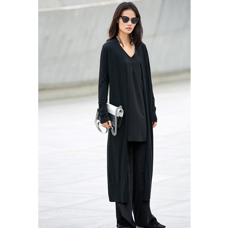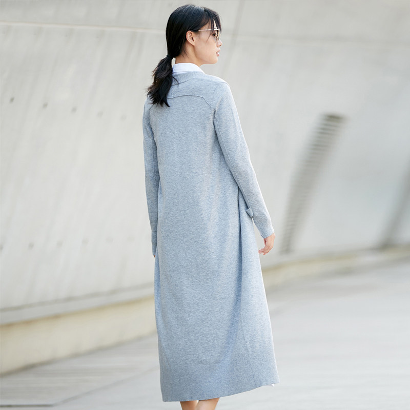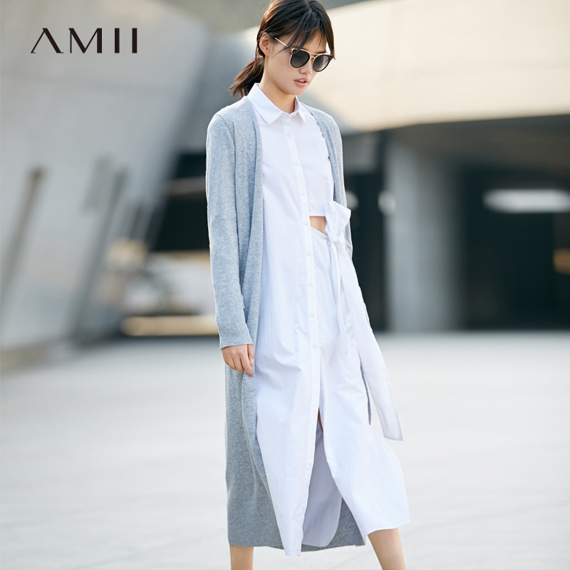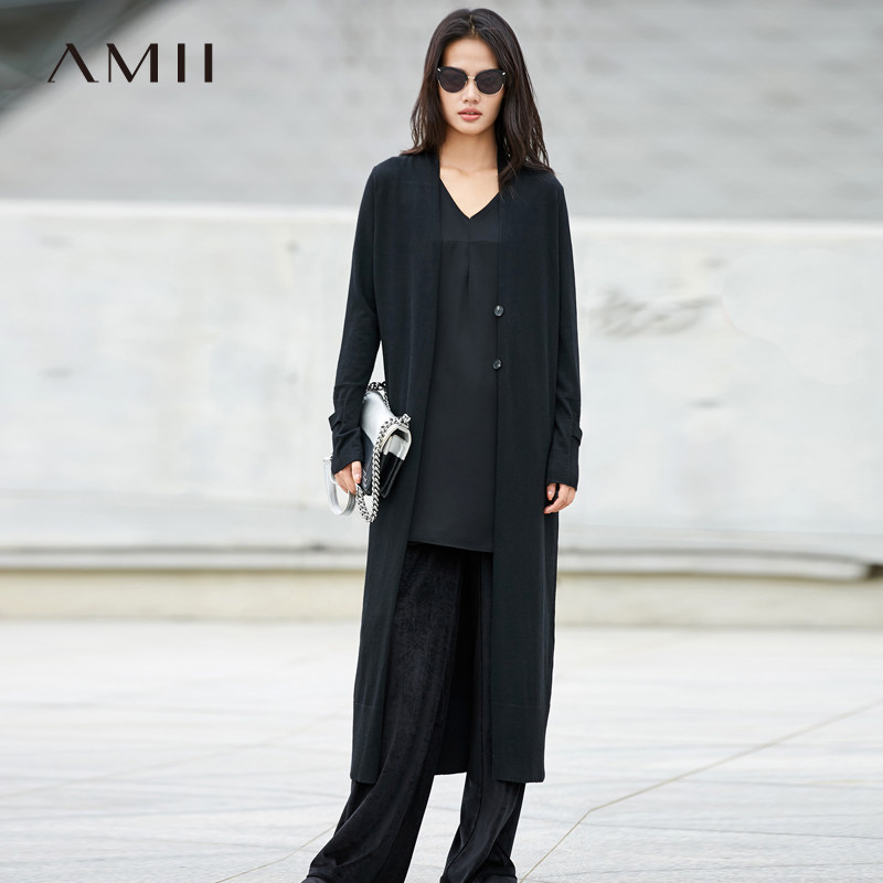 Amii Минималистичный ретро трикотажный свитер, осенний длинный лонгслив, кардиган, V-образный вырез, свободный крой, 2020, средней длины