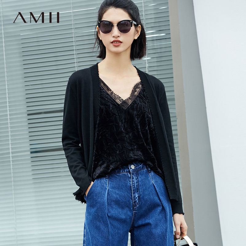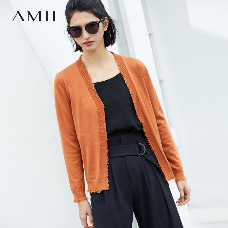 Amii Минималистичный трикотажный весенний свитер, кардиган, футболка, лонгслив, свободный крой, 2020