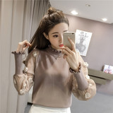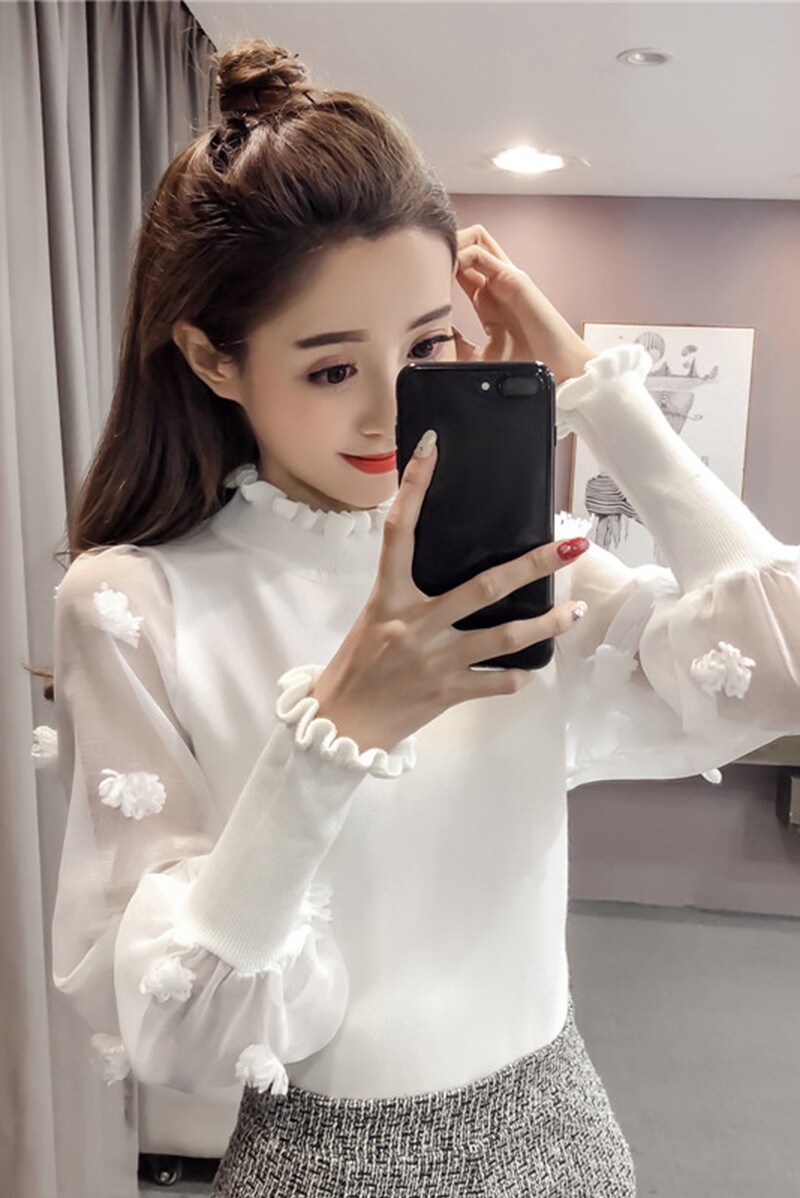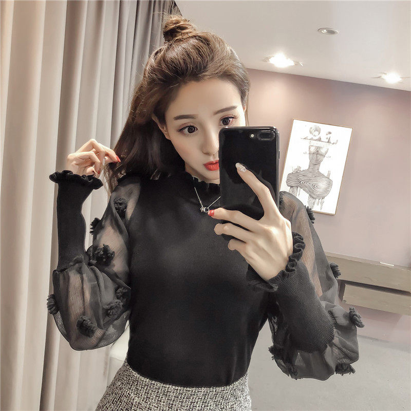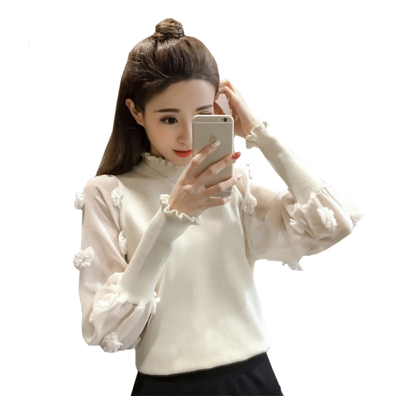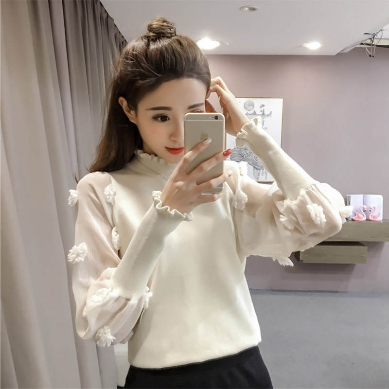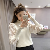 Демисезонный свитер, фонарь, короткий трикотажный лонгслив, в корейском стиле, высокий воротник, свободный крой
