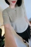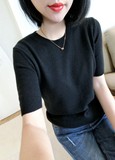 Демисезонный трикотажный свитер с круглым воротником, короткие тонкие базовые приятные телу трикотажные нарукавники, короткий рукав, свободный крой