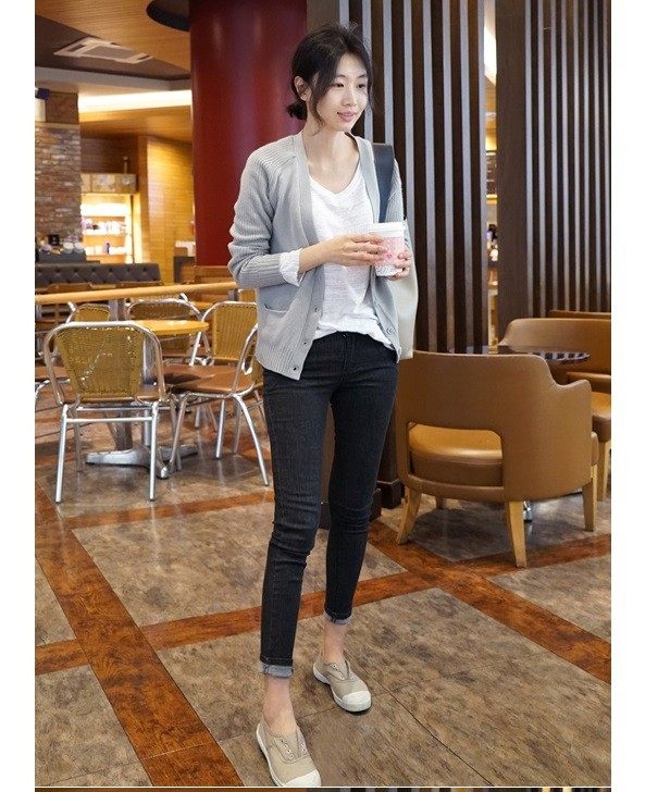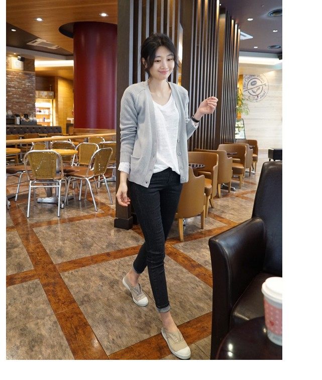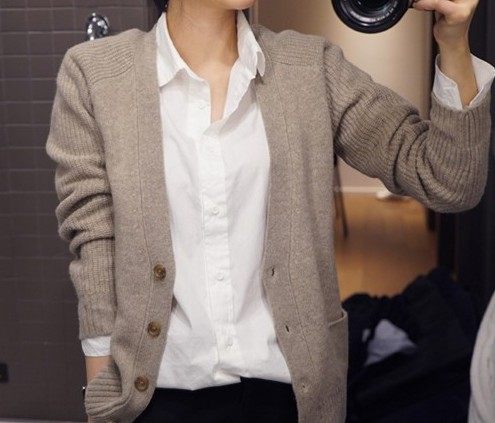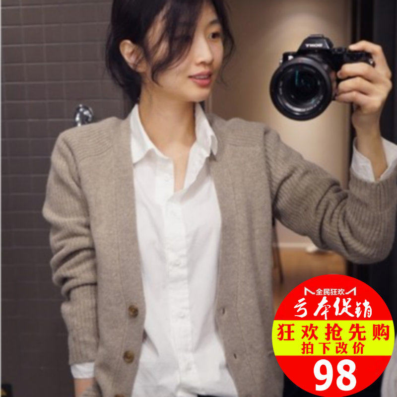 Весенний однотонный лонгслив, свитер, кардиган, куртка, коллекция 2021, в корейском стиле, V-образный вырез