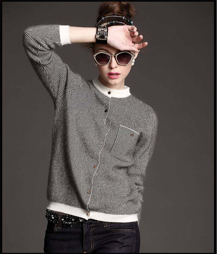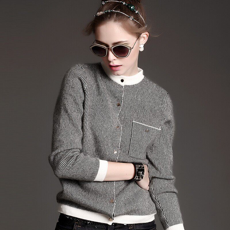 Осенний кардиган с круглым воротником, короткие джинсы с начесом, бейсбольный трикотажный шерстяной свитер