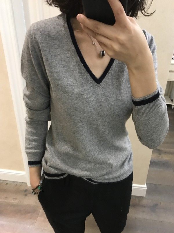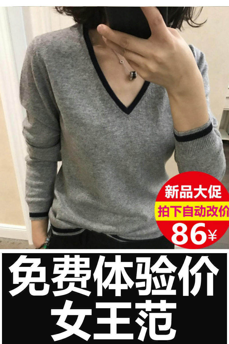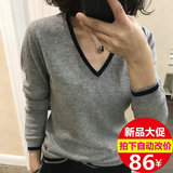 Демисезонный базовый приятный телу свитер, трикотажный шерстяной короткий комплект, V-образный вырез, свободный крой