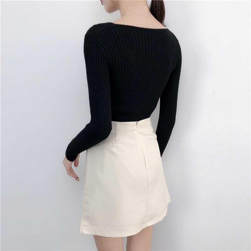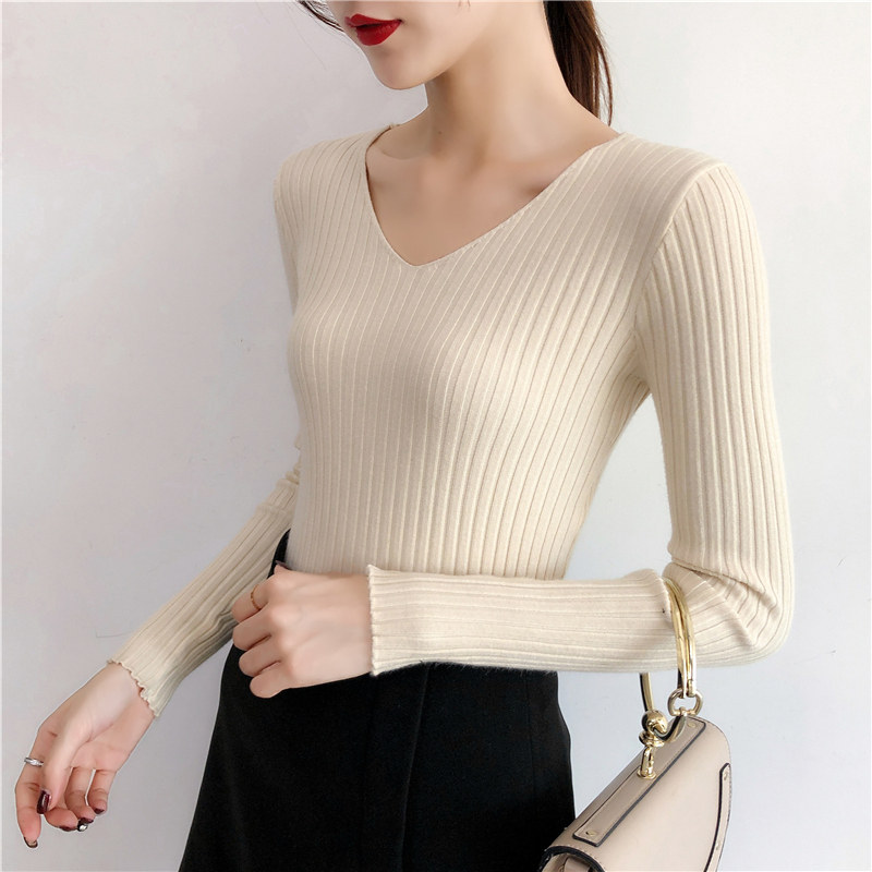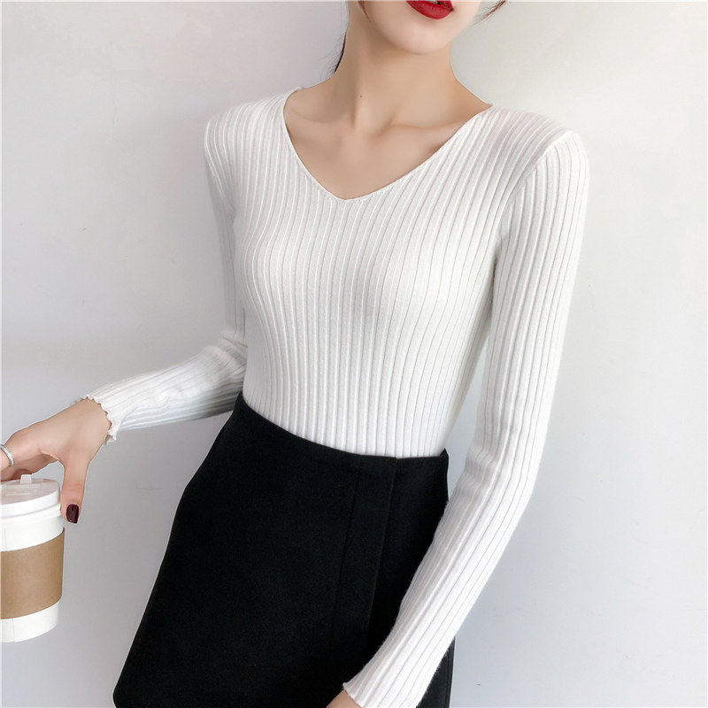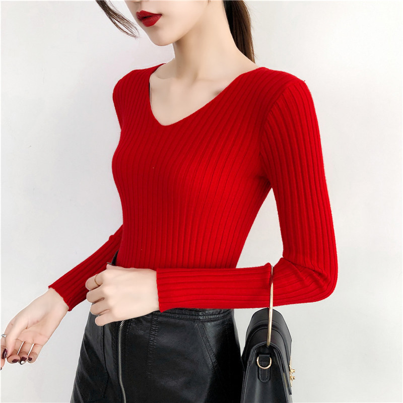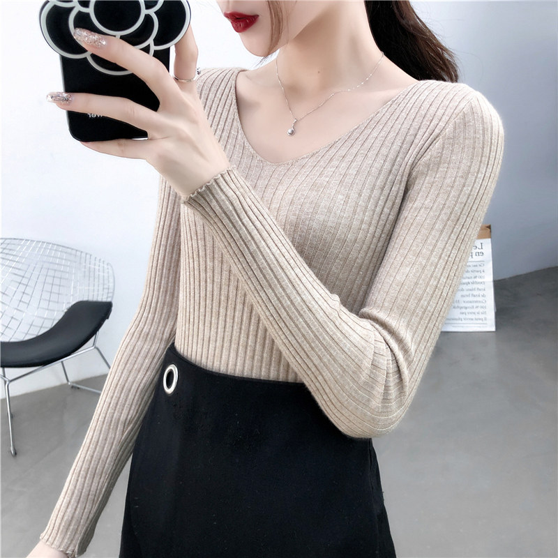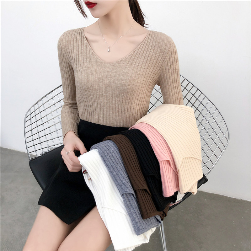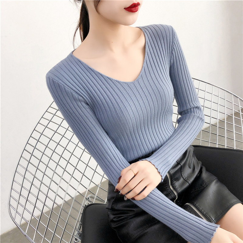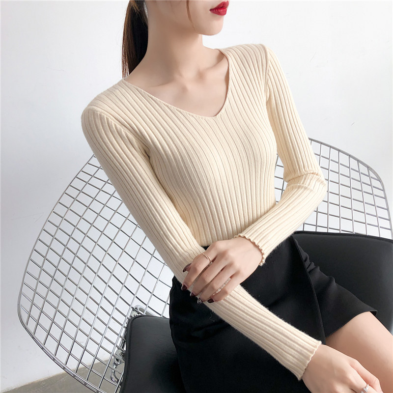 Демисезонный лонгслив, трикотажный свитер, V-образный вырез, облегающий крой, в обтяжку