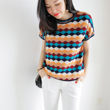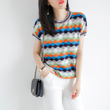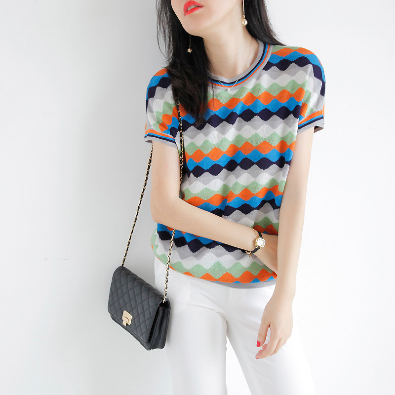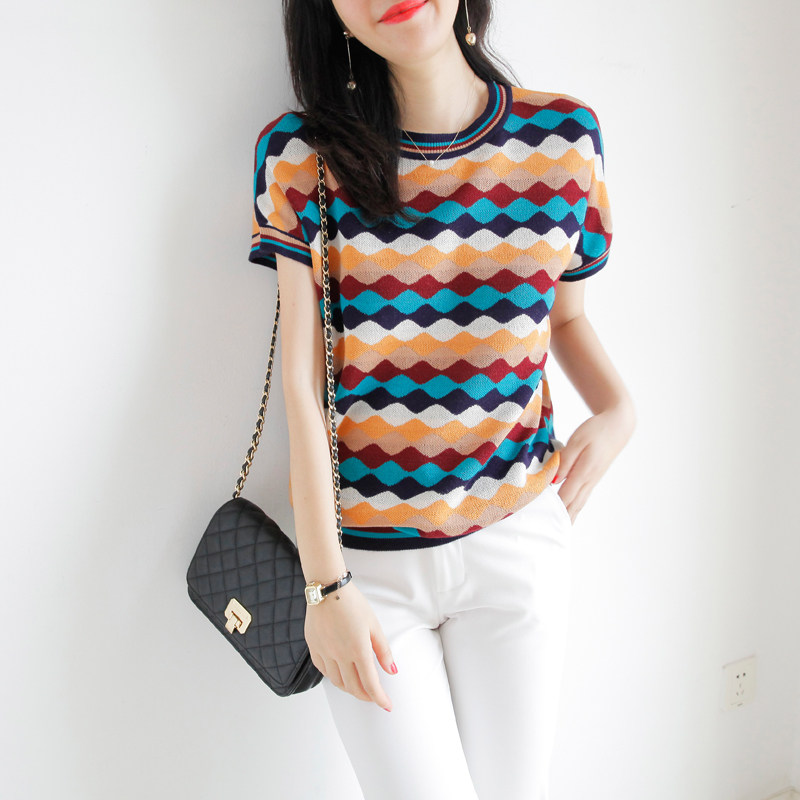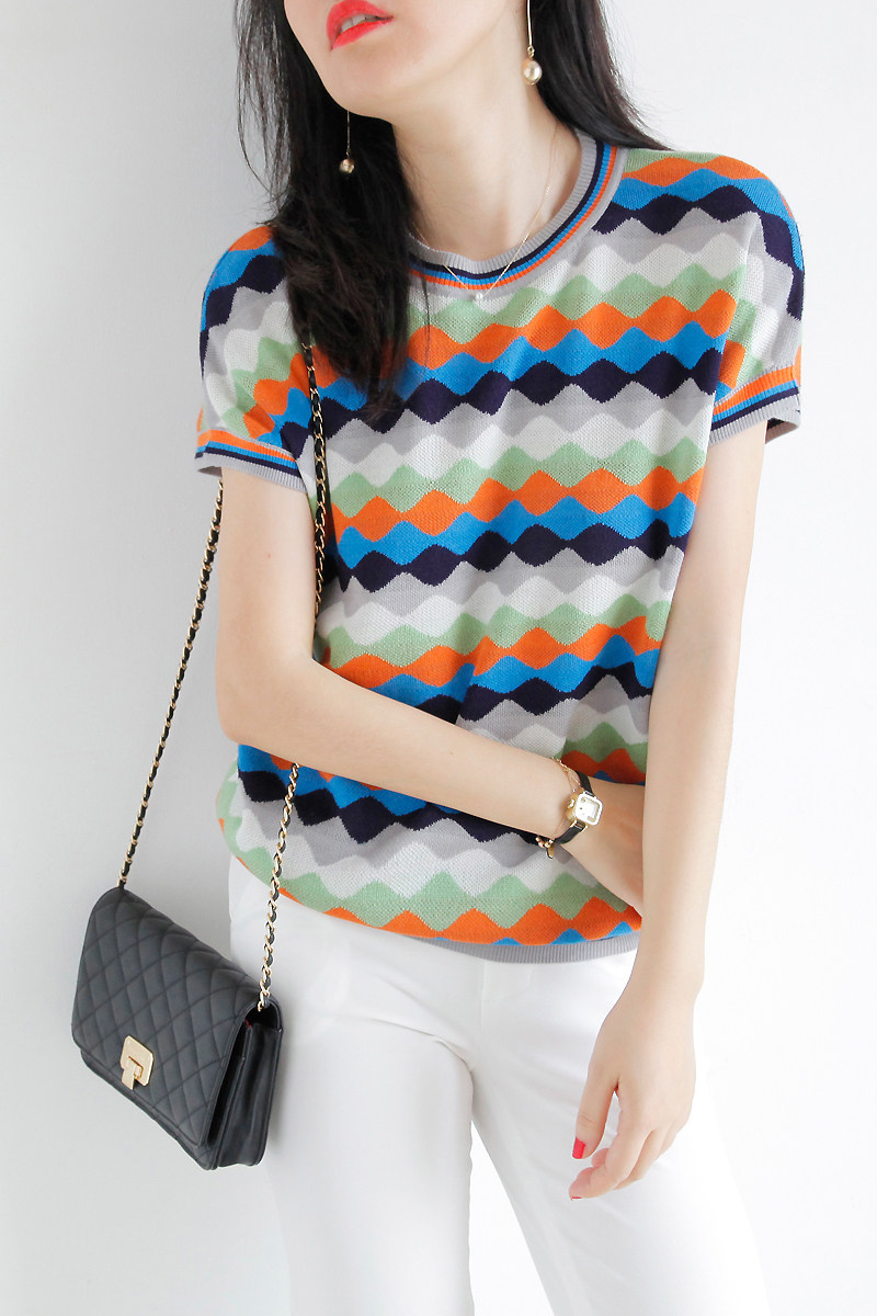 Красочная цветная сетка вода Ribples Pop Wind Cuff Short -sleed Статор ранняя осень новая женская одежда