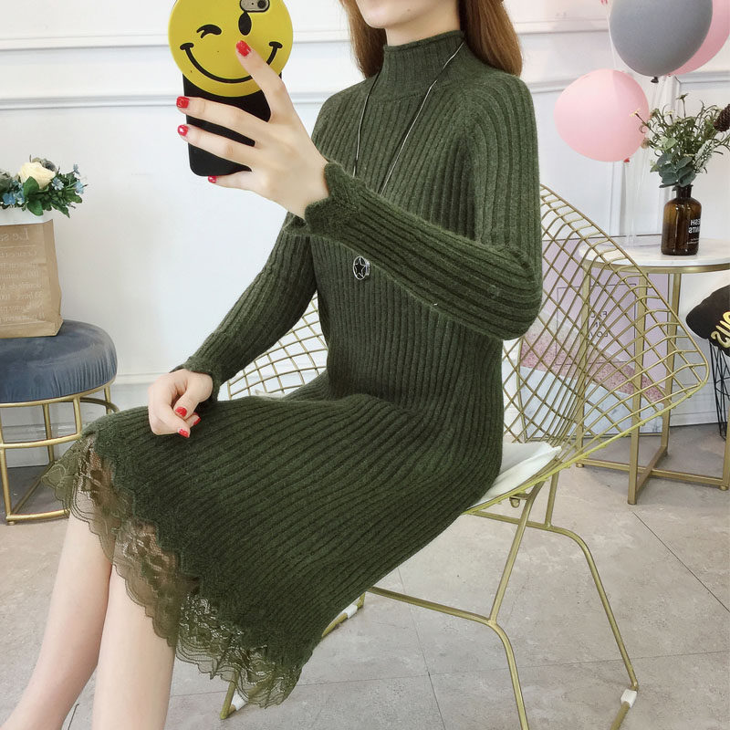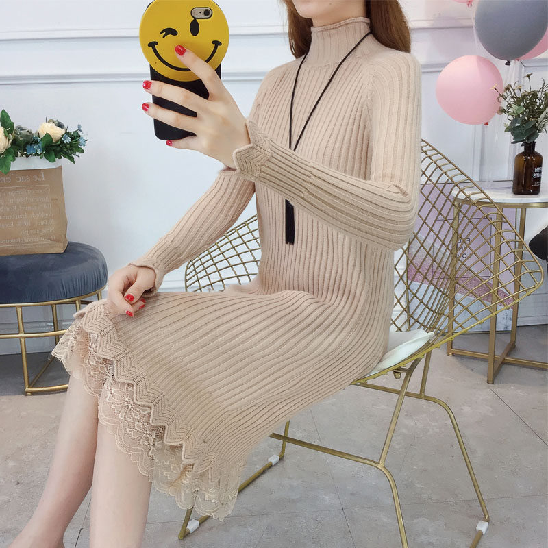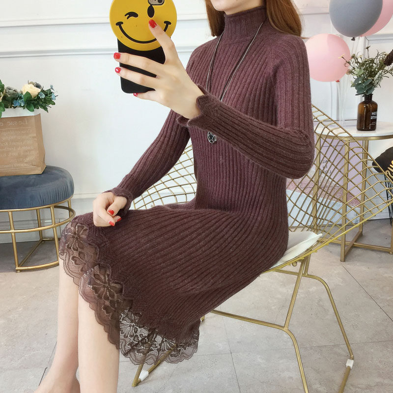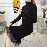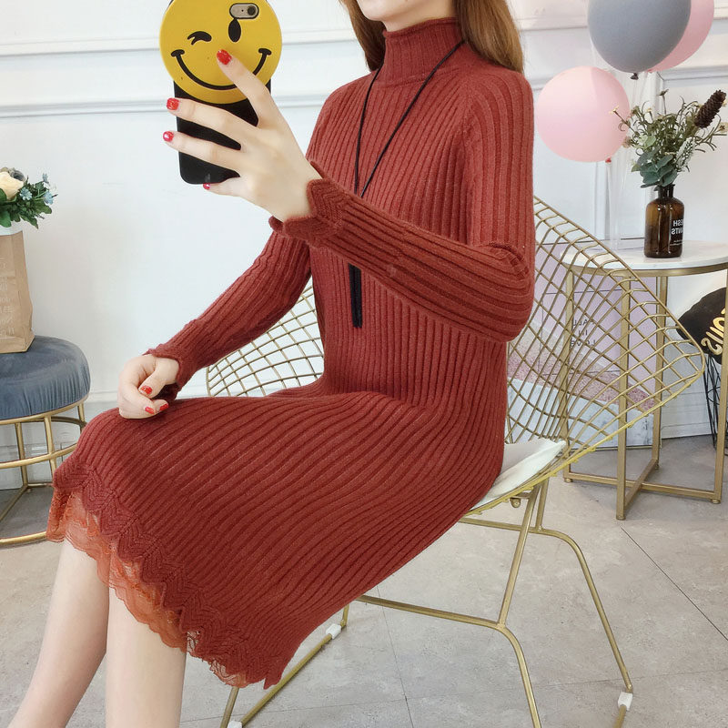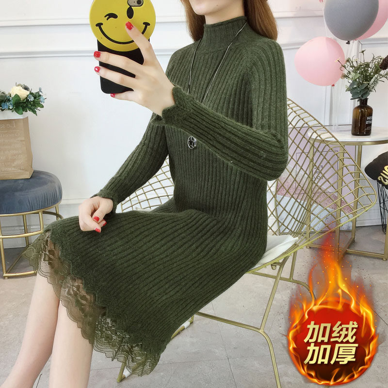 Утепленный удерживающий тепло демисезонный свитер, трикотажное платье, высокий воротник, в корейском стиле