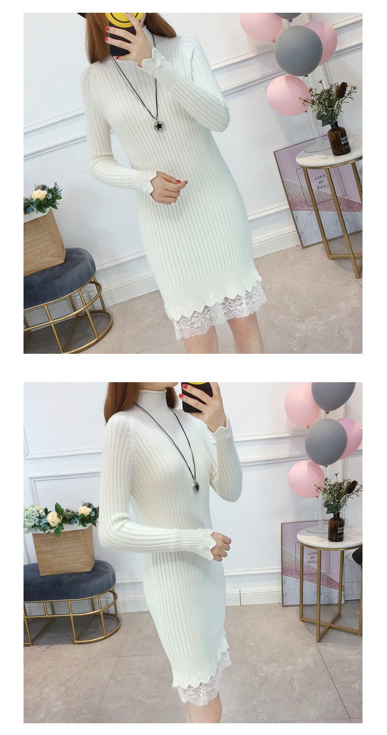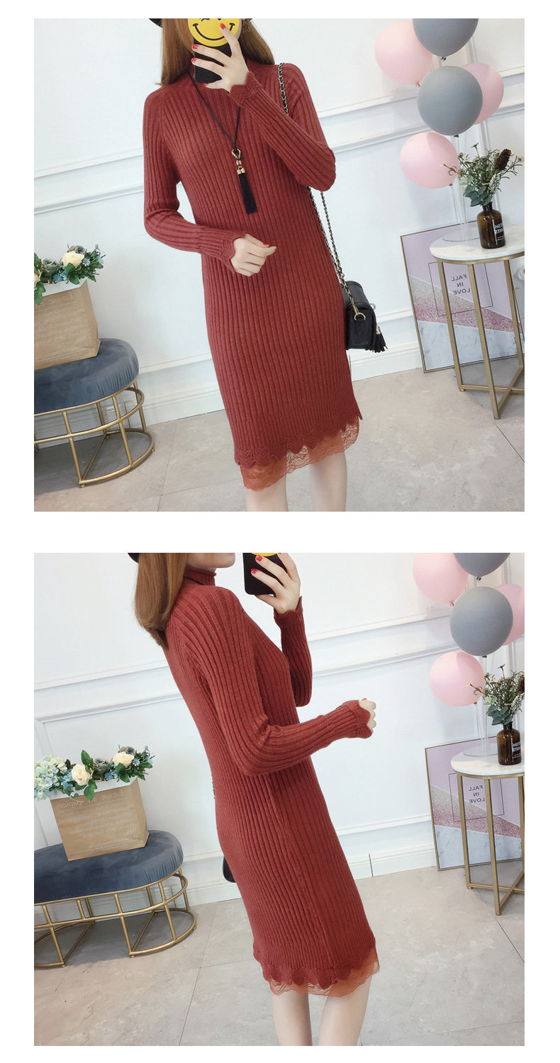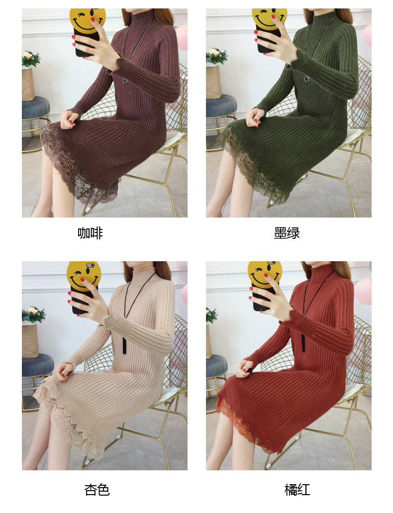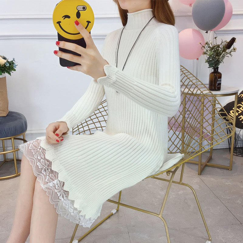 Утепленный удерживающий тепло демисезонный свитер, трикотажное платье, высокий воротник, в корейском стиле