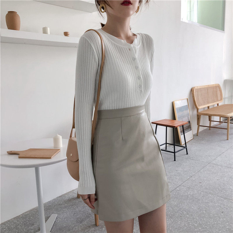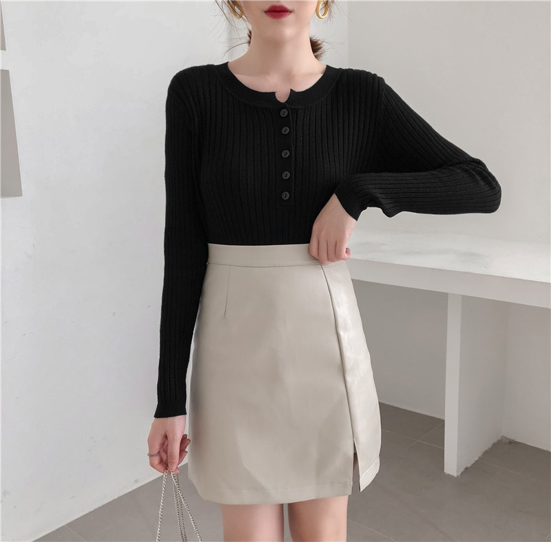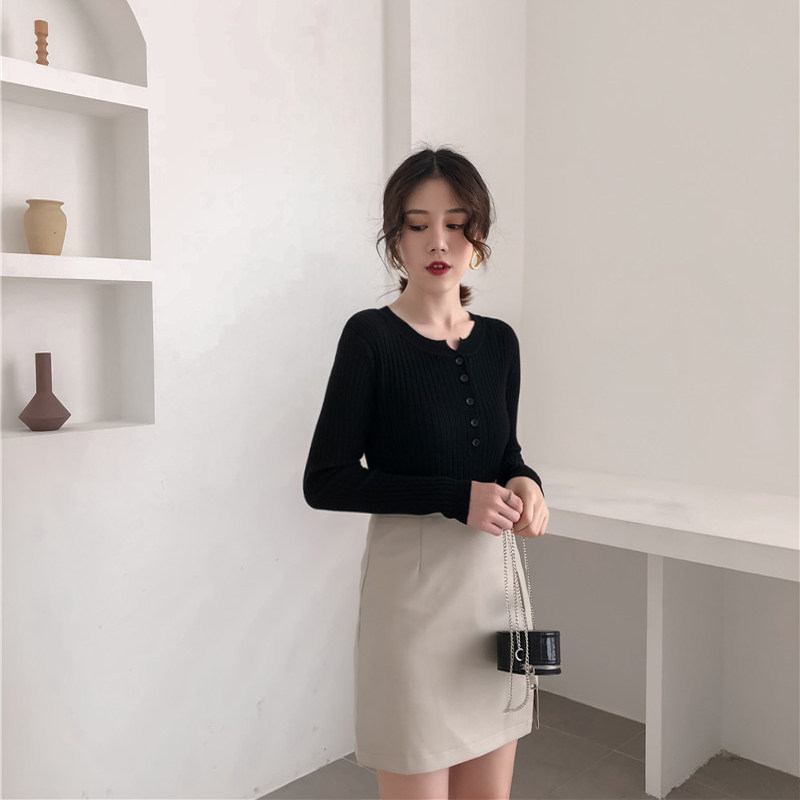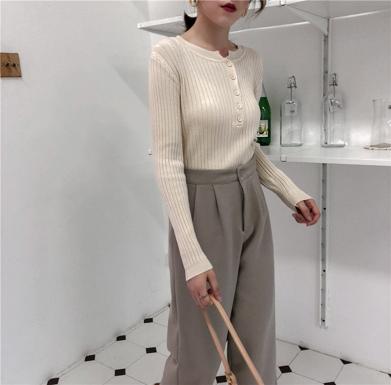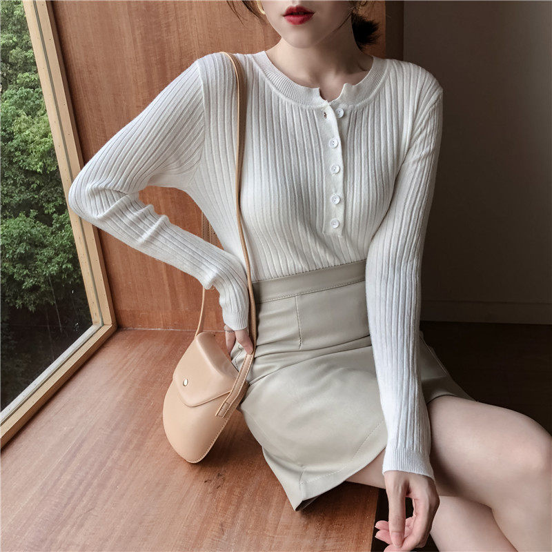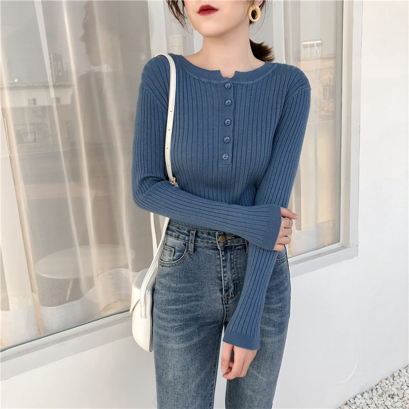 Осенний универсальный лонгслив, булавка, трикотажный базовый приятный телу свитер с круглым воротником, в обтяжку